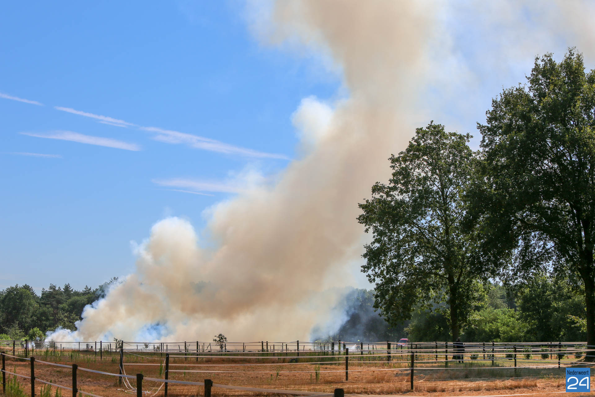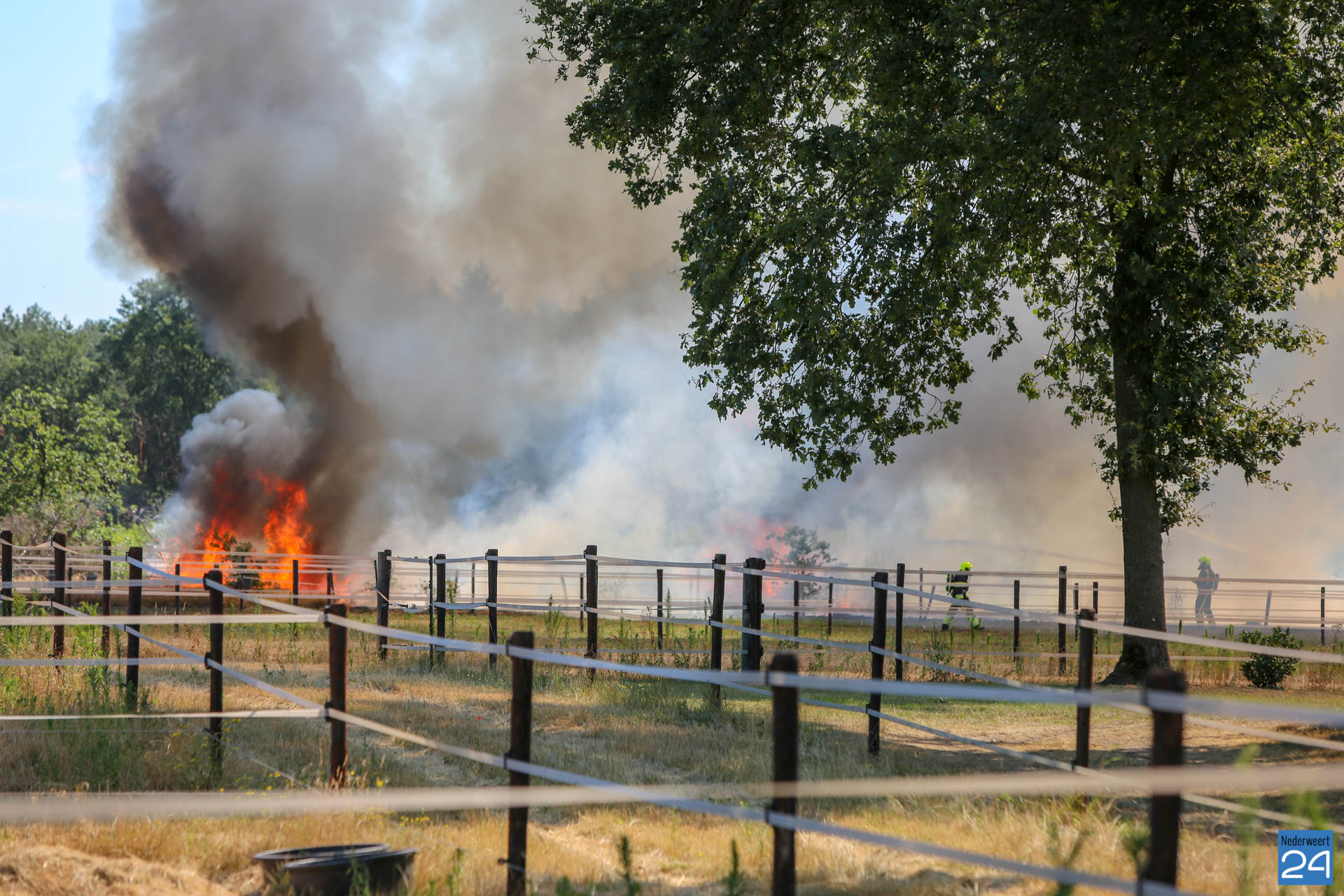 Vanwege de droogte is de brandweer met groot materieel uitgerukt om het vuur te bestrijden. De nieuwe waterwagen van Brandweer Nederweert is ook uitgerukt om assistentie te verlenen. De oorzaak van de brand is op dit moment nog onbekend. Een aangrenzende manege heeft geen overlast gehad van de brand, zo laat een woordvoerder van de brandweer weten.