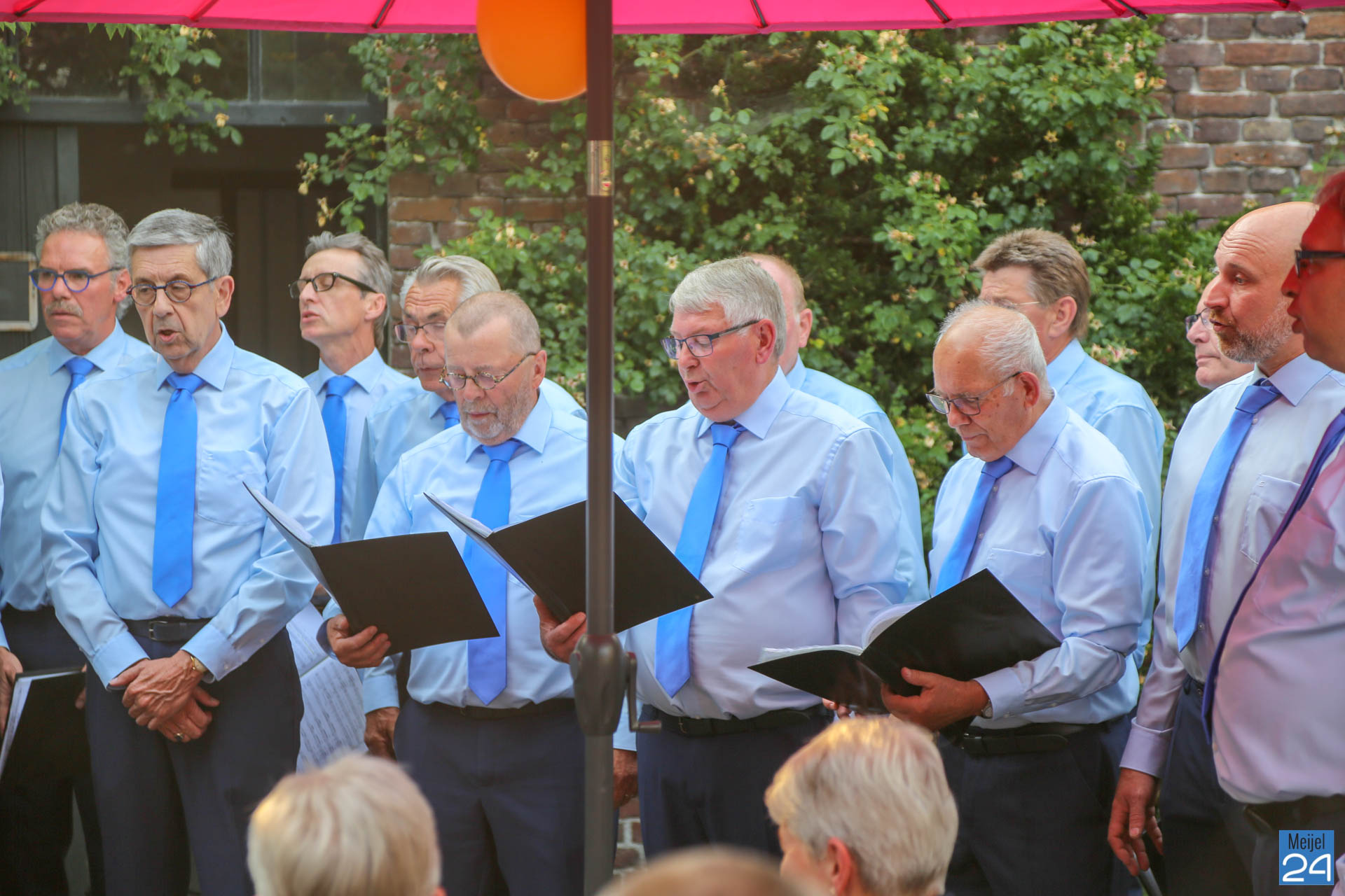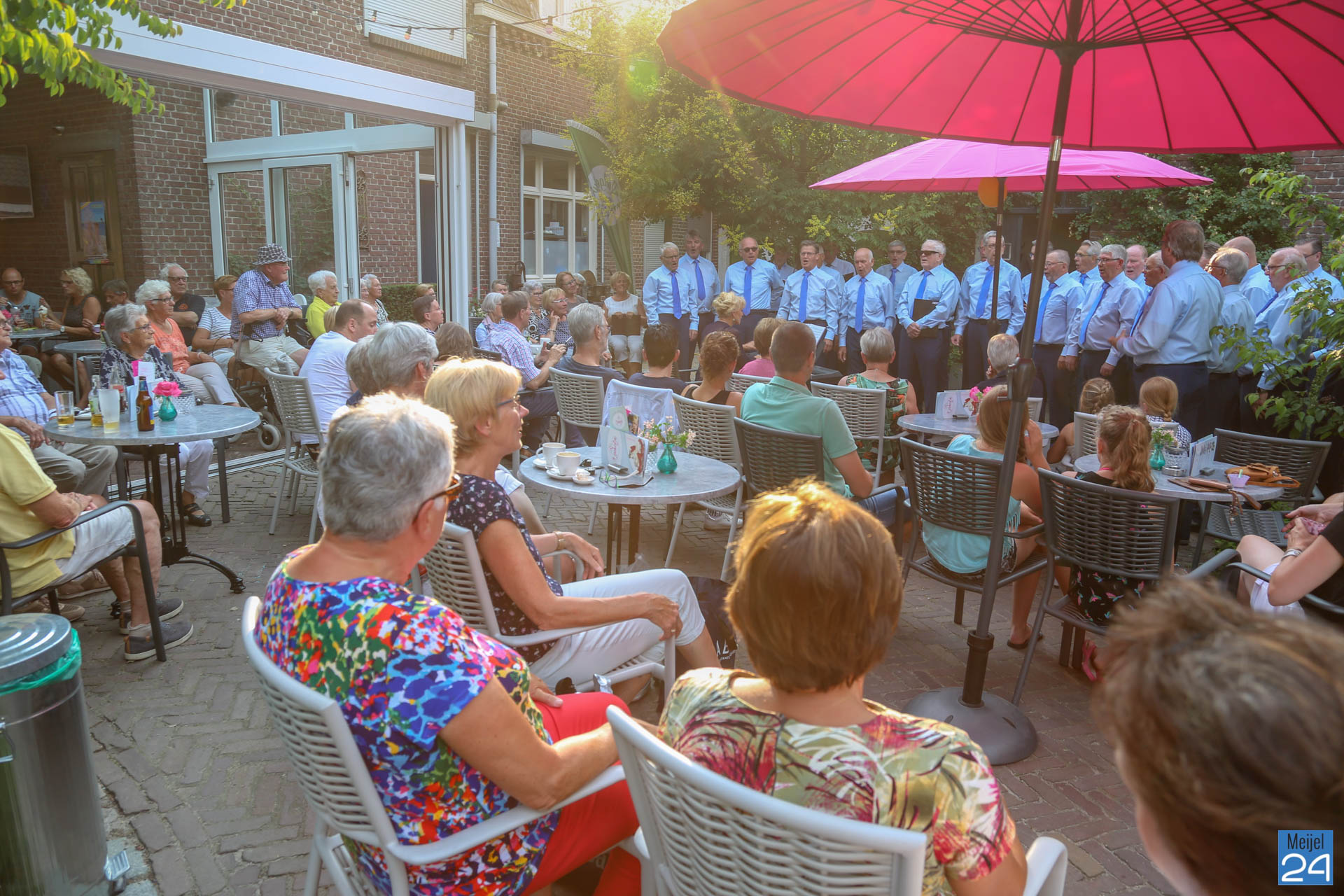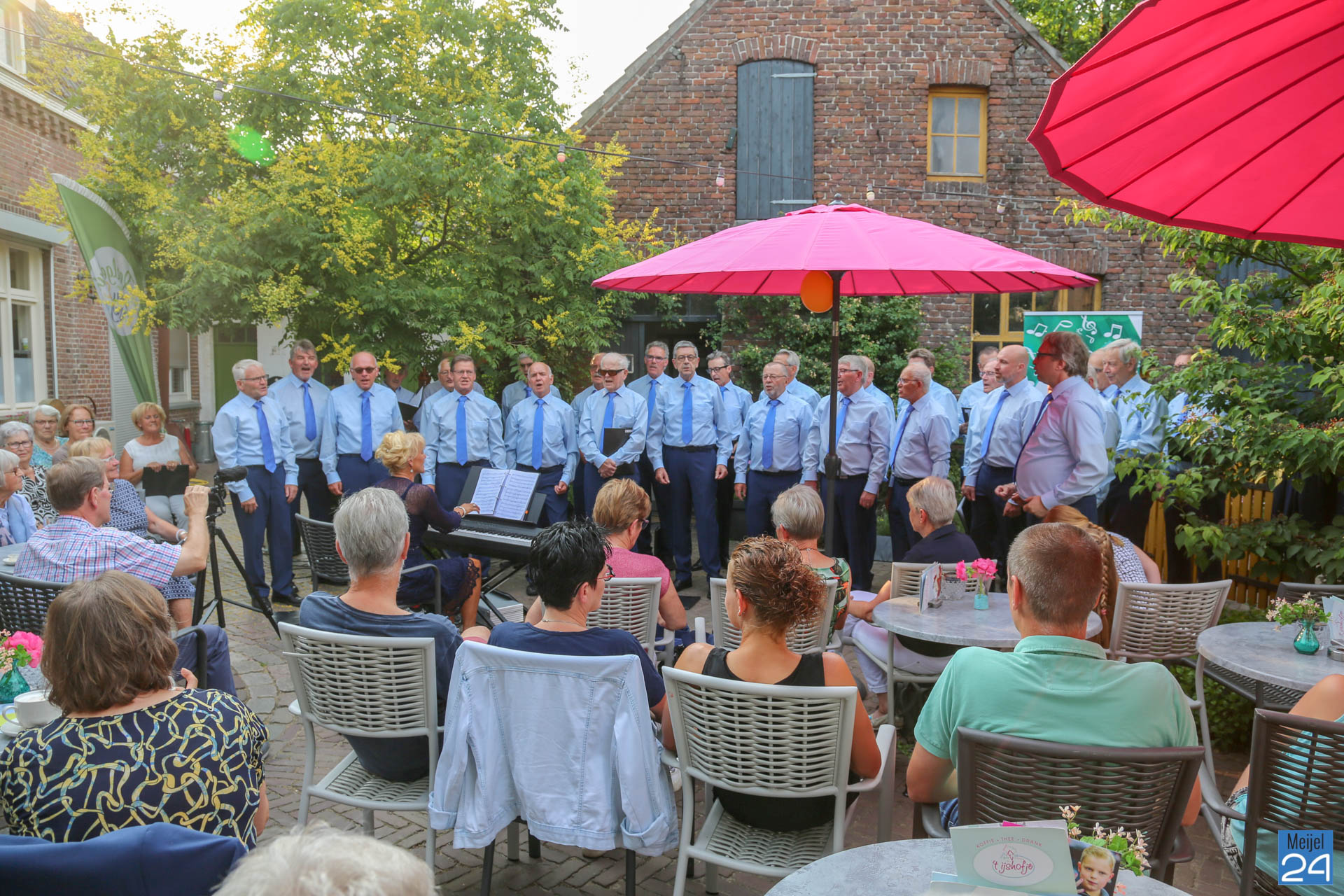 Ter afsluiting van het muzikale seizoen verzorgde het Meijels Mannenkoor, met de roepnaam Méél Voices, woensdagavond een Open Air Concert op het buitenterras van ’t IJshofje en groepsaccommodatie Lutjen Hendrik aan de Dorpsstraa in Meijel. Deze werd druk bezocht.