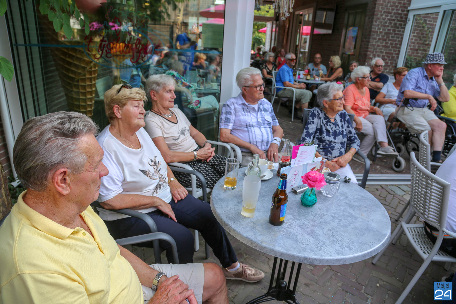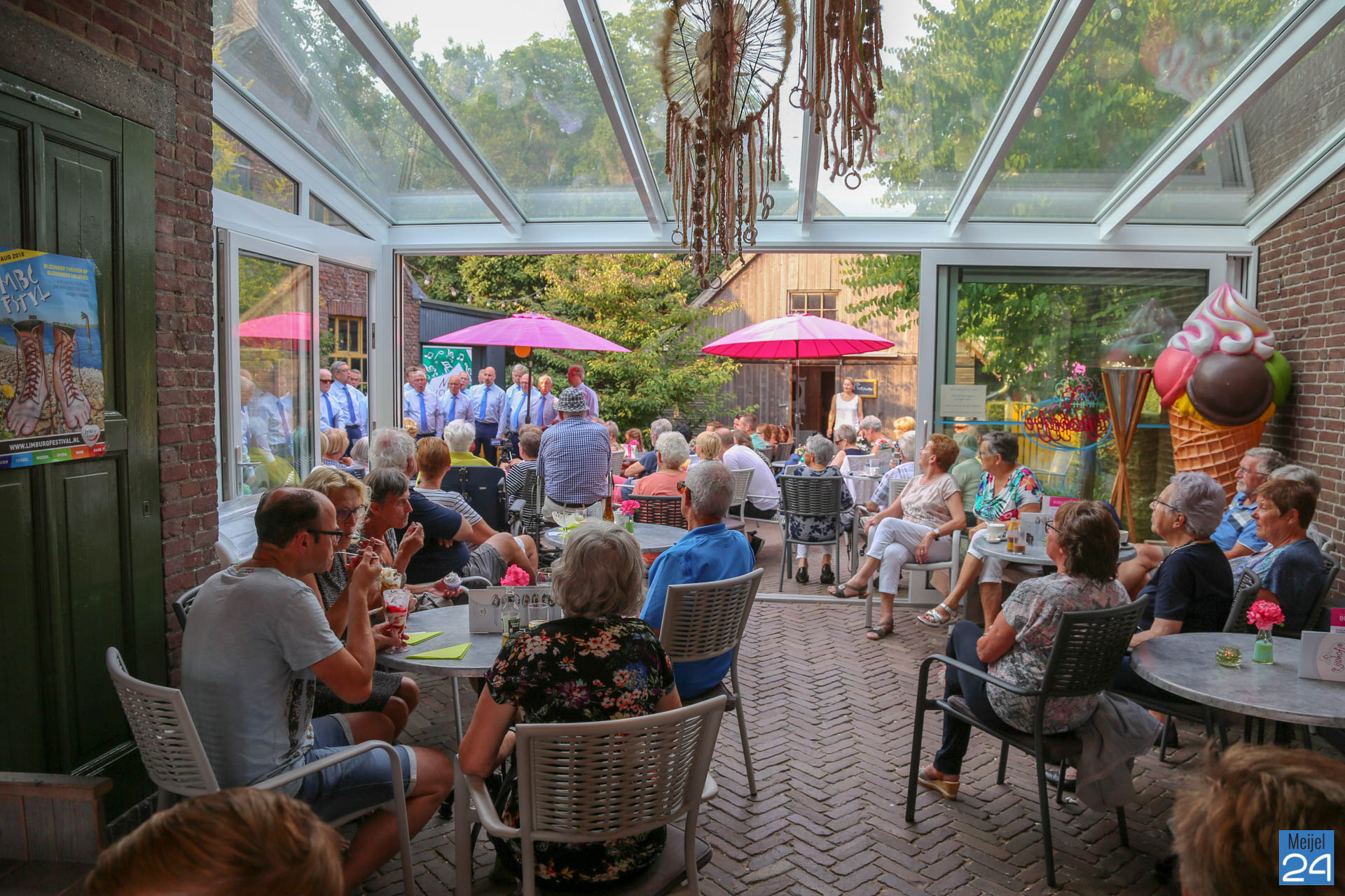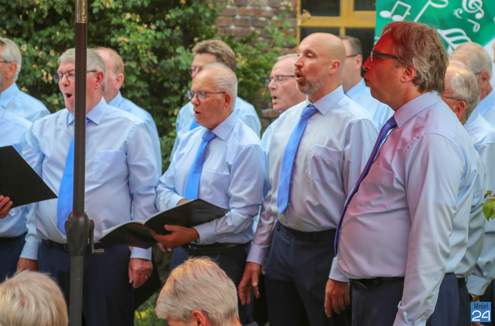 Ter afsluiting van het muzikale seizoen verzorgde het Meijels Mannenkoor, met de roepnaam Méél Voices, woensdagavond een Open Air Concert op het buitenterras van ’t IJshofje en groepsaccommodatie Lutjen Hendrik aan de Dorpsstraa in Meijel. Deze werd druk bezocht.