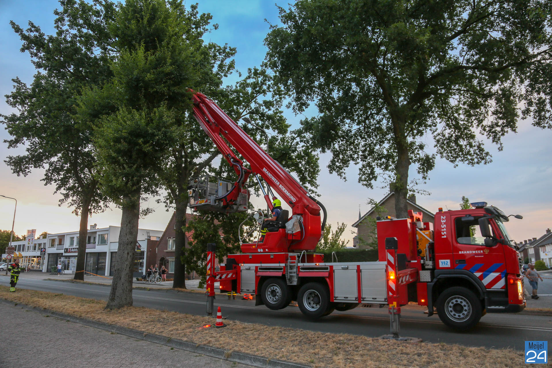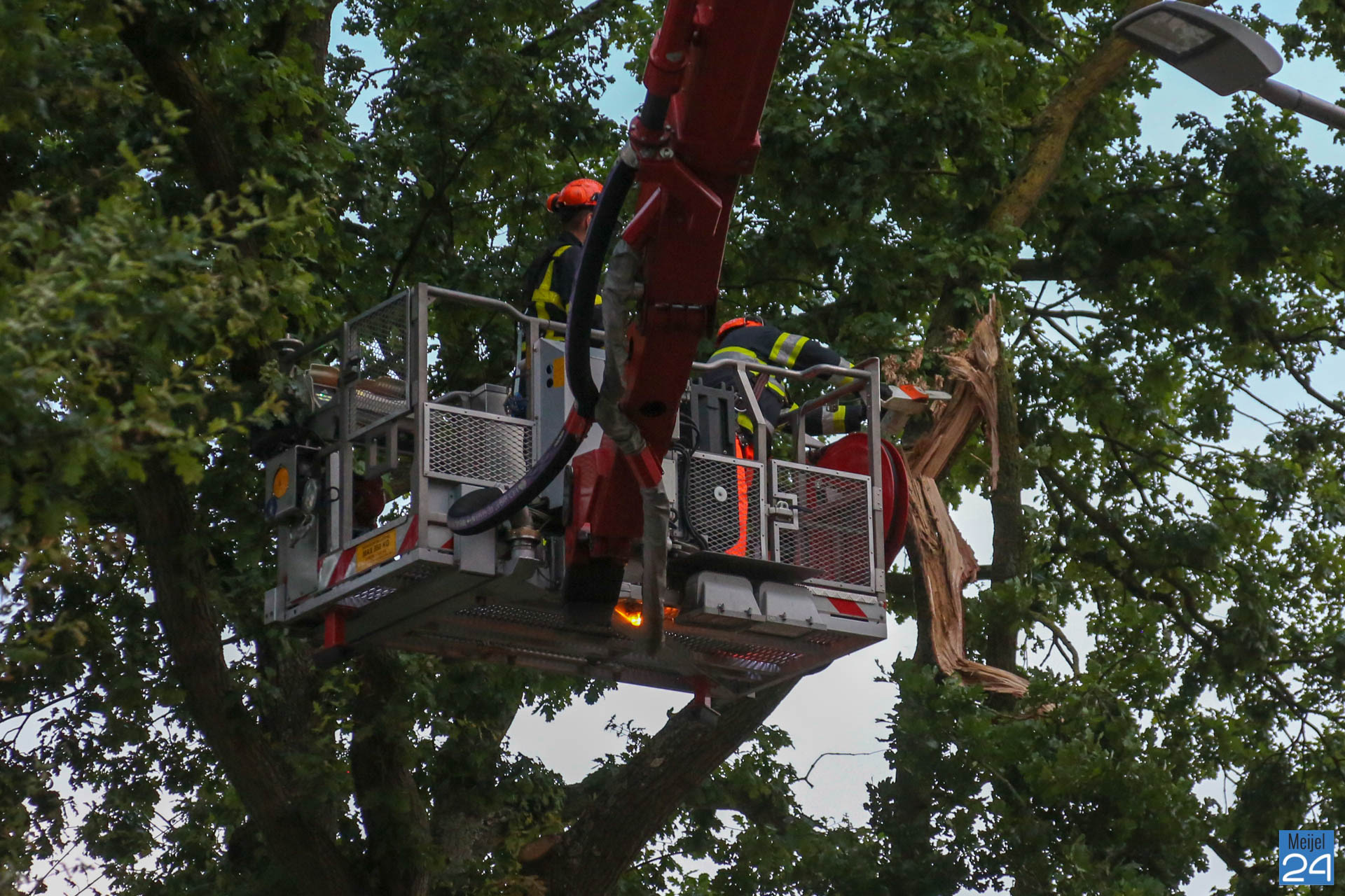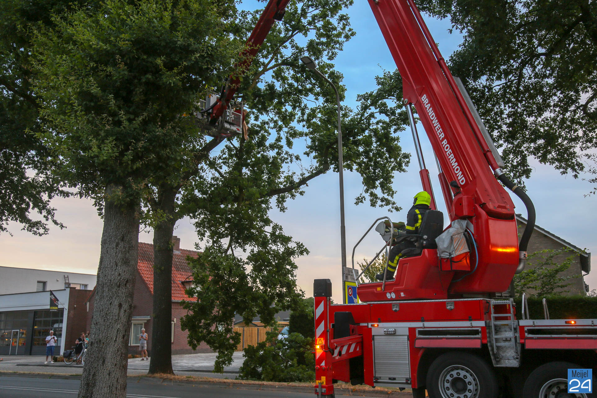 Met een hoogwerker werden de takken afgezaagd. Tijdens deze klus werd een gedeelte rondom het incident afgezet. De inzet van de brandweer trok veel bekijks. De gemeente Leudal heeft samen met de brandweer de boel opgeruimd. Het verkeer werd omgeleid.