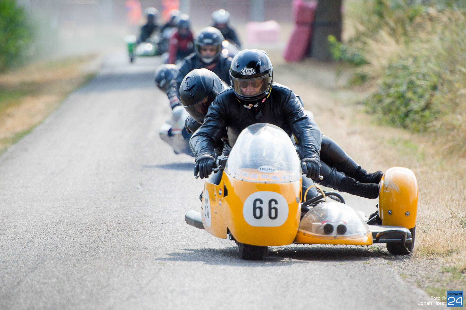 Afgelopen weekend organiseerde de Stichting Oldtimers Haler voor de vierde keer demo-ritten met klassieke motoren of wel de TT Haler. Stof benzine, en de geur van asfalt en rubber op het wegcircuit in de landelijke omgeving van Haler. Er werd in alle motorklassen gereden, inclusief de spectaculaire zijspan.