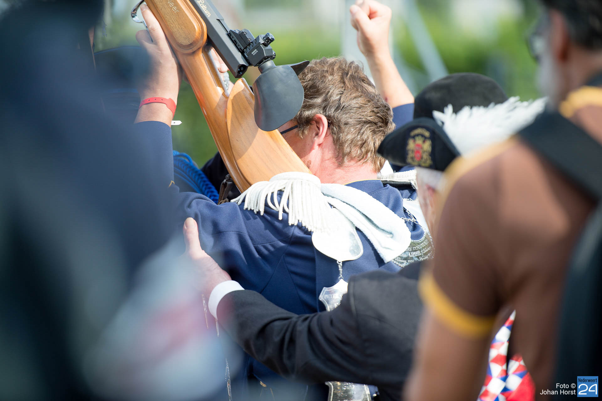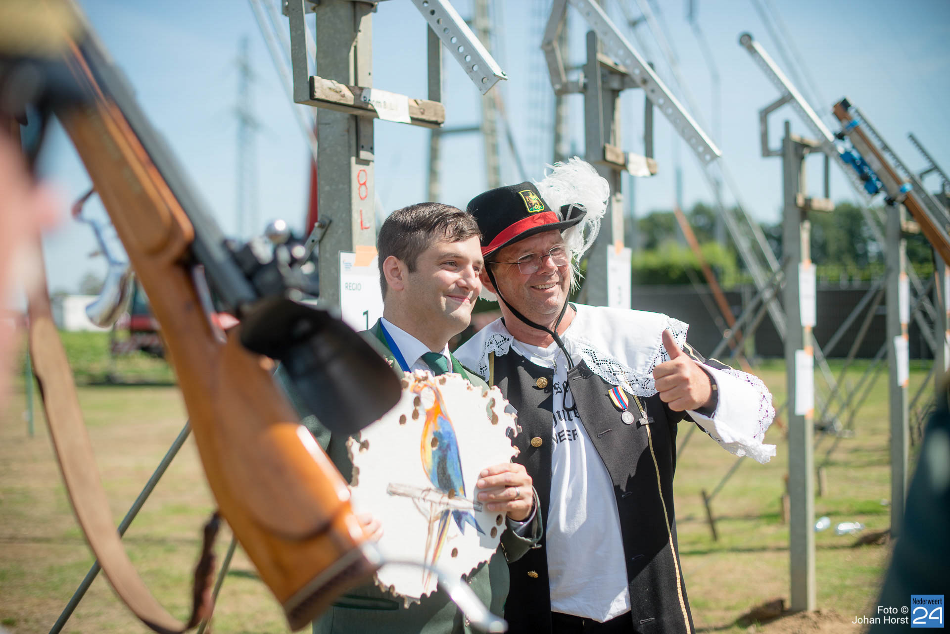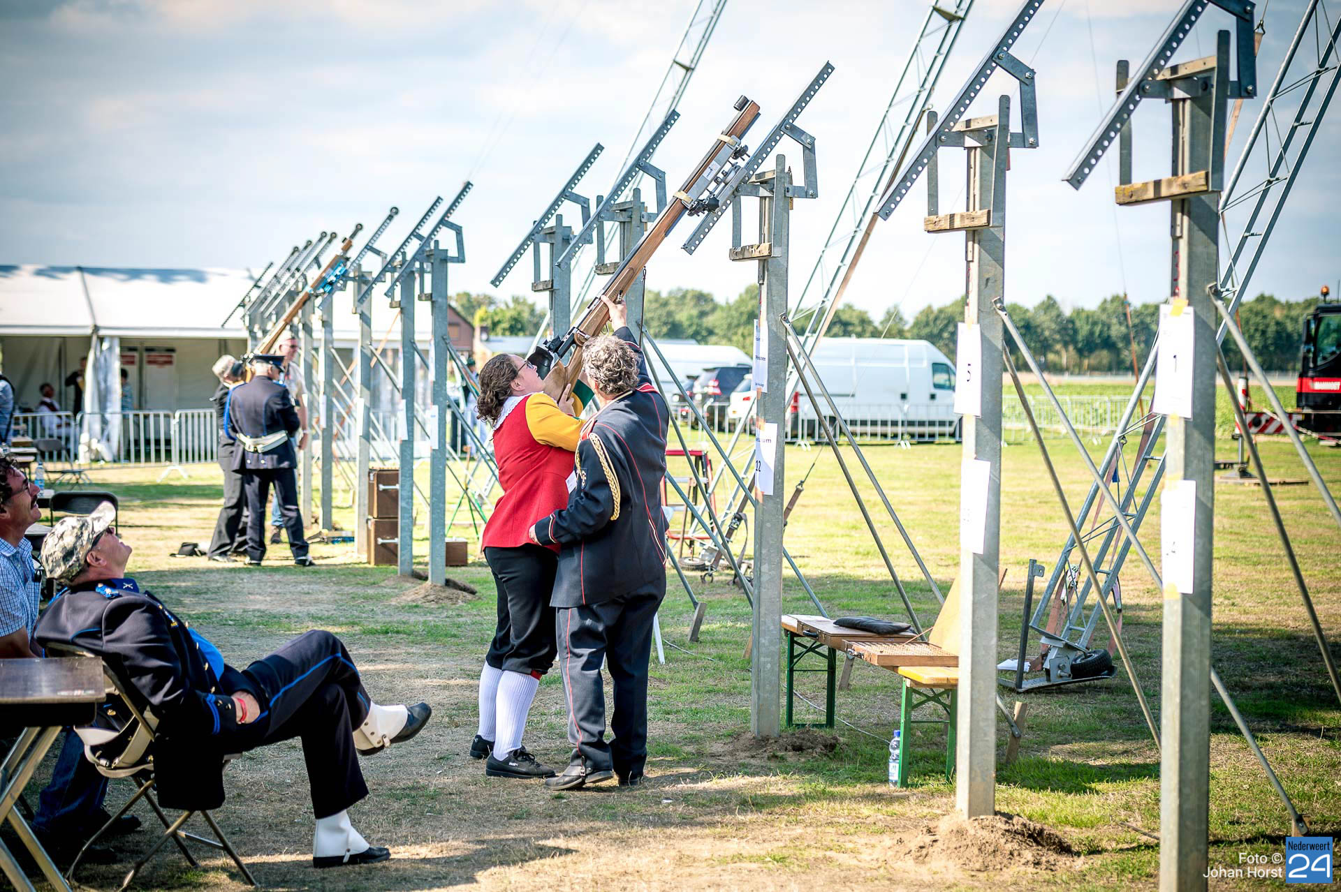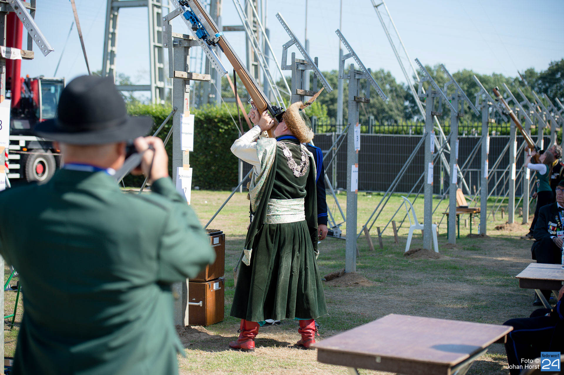 In het Limburgse Neer wordt dit weekend het Europees Schutterstreffen gehouden. 12.000 schutters van 500 schutterijen, schutbroederschappen en schuttersgildes uit heel Europa zijn bij elkaar gekomen om deel te nemen aan schietwedstrijden, demonstraties, vendelzwaaien, marcheren en exerceren. Vrijdag was de opening van dit grootste schutterstreffen van Europa.