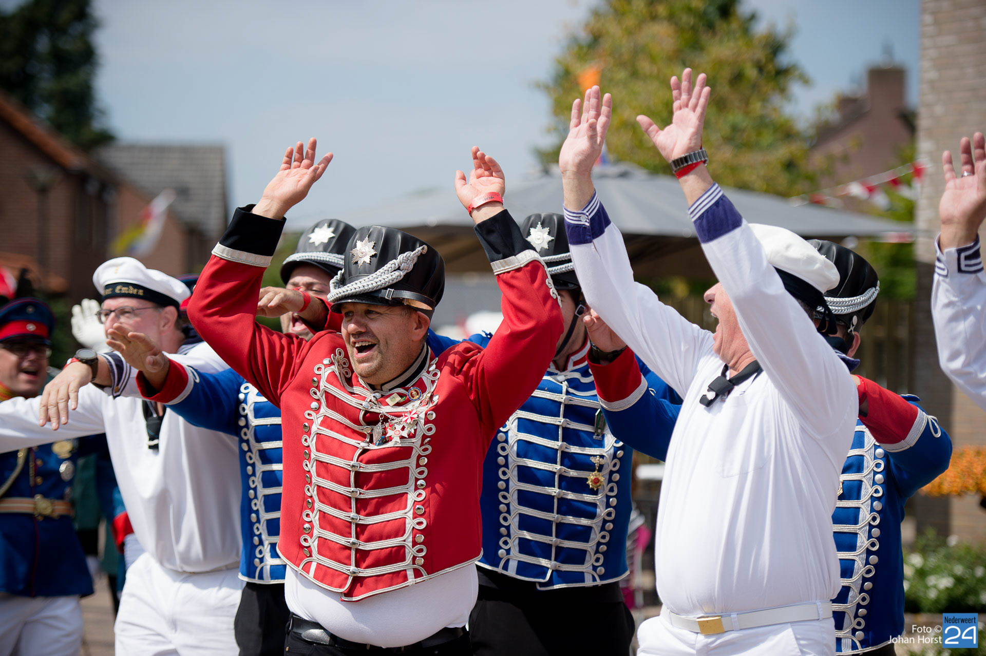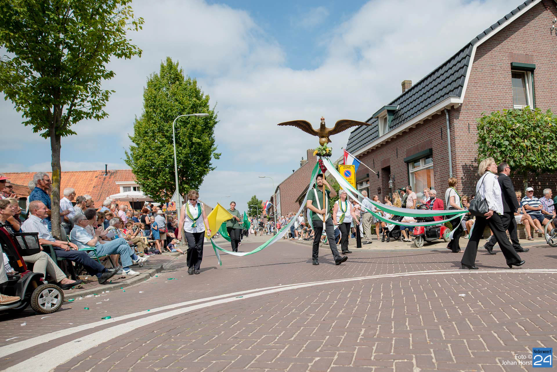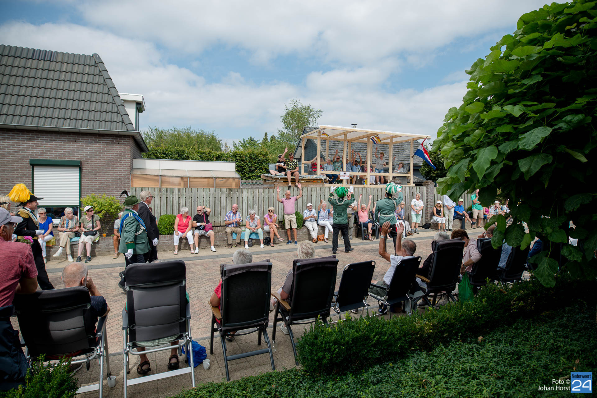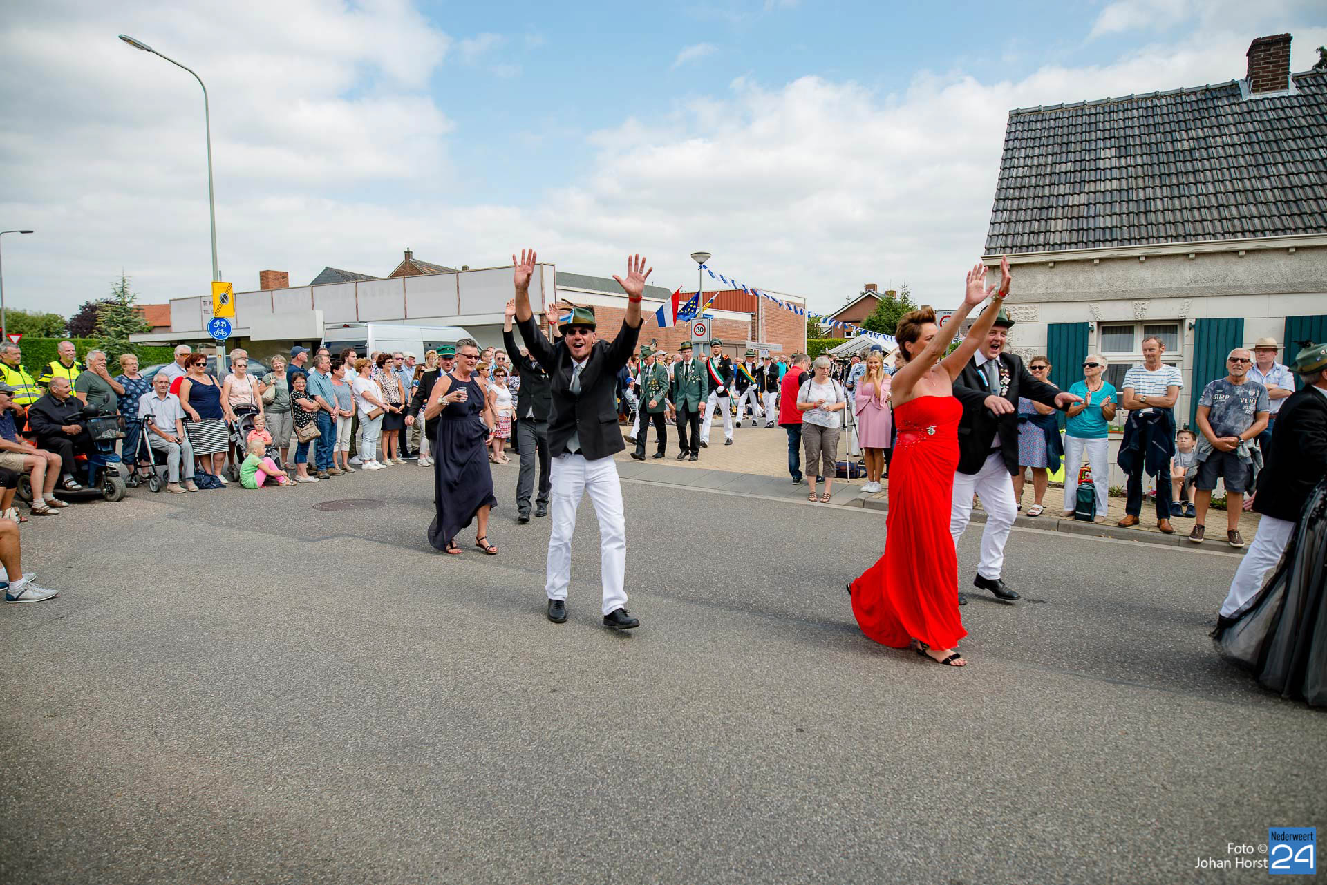 Zondagmiddag trok een bonte stoet door Neer. Ook de twee schutterijen uit Meijel waren hierbij aanwezig. Voor het publiek was het een lange zit, gelukkig voor hen werd er af en toe een opvoering gegeven en bewoog iedereen vrolijk mee. Langs de kant was er vol op gezelligheid. Met een lekker pilsje keek het publiek vanaf hun eigen gemaakte tribune naar de optocht.