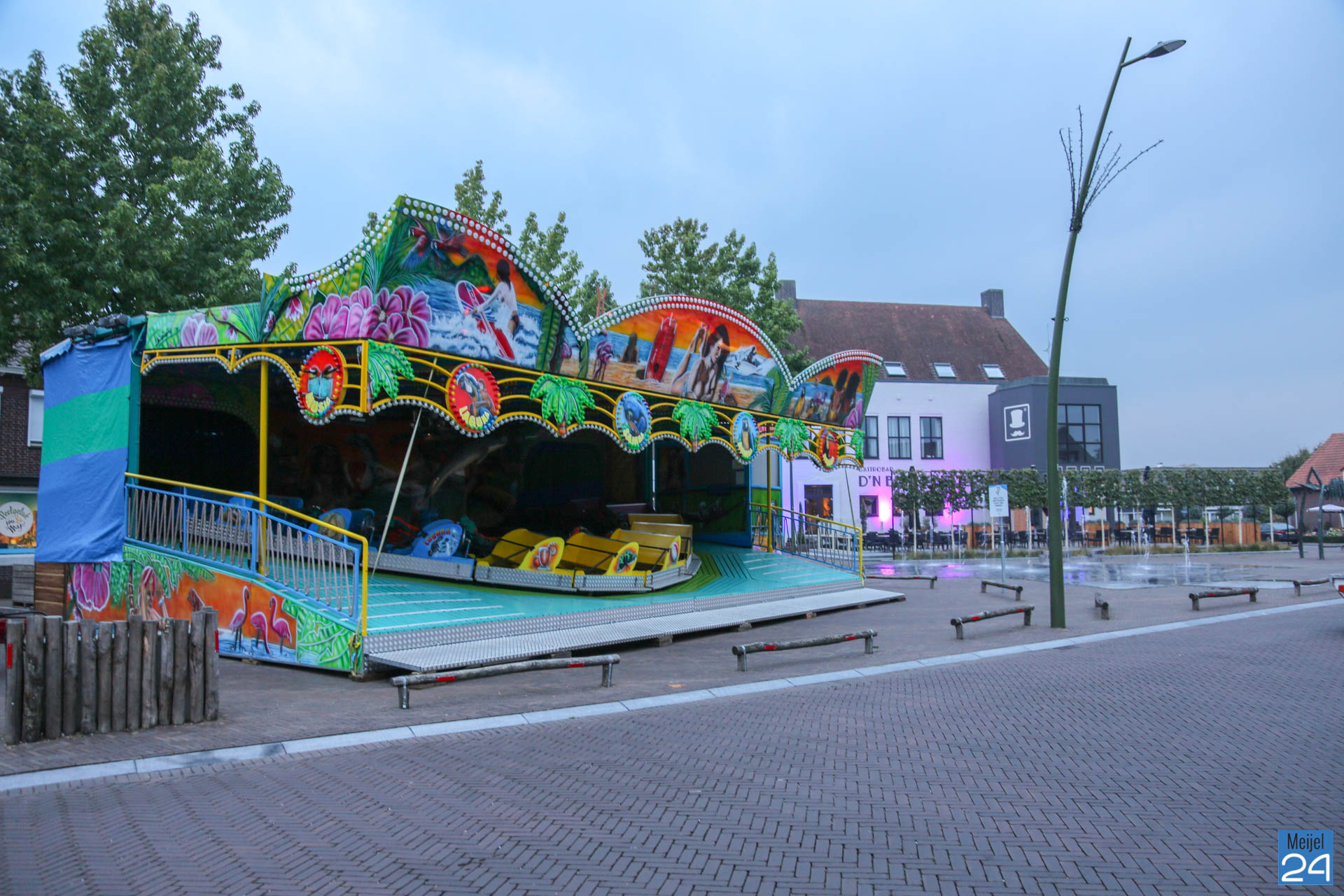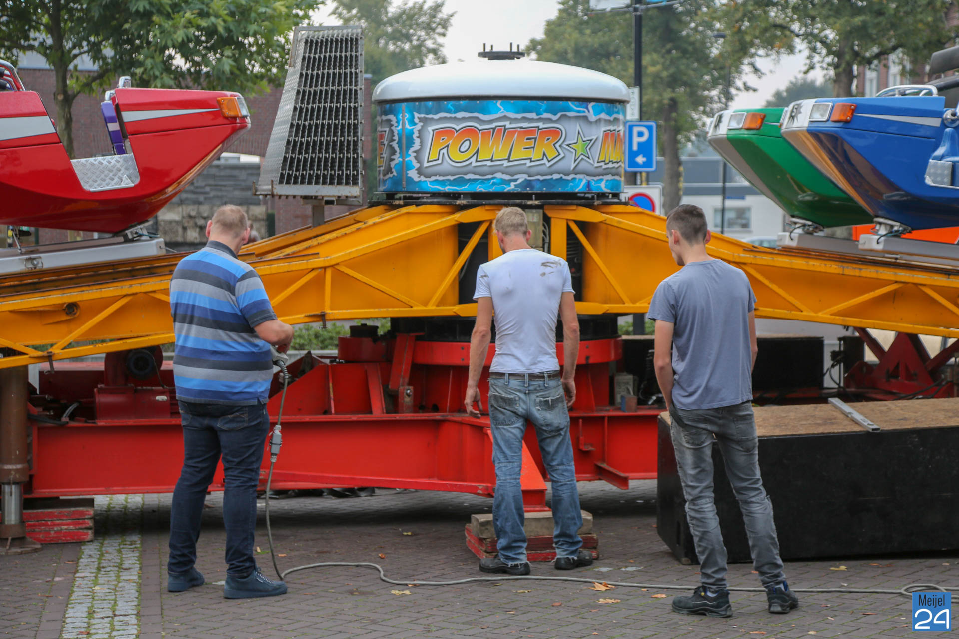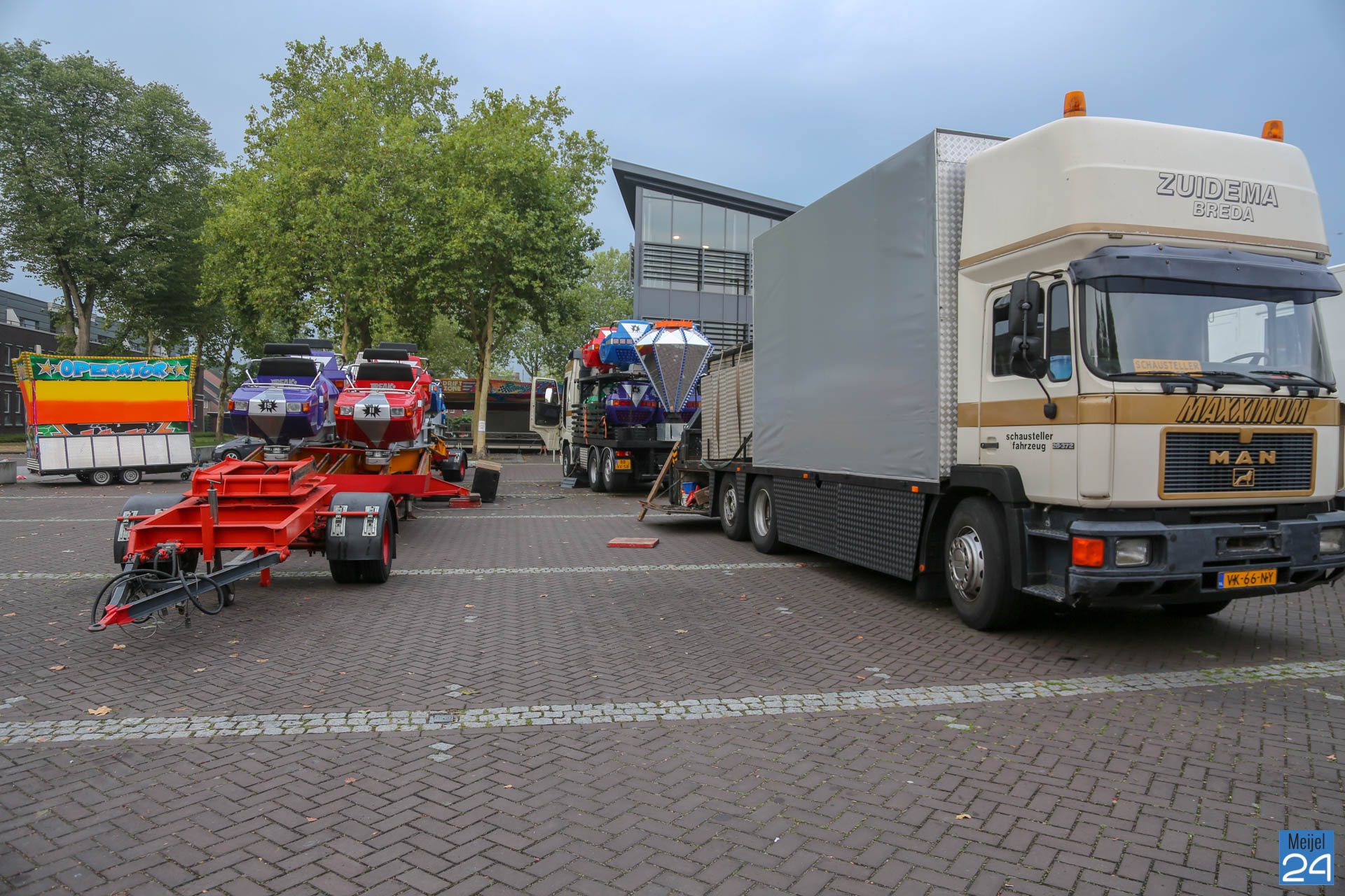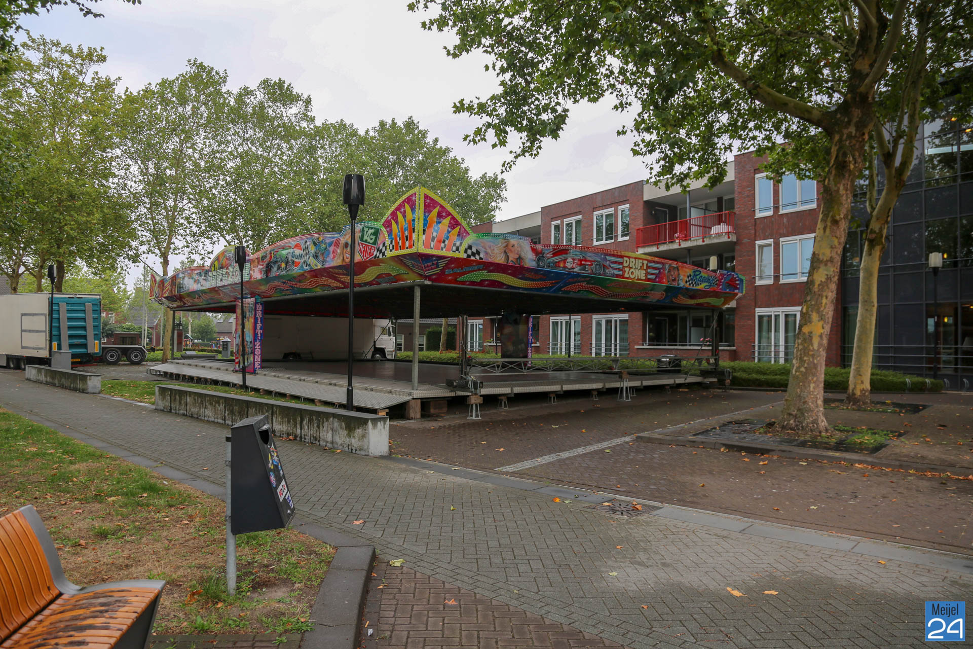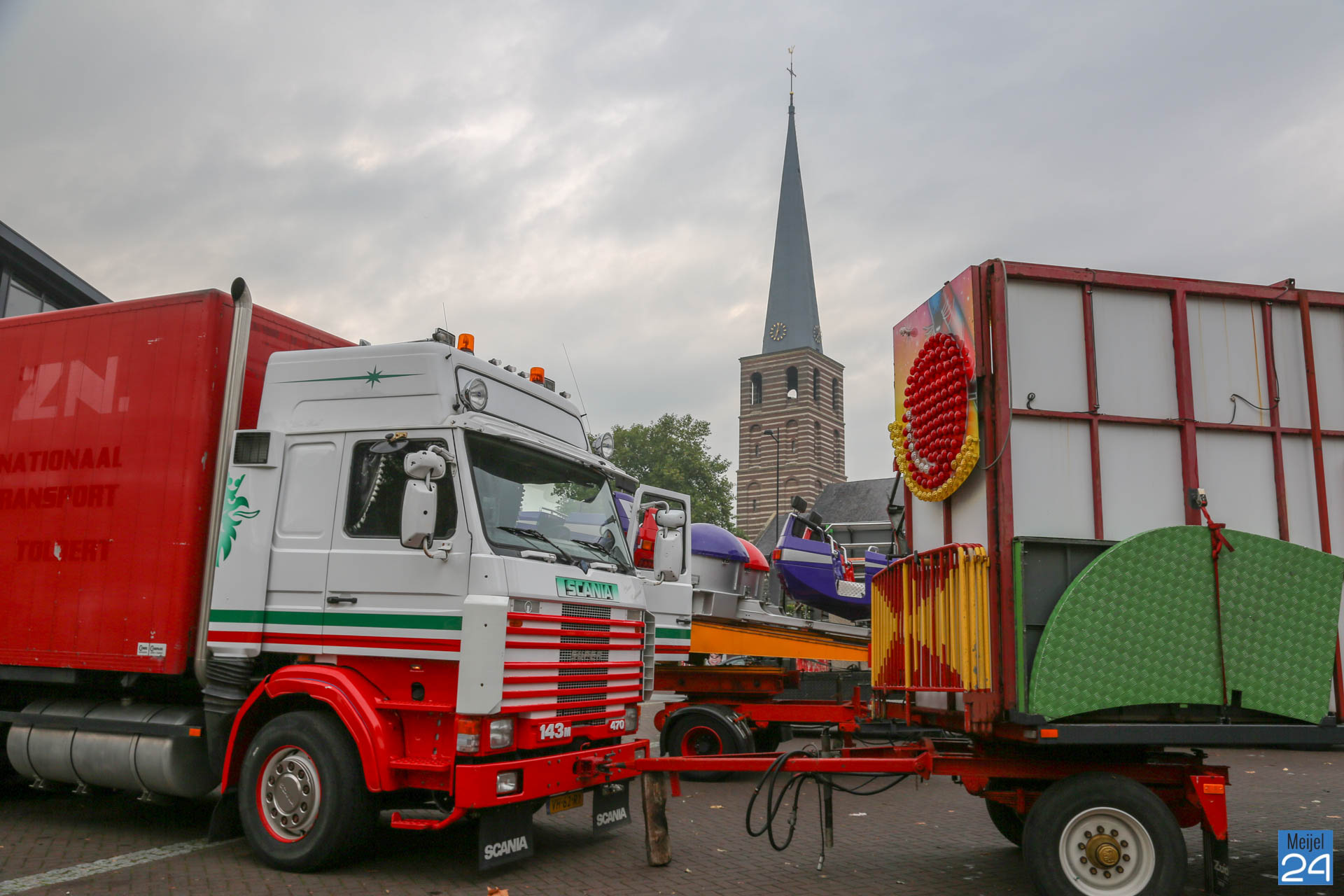 De opbouw van de kermis in Meijel is woensdag van start gegaan. Om 20:00 uur werden de wegen rondom het kermisterrein afgezet. Diverse attracties werden woensdagavond al op hun plek gezet. Blijkbaar had niet iedereen in de gaten dat ook het Alexanderplein werd afgesloten. Een geparkeerde personenauto stond behoorlijk in de weg.