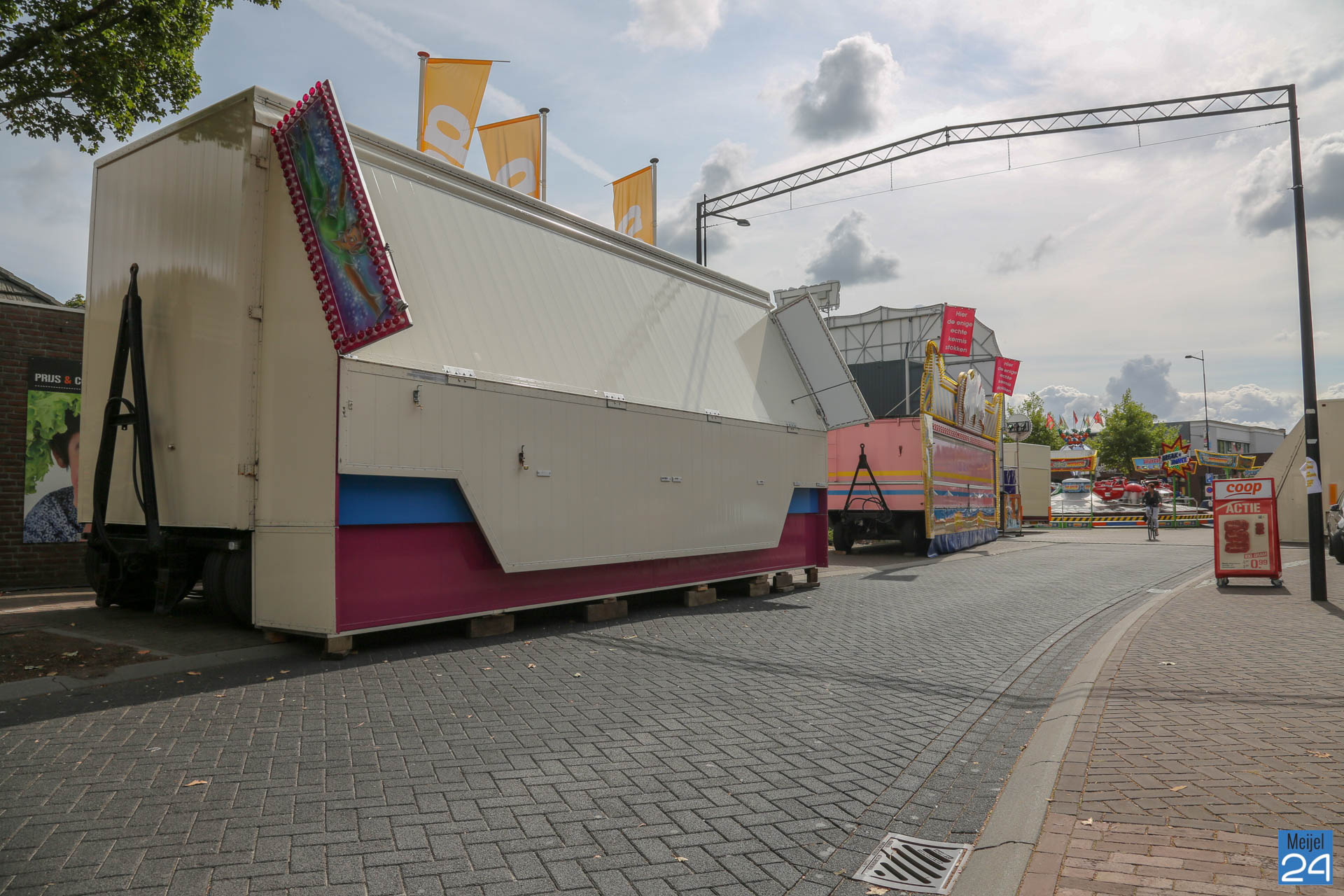 De kermisexploitanten zijn bijna klaar voor de kermis in Meijel. De laatste attracties worden opgezet, alles wordt netjes gepoetst én de lampjes worden nagekeken en zonodig vervangen. Zaterdag wordt de kermis om 16:00 uur feestelijk geopend door wethouder Paul Sanders in samenwerking met schutterij St. Willibrordus. Tijdens deze opening worden kermismunten gestrooid.
