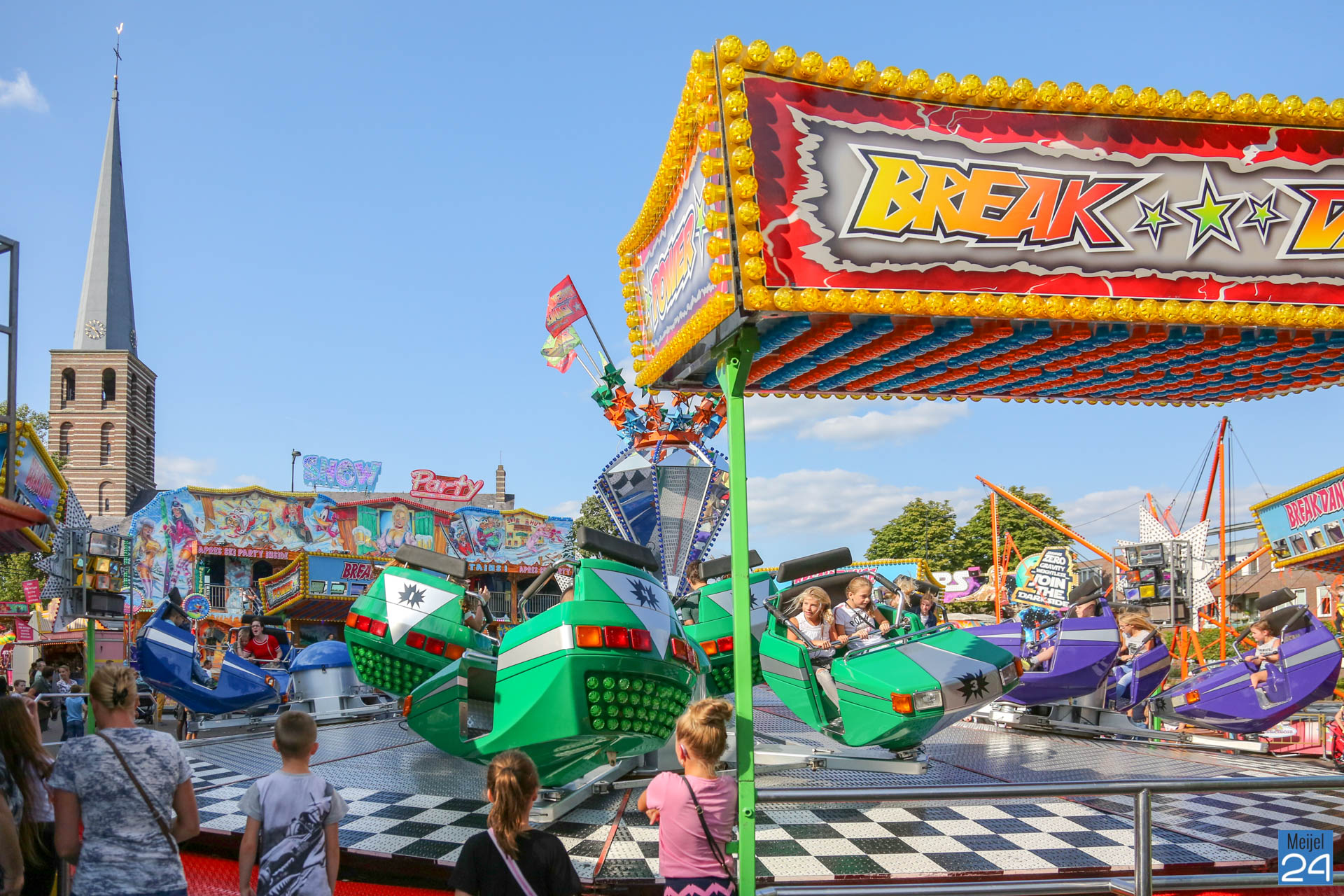 Na de opening, was het zaterdagmiddag gezellig druk op de kermis in Meijel. De één ging helemaal los in de Break Dance, terwijl de ander een balletje aan het rollen was bij de kamelenrace. Voor een ritje in de rups moest men af en toe rennen om een plekje te bemachtigen. Het mooie weer zorgde er voor dat de terrassen in het dorp vol zaten.