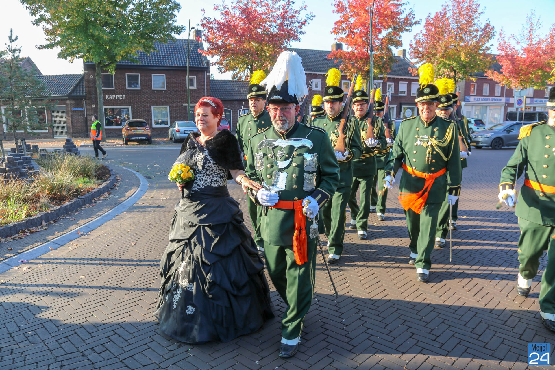 De schutterij trok zondagochtend door het dorp om het Koningspaar van 2018 thuis op te halen. Vervolgens ging het gezelschap, traditiegetrouw, naar de kerk voor de heilige mis. Onder een stralende zon kwam de schutterij vervolgens bij elkaar bij het schutterslokaal aan de Nederweerterdijk in Meijel voor het schieten.