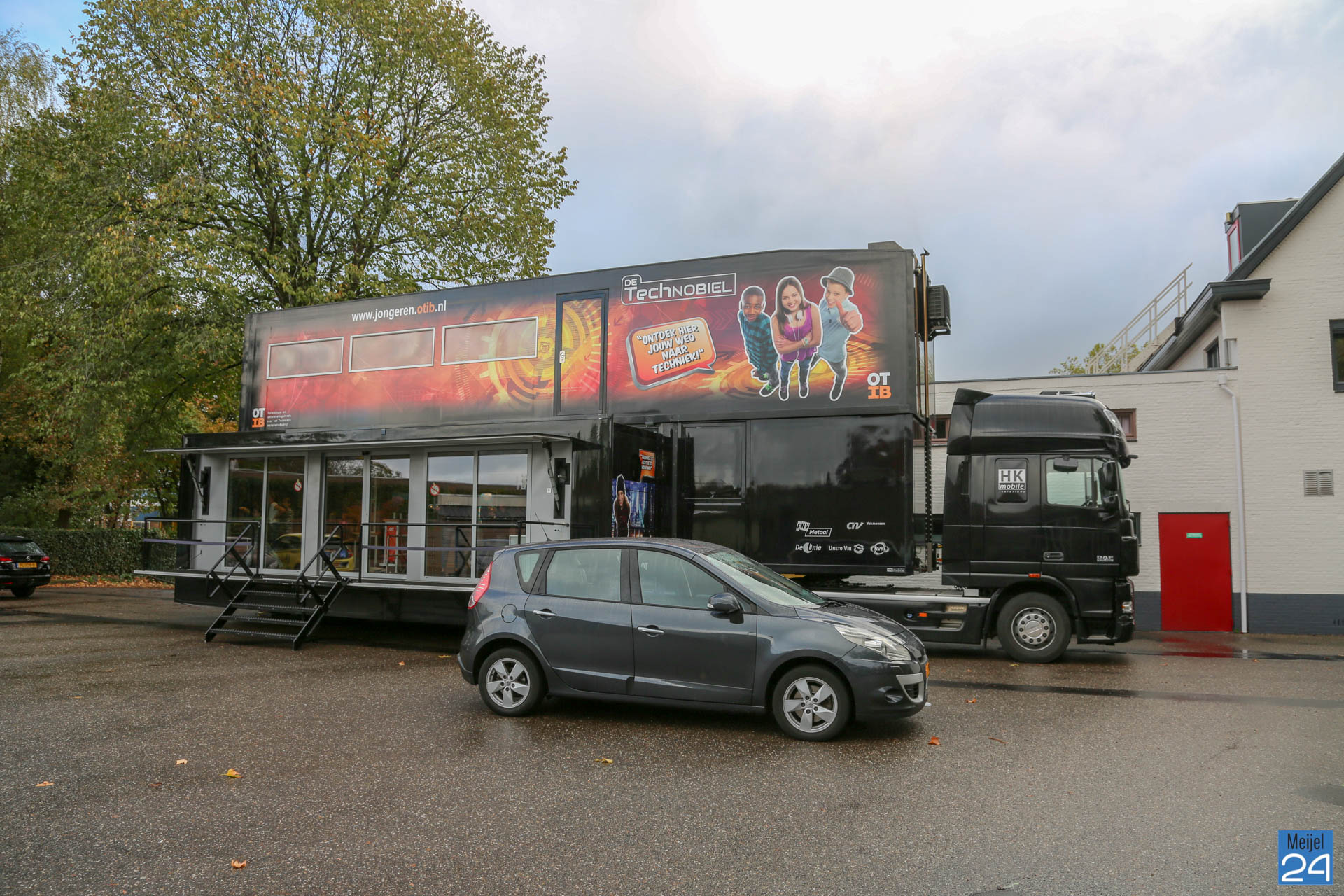 De leerlingen gingen met veel enthousiasme aan de slag. Omdat de grote trailer te groot was voor op het schoolplein, werd deze geplaatst op de parkeerplaats van het Oranje Hotel.