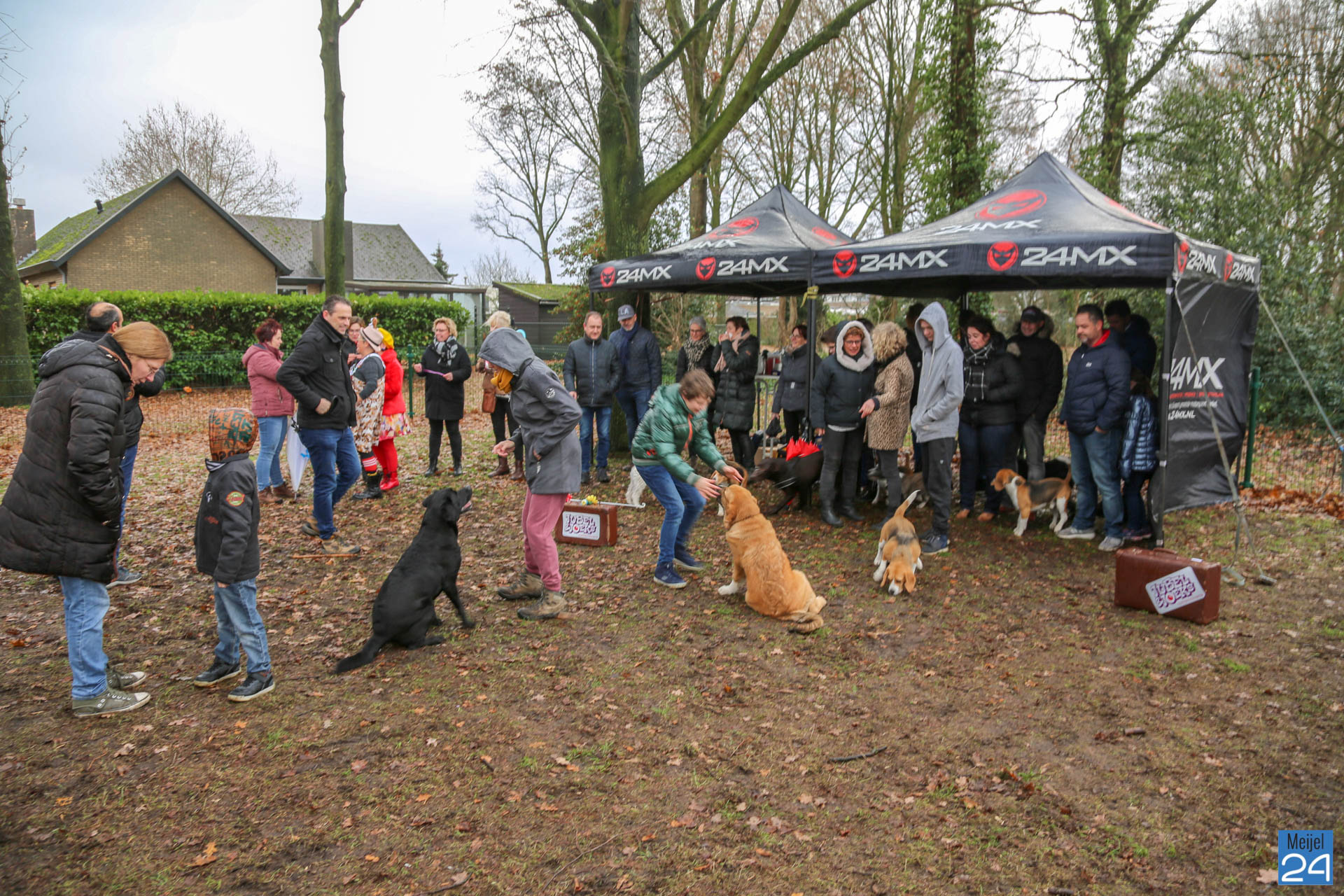 Onder grote belangstelling is zondagochtend het gloednieuwe hondenspeelveld in Meijel geopend. Ondanks de regen was er een grote opkomst. Clownsduo Jubel & Joeks hebben de officiële openingshandeling verricht.