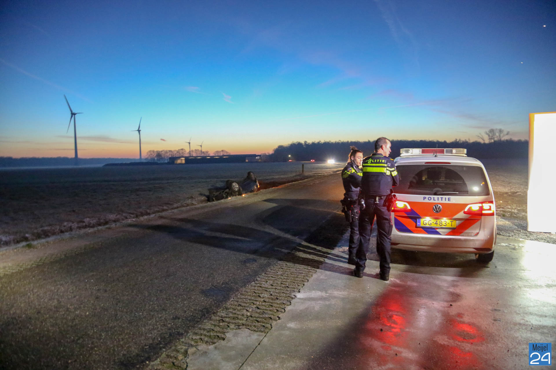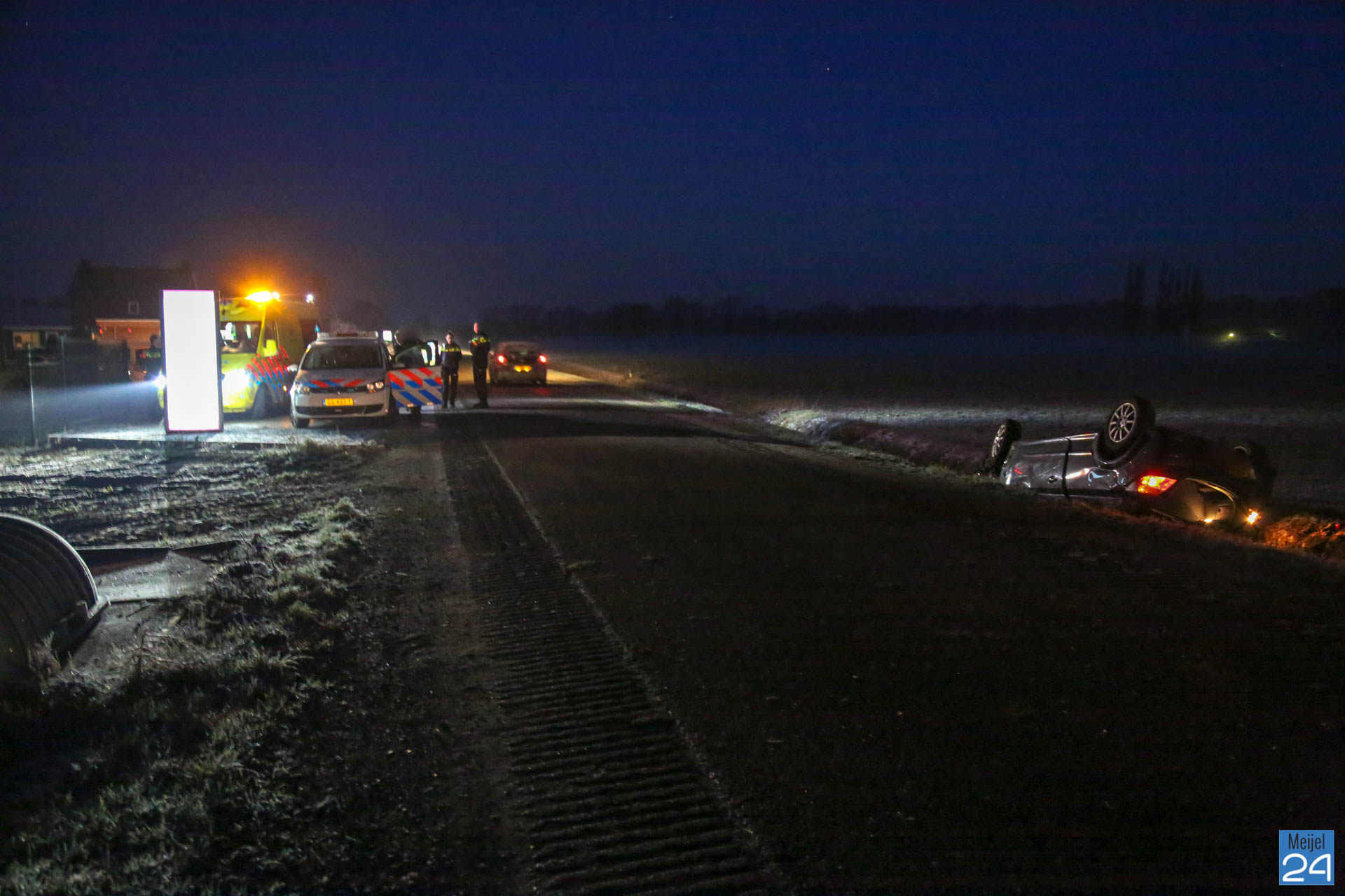 Brandweer, ambulance en politie gingen snel ter plaatse voor hulpverlening. De bestuurder raakte gewond en is per ambulance naar het ziekenhuis gebracht. Zijn auto, welke op de kop in de sloot lag, raakte zwaar beschadigd.