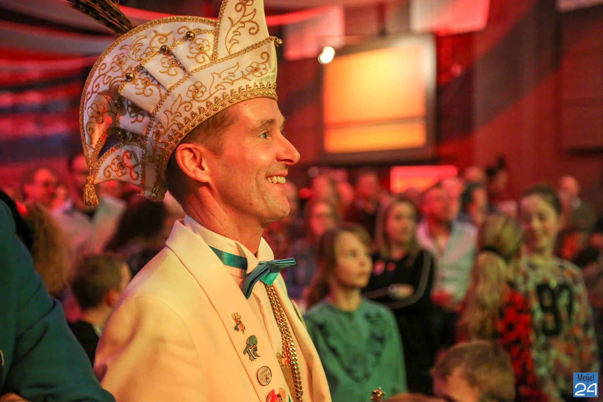 Na deze prijsuitreiking was het podium voor de KVW Meijel. Helaas werd er afscheid genomen van Prins Sem en Vorstin Sterre die een jaar lang “veuróp” mochten in de Kéjsjeutepolonaise. Onder het toeziend oog van een volle zaal werden zij ontdaan van hun waardigheden door Prins Luc I. Ondertussen werd alles in gereedheid gebracht voor de nieuwe raad van 11 en een gloednieuwe Prinses en Vorst. Onder leiding van ‘oud prins’ Sem en ‘oud-vorstin’ Sterre werden er wat nummers gespeeld door de ‘harmonie van de Kéjsjeut’. Rond vier uur stonden de nieuwe heersers van de Kéjsjeut, samen met hun Raad van 11 op het podium. De nieuwe Prinses Kimberley gaat heersen met de spreuk: “Mi minne roeëj, géél, gruune band, sté dizze vastelaovend niemes èn de kant”.