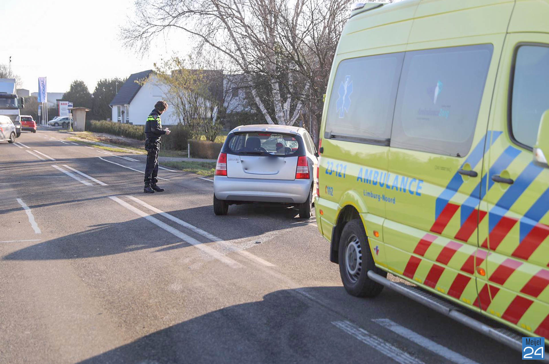 Maandagmorgen is een scooterrijdster geschept door een personenauto op de Meijelseweg.