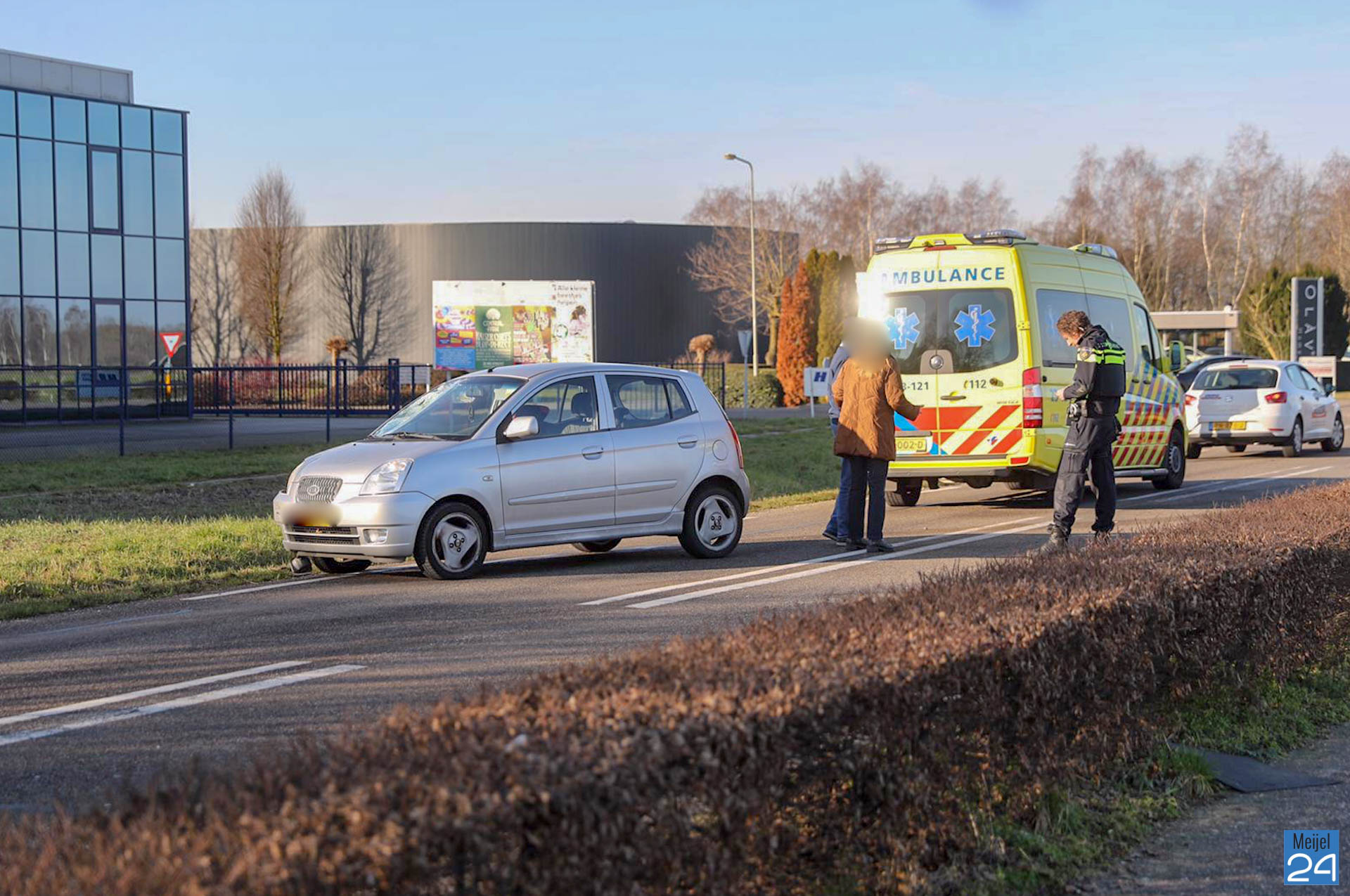 De vrouw is nagekeken door het ambulancepersoneel en meegenomen naar het ziekenhuis voor nader onderzoek.