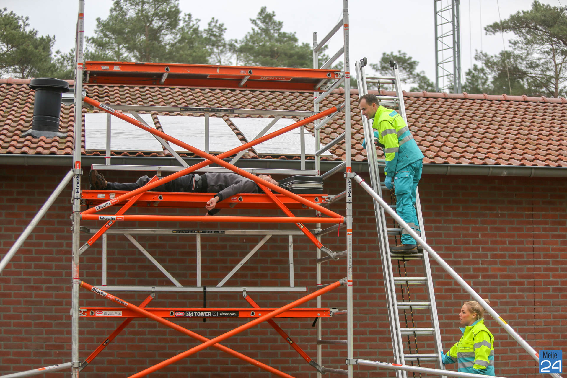 Bij schutterij Sint Willibrordus aan de Nederweerterdijk was men bezig met het monteren van zonnepanelen, maar dat ging niet helemaal goed. De monteur kreeg een flinke stroomschok en kwam op de steiger terecht met verbrande handen tot gevolg. Ondertussen ontstond er brand in de meterkast, welke zorgde dat het vuur doorsloeg naar de zolder. Daar was een vrijwilliger van de vereniging aanwezig.