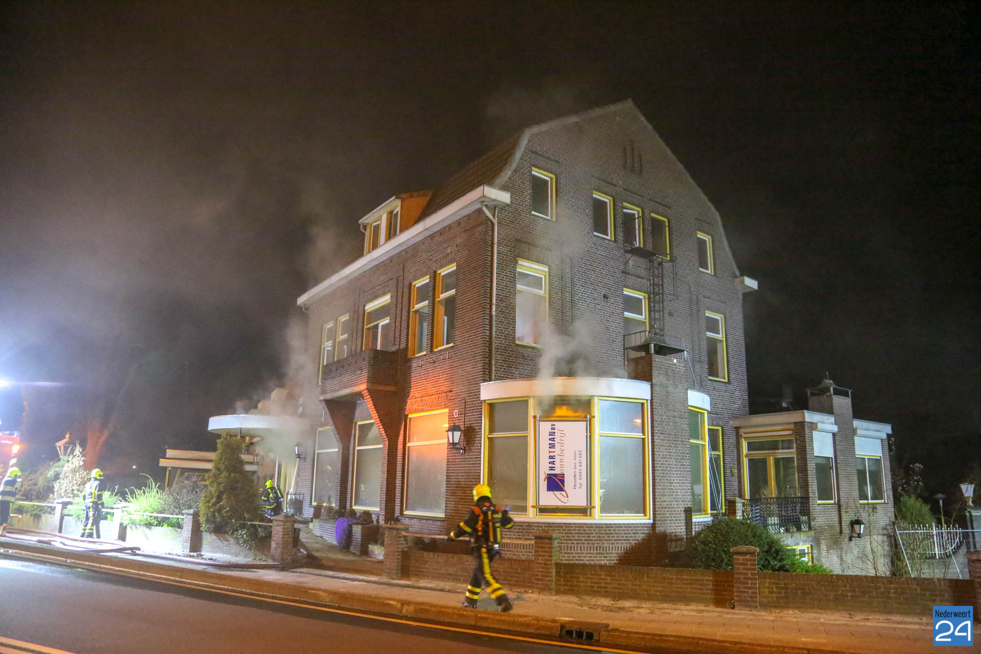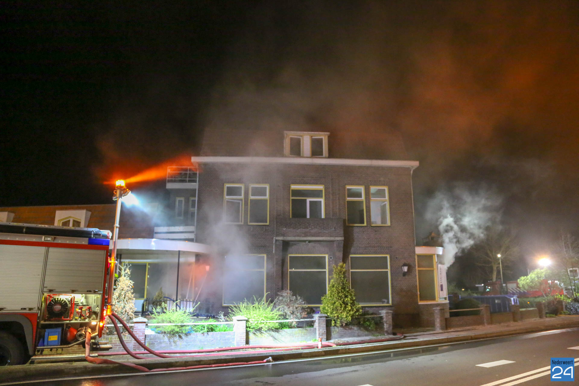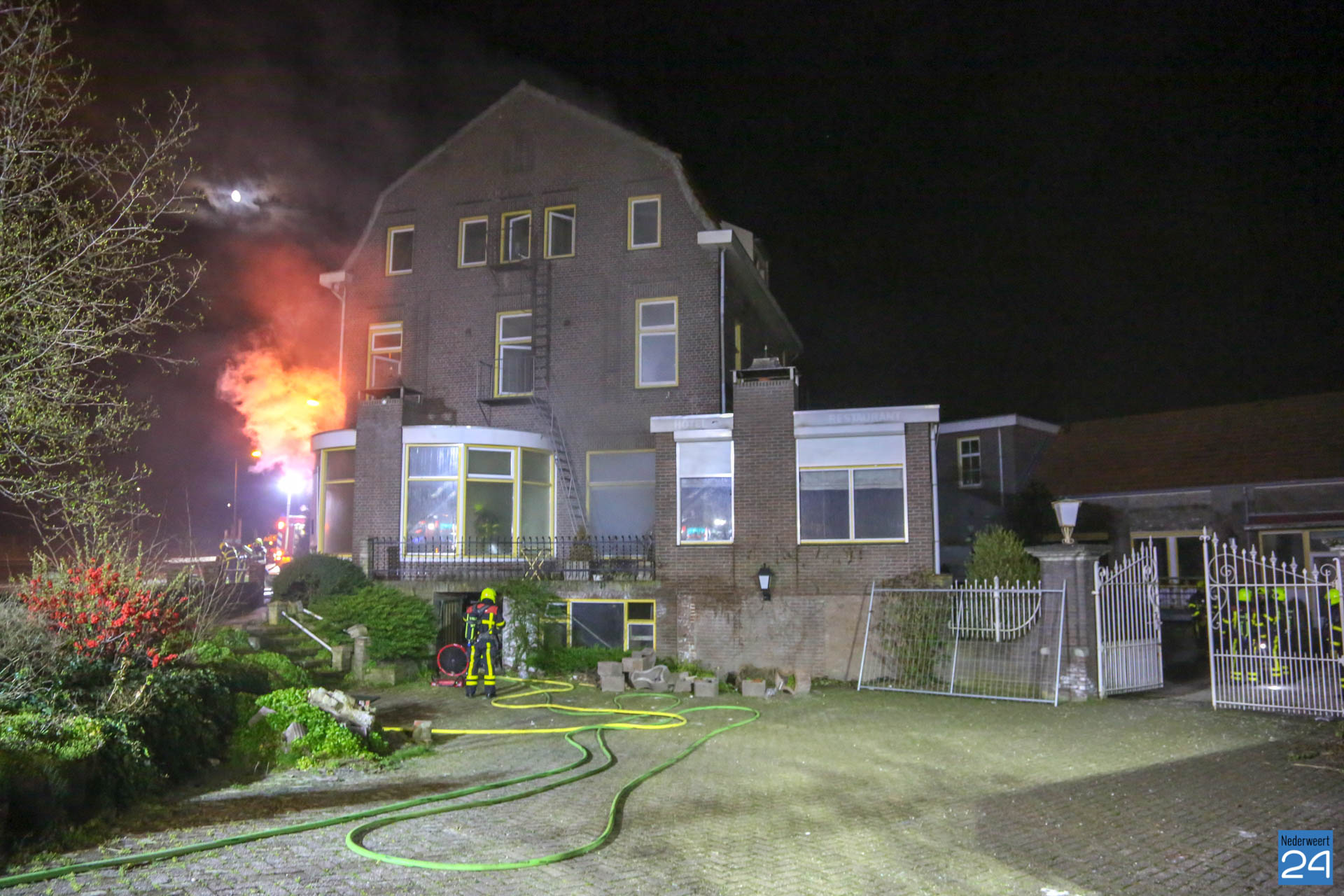 In de nacht van zondag op maandag is er brand uitgebroken in het voormalig hotel van Nieuwenhoven aan de N266 in Nederweert. Een voorbijganger had de brand ontdekt en gemeld bij de hulpdiensten. De brandweer heeft opgeschaald naar grote brand.