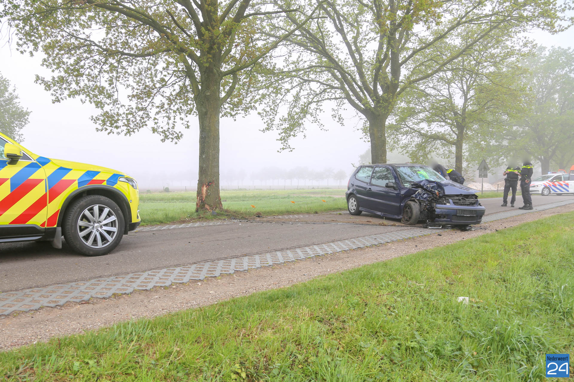 Een bestuurster van een personenauto is woensdagochtend hard met een boom in botsing gekomen op Aan de Grave in Heythuysen.
