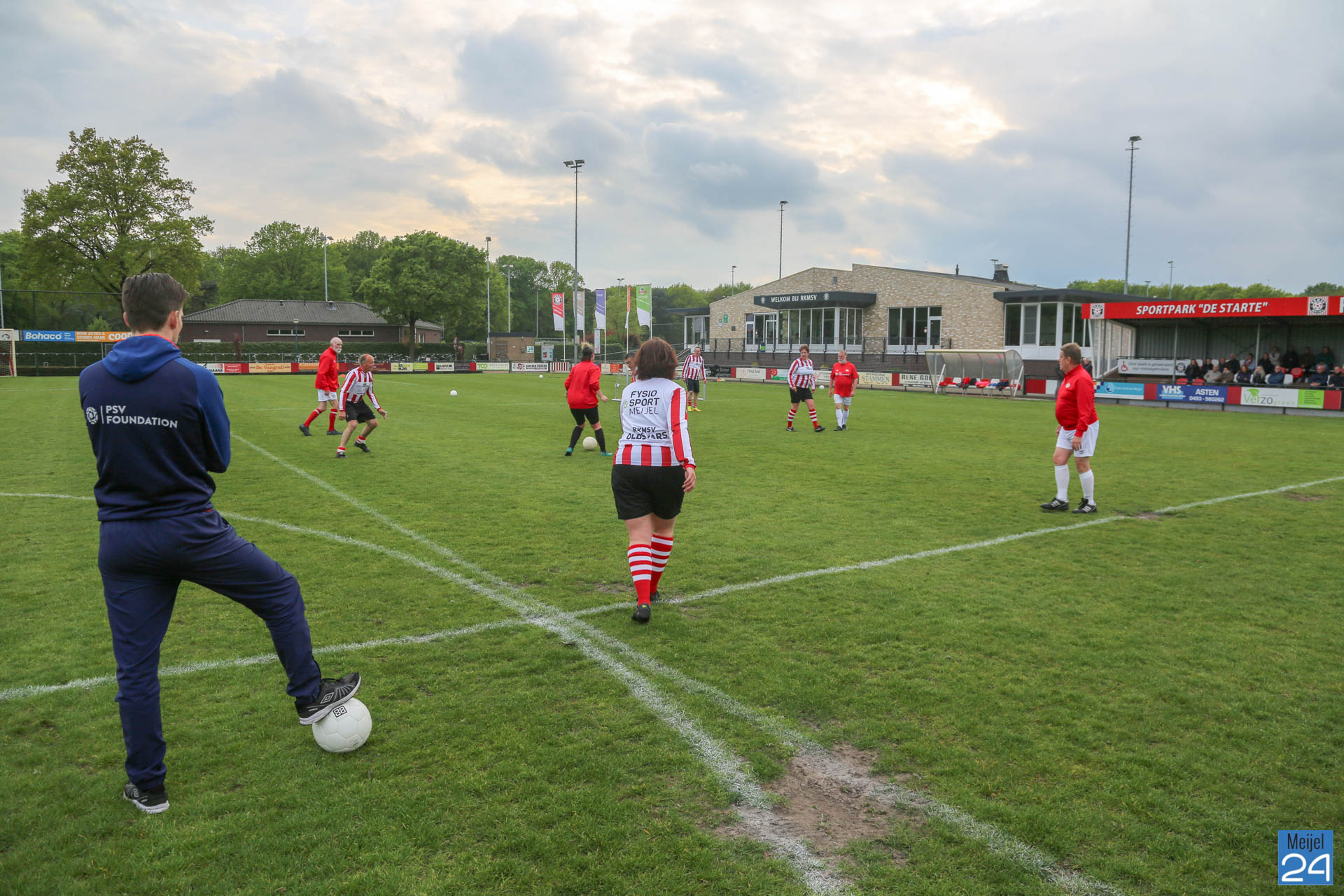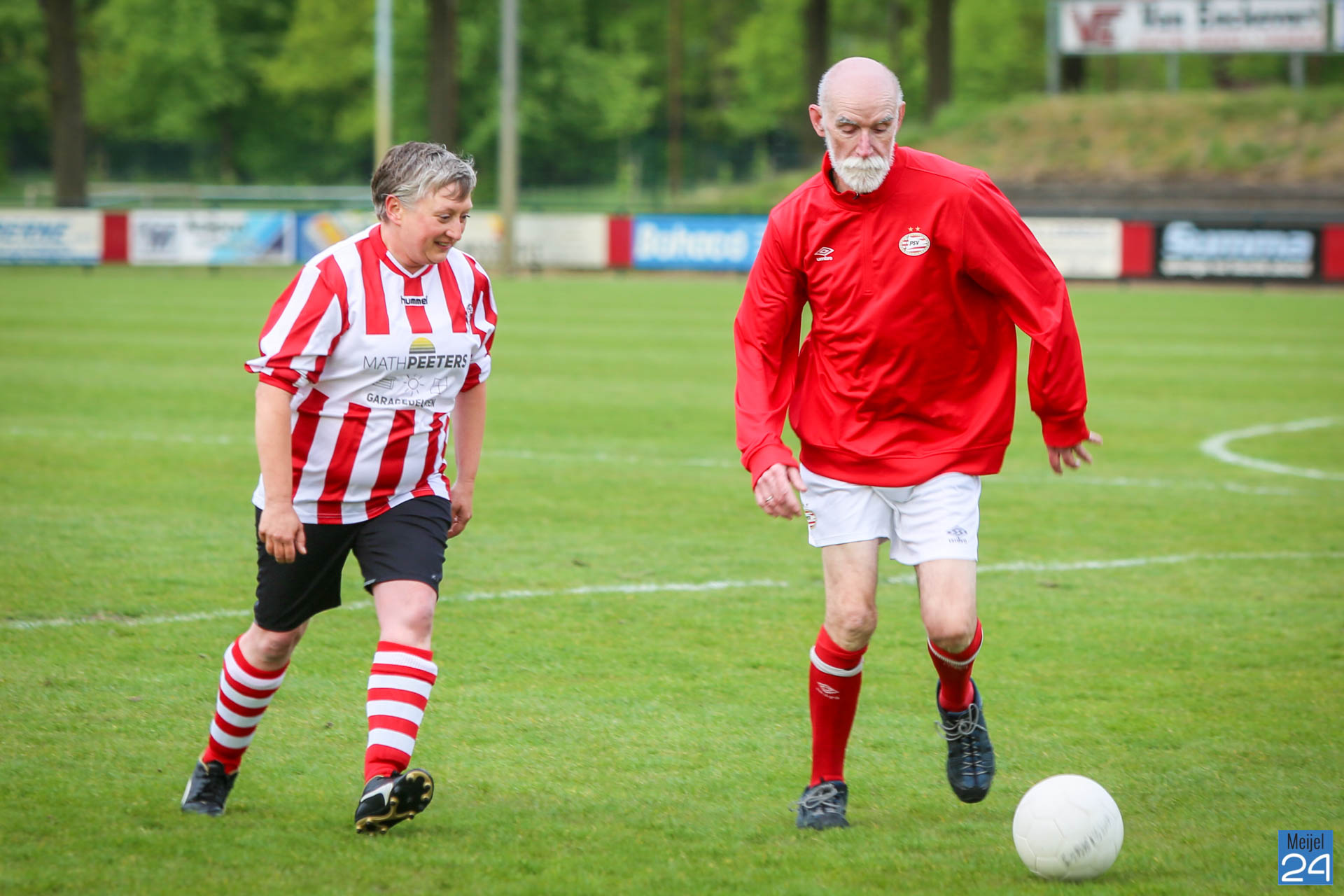 Een bijzondere avond op de velden van RKMSV in Meijel. Vrijdagavond kwamen de OldStars wandelvoetballers van PSV Eindhoven, onder aanvoering van Harry Lubse, met 2 teams naar sportpark de Starte voor een trainingsclinic en aansluitend een paar wedstrijdjes.