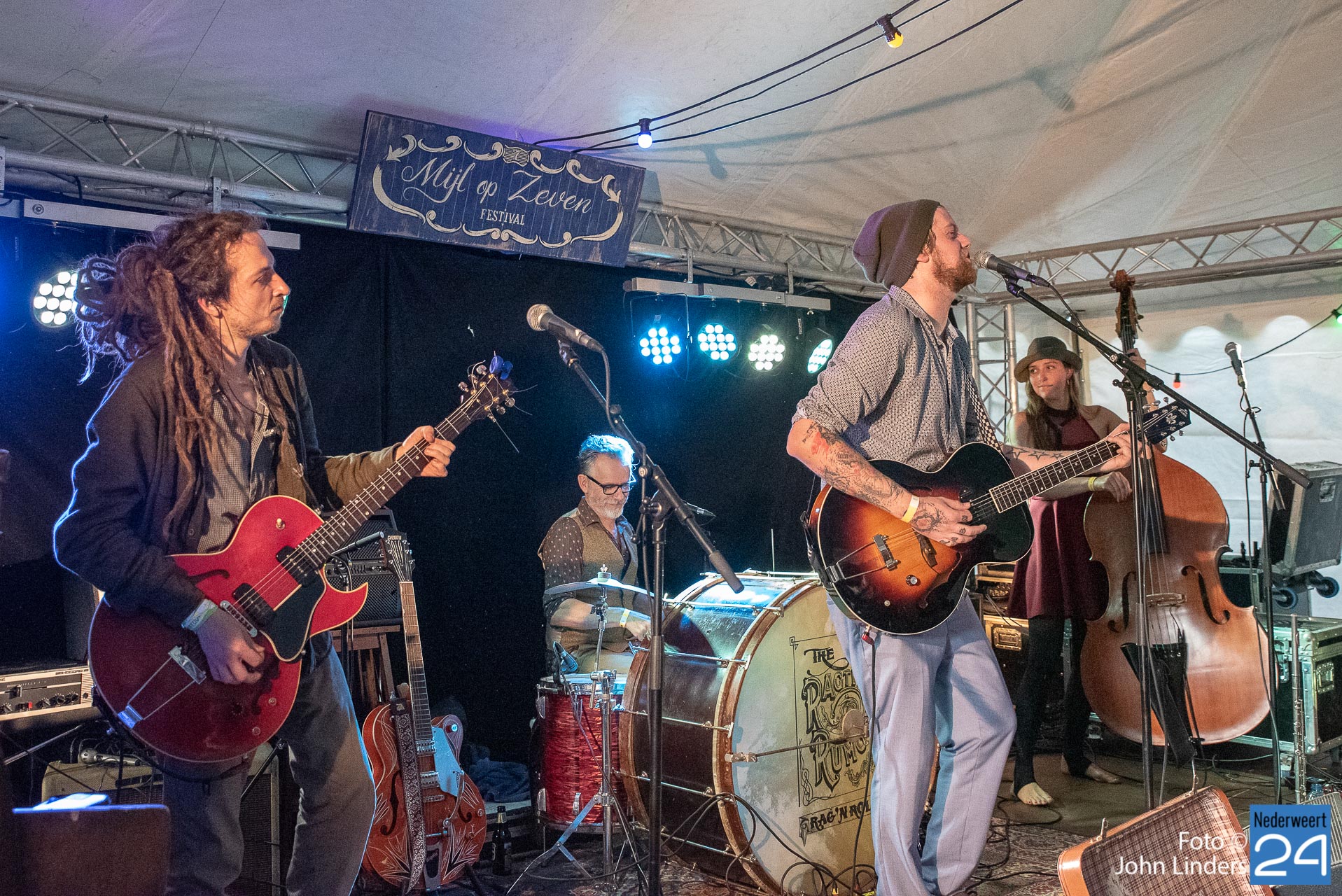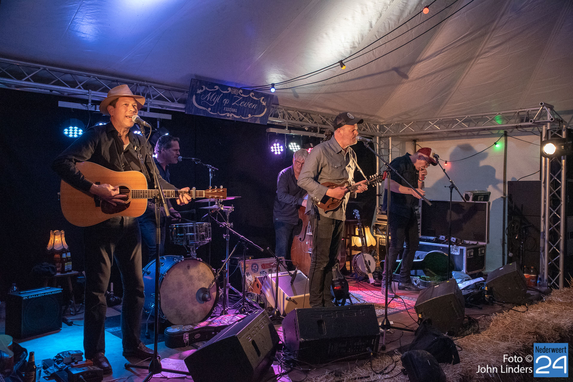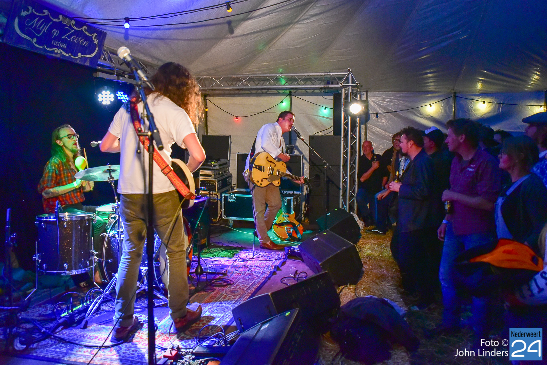 Op de weide in de tent op de mainstage werden optredens verzorgd door Jeffrey Halford een Californische singer-songwriter, hij speelt energieke, maar bovenal vermakelijke live shows. Jerry Leger is een Canadese singer-songwriter die hier vandaag met zijn band een mooi optreden wisten neer te zetten en de aandacht op het podium wist te houden. Nick Dittmeier and the Sawdusters. Deze Amerikanen opgegroeid in de Midwest (Indiana) van de United States of America spelen Americana. De winnaars van de Europese Blues challenge 2018 betraden voor de 2emaal het podium in Ospeldijk. The Ragtime Rumours uit het Limburgse Reuver betraden afgelopen jaar het podium van Moulin Blues en dit jaar werd het Mijl op Zeven festival opgenomen in de tour agenda. Een heerlijke terug in de tijd sound met deze swingende muziek. Absoluut een must om mee te bewegen. Stringcaster, vijf mannen uit de regio van Rotterdam met snaarinstrumenten en een mondharmonica. Doorgewinterde muzikanten met roots in de blues, rockabilly, Irish folk en country. Afsluiter was de Colorado afkomstige band de Yawpers, zij wisten de gevoelige snaar laat op de avond nog even te raken. Een mix van Blues en old time country in een nieuw en pittig jasje gestoken.