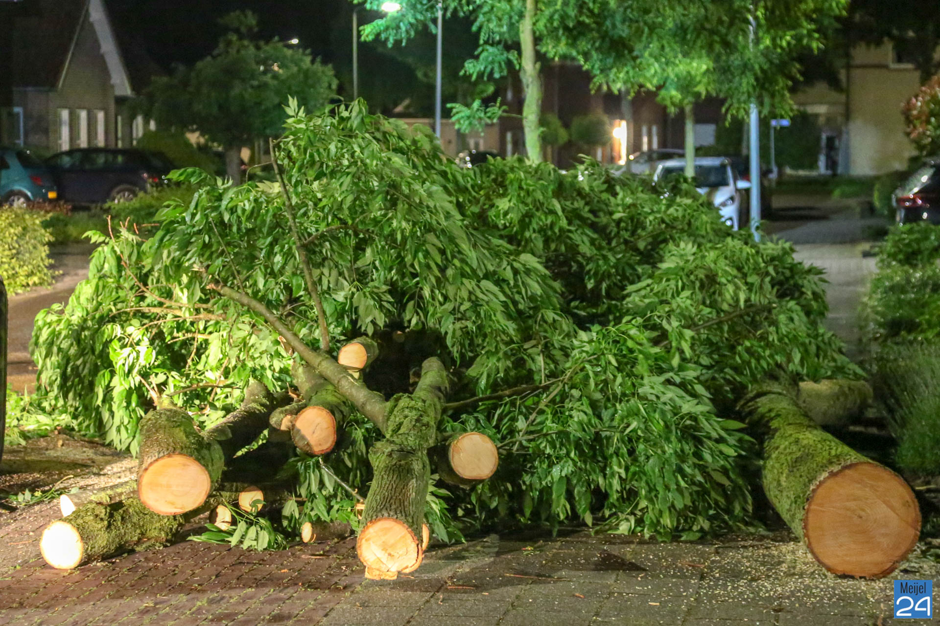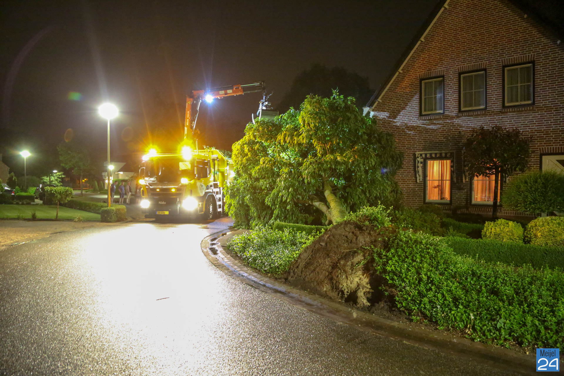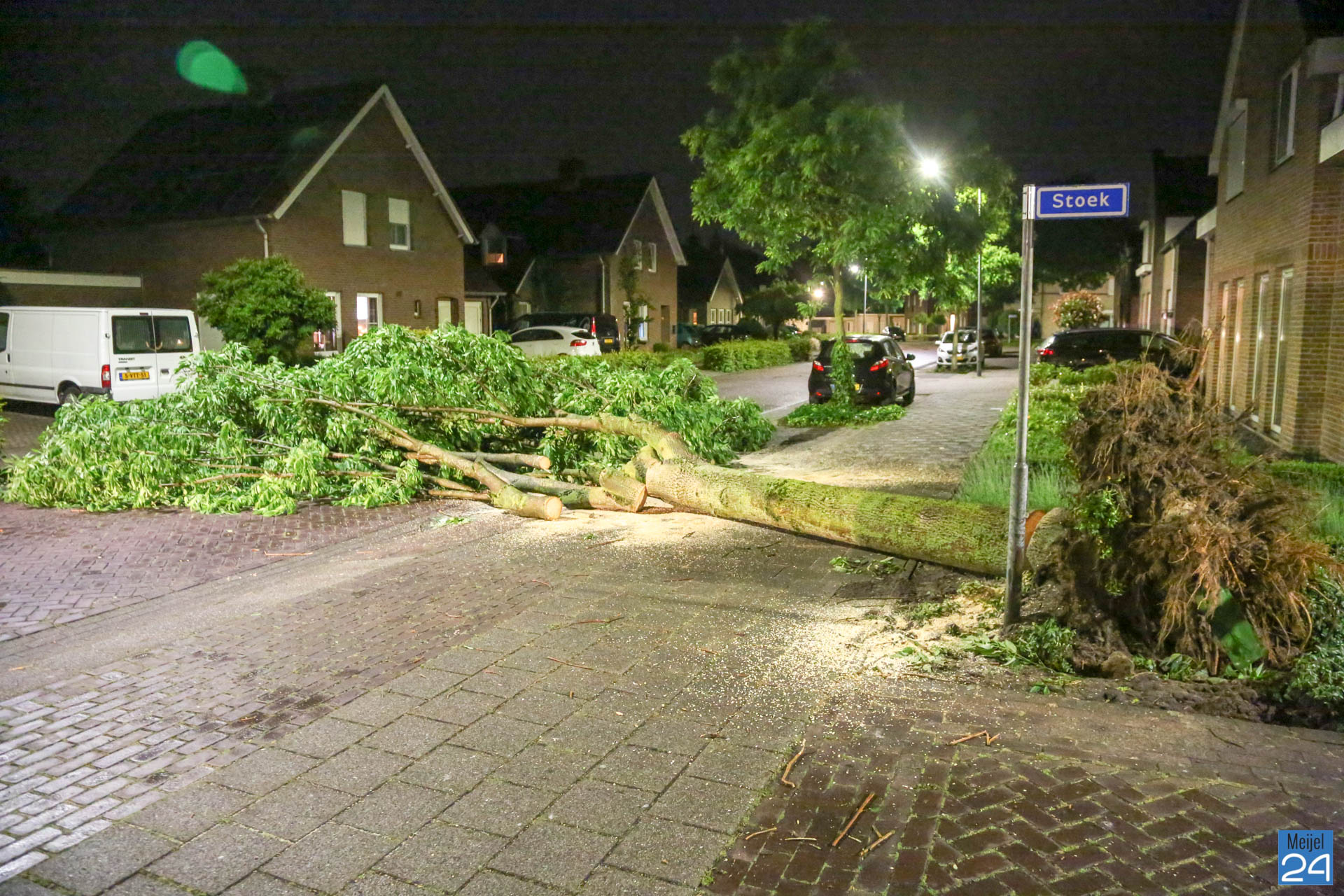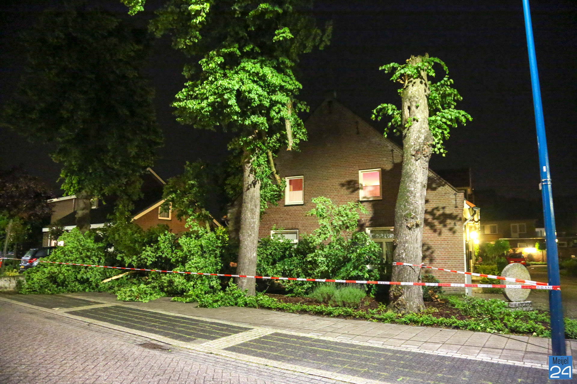 Het noodweer heeft dinsdagavond voor flink wat schade gezorgd in het centrum en buitengebied van Meijel. Onweer, regen en zeer harde windstoten zorgde er in korte tijd voor dat verschillende bomen omvielen.