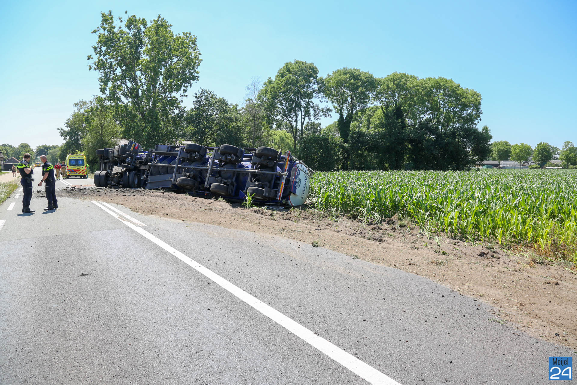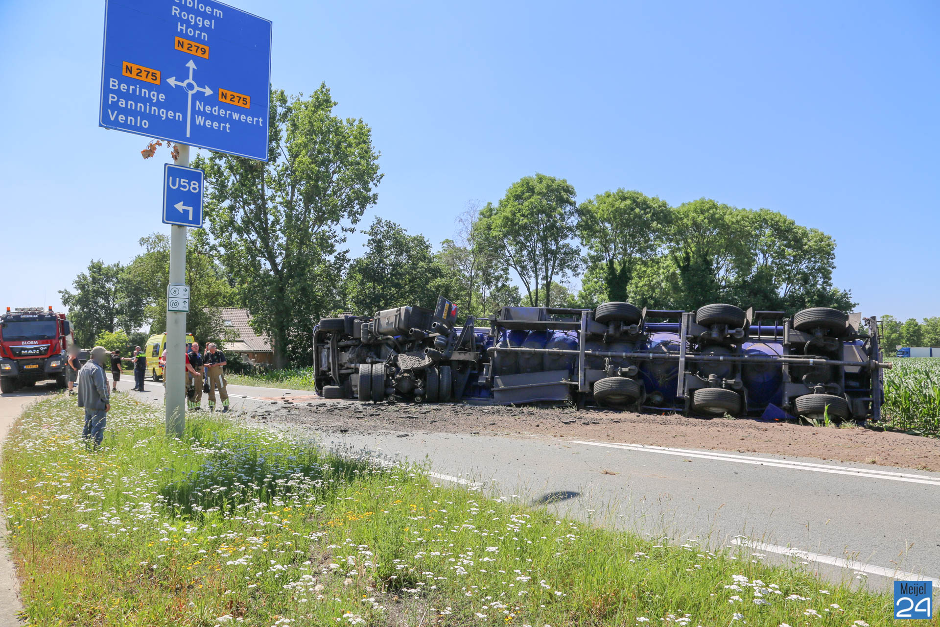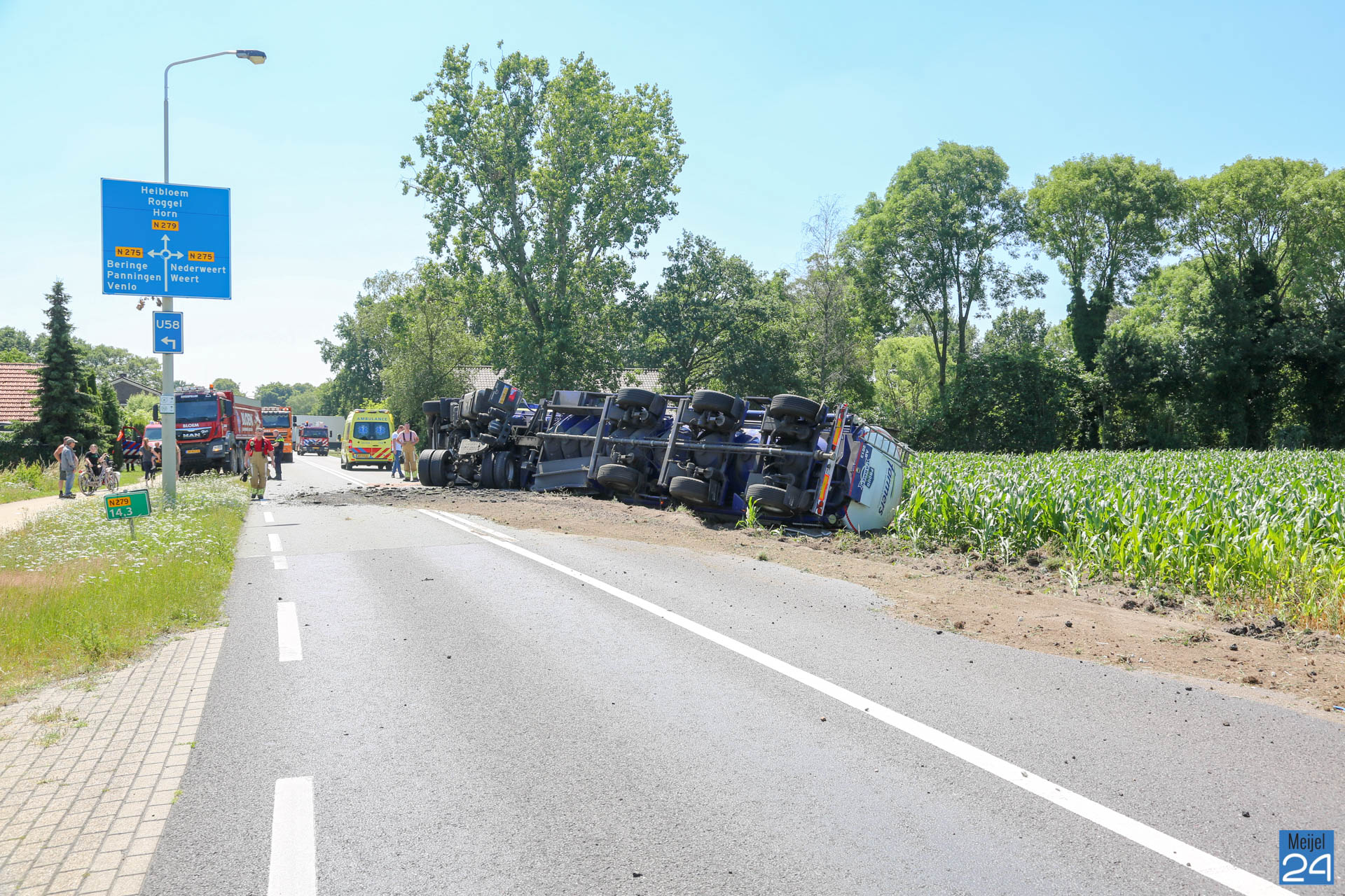 Vrijdagmiddag is een vrachtauto gekanteld op de Roggelsedijk (N279) in Meijel. Door een nog onbekende oorzaak raakte de chauffeur naast de provinciale weg en kantelde.