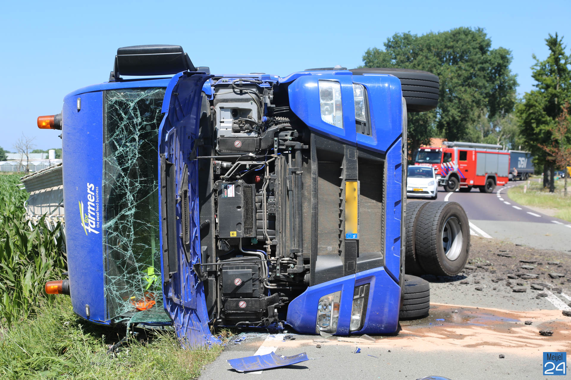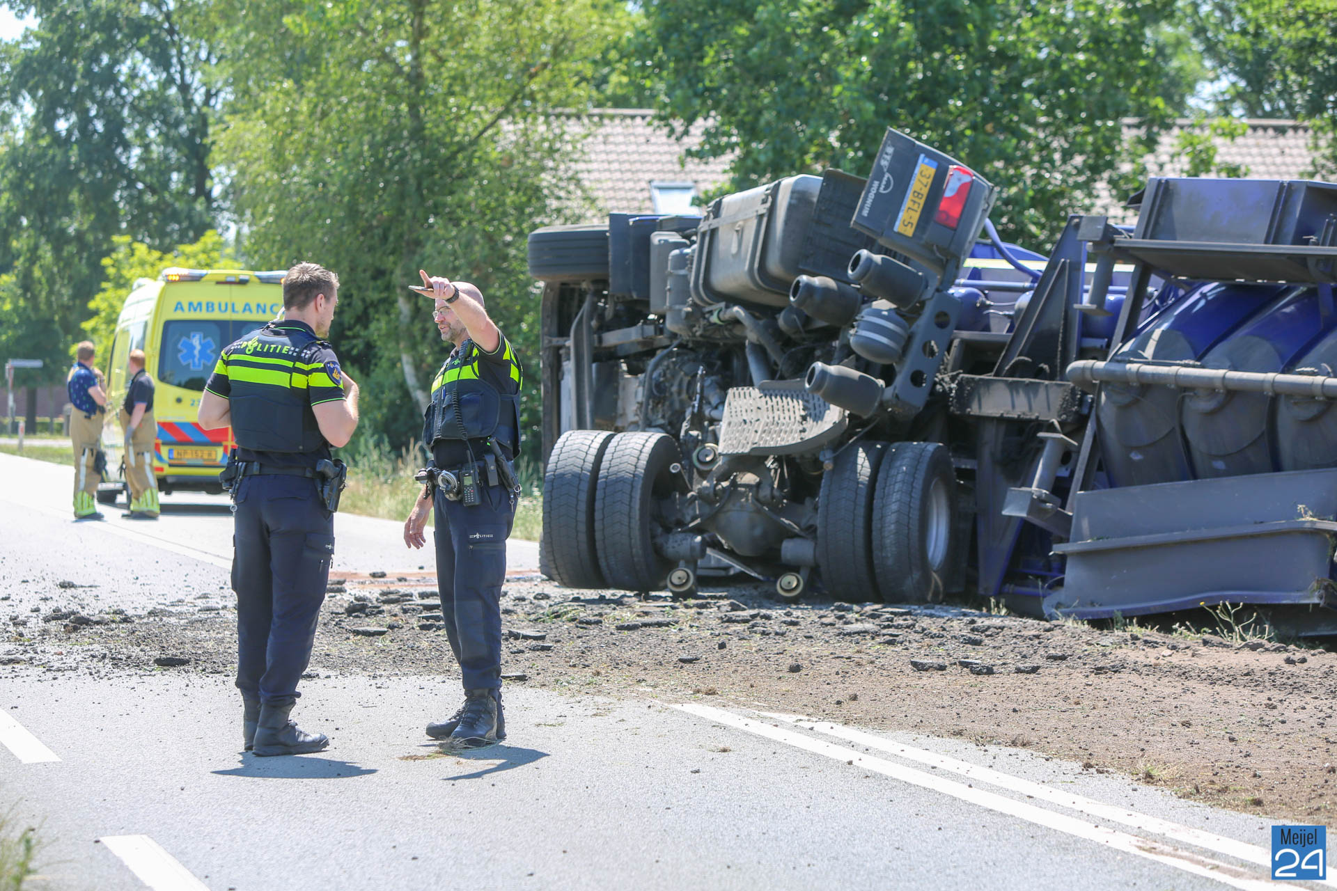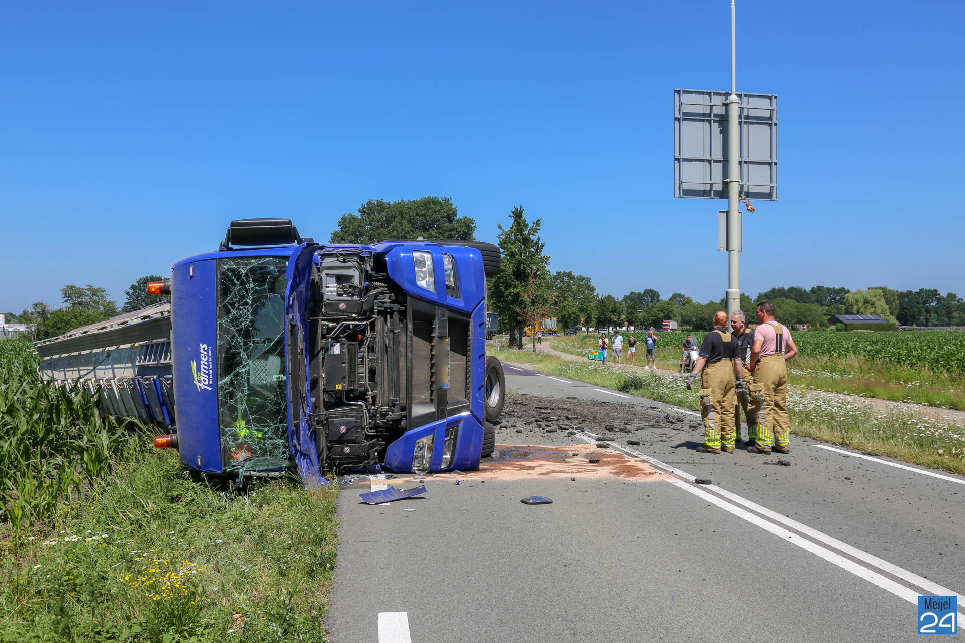 Vrijdagmiddag is een vrachtauto gekanteld op de Roggelsedijk (N279) in Meijel. Door een nog onbekende oorzaak raakte de chauffeur naast de provinciale weg en kantelde.