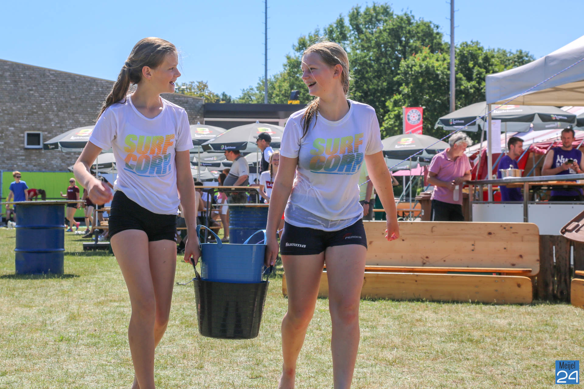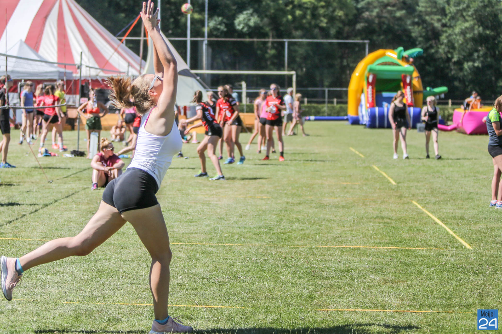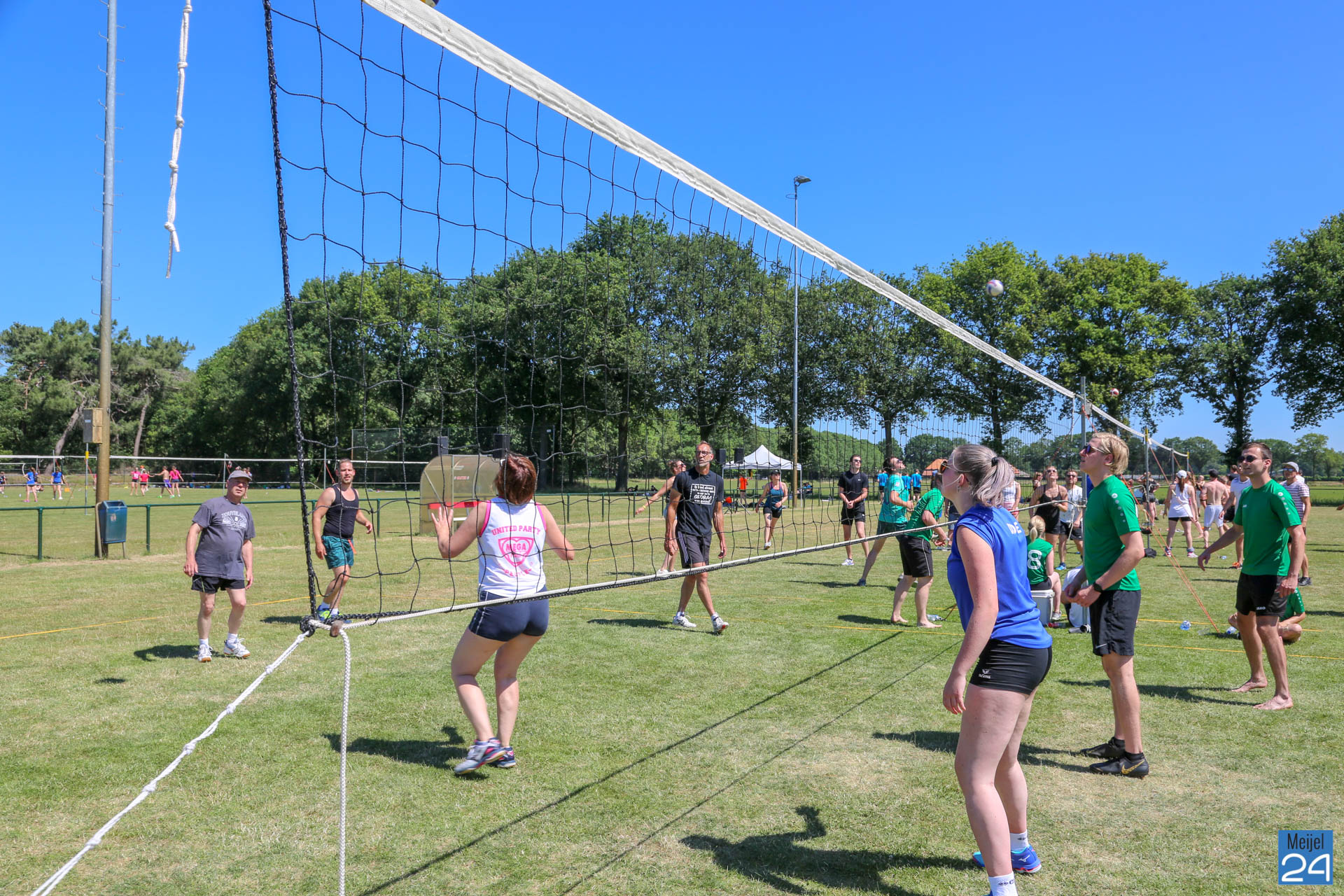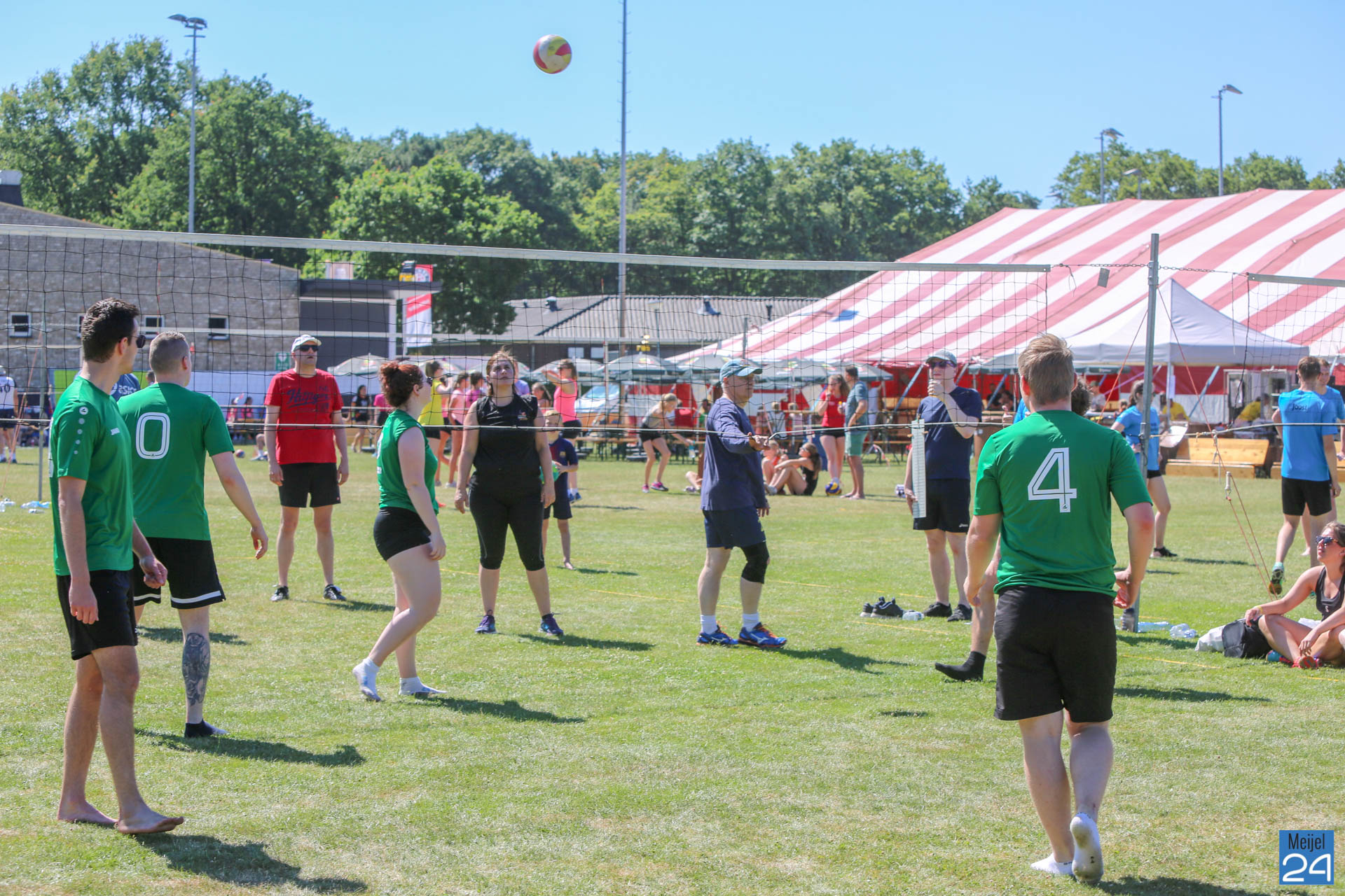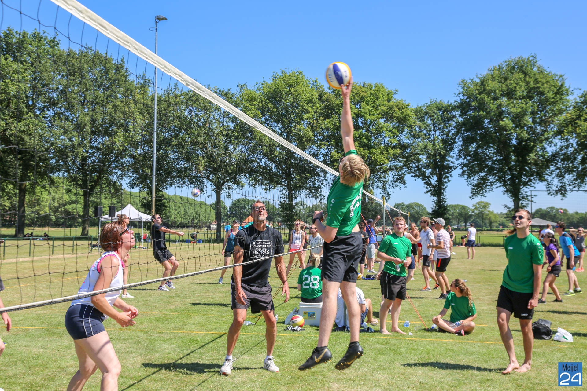 Het 33e internationale Peelpush buitenvolleybaltoernooi is van start. Het weekend startte vrijdagavond al met een feestavond. Op Sportpark De Starte hing zaterdagmorgen al een super gezellige sfeer. Het was erg heet, en daarom zorgde de organisatie voor verkoeling. Daar werd massaal gebruik van gemaakt.