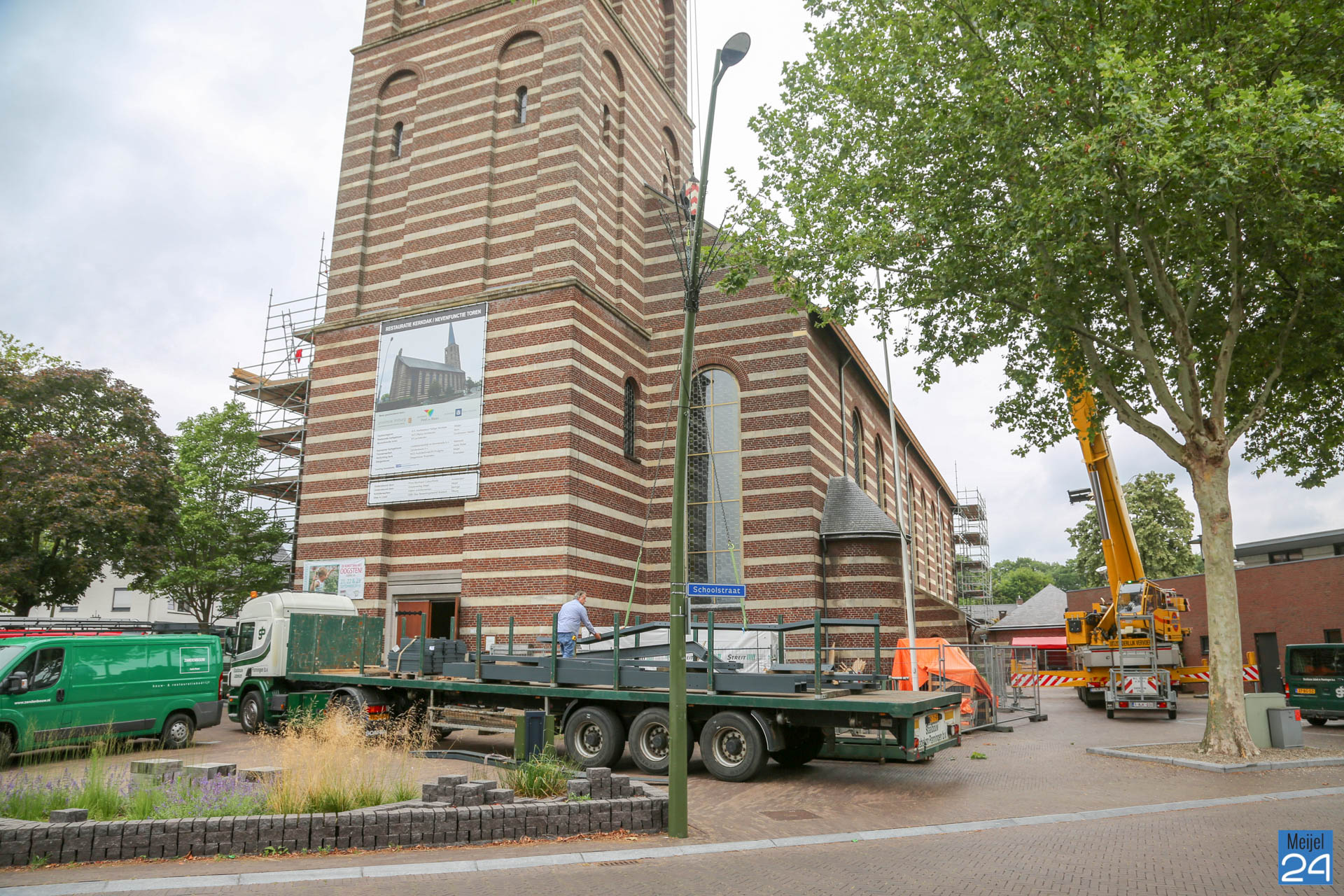 Men is gestart aan het beklimbaar maken van de toren van de Sint Nicolaas kerk in Meijel. Al enkele maanden zijn werknemers bezig met de restauratie van het dak van het monumentale gebouw. Maandagmorgen werden onderdelen van de nieuwe trap met een grote hijskraan naar boven gehesen. Verschillende inwoners kwamen een kijkje nemen.