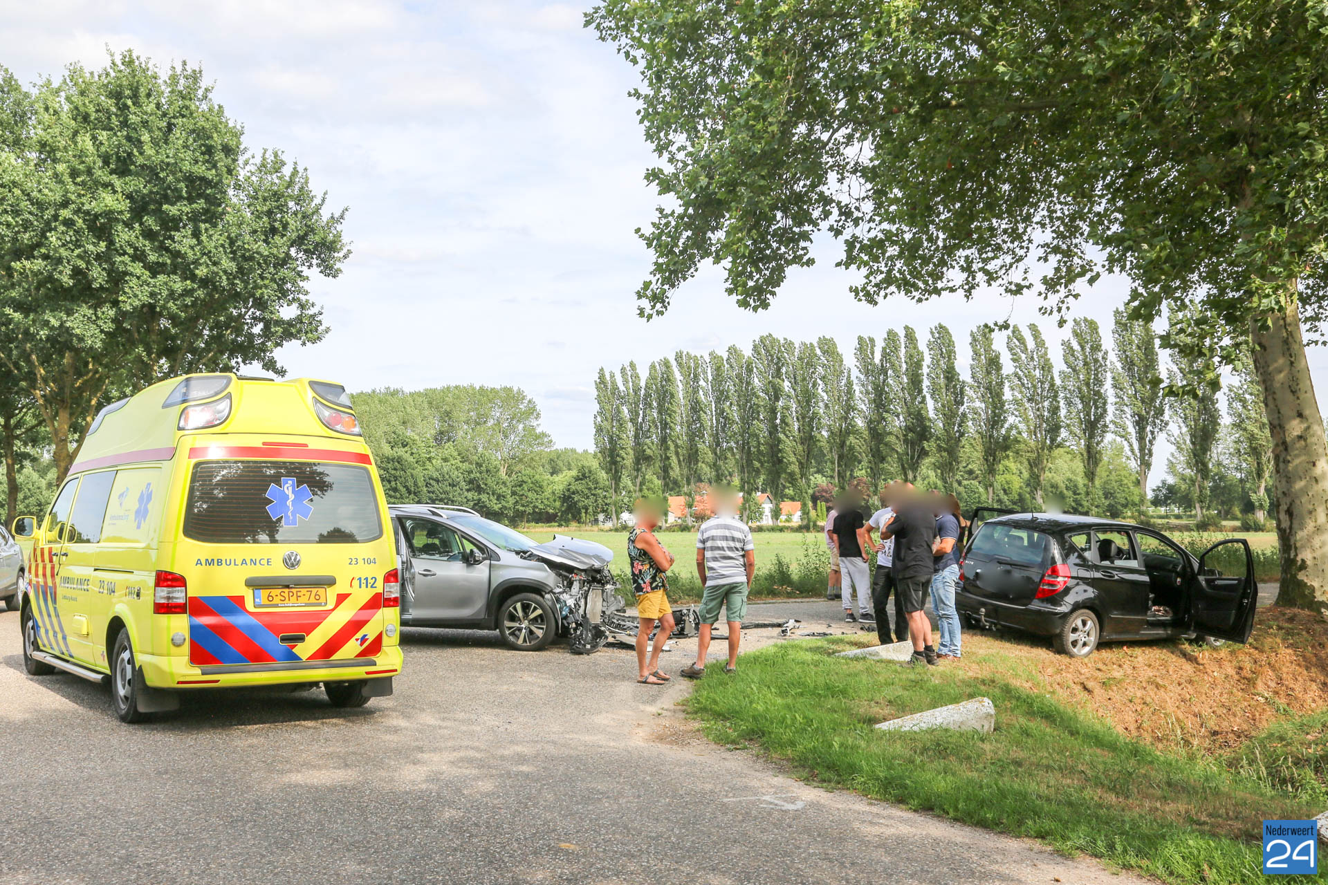 Het ongeval gebeurde op de gelijknamige kruising. Een voorrangsfoutje is vermoedelijk de oorzaak. Ambulancepersoneel heeft een bijrijdster nagekeken, maar ze hoefde niet mee naar het ziekenhuis.