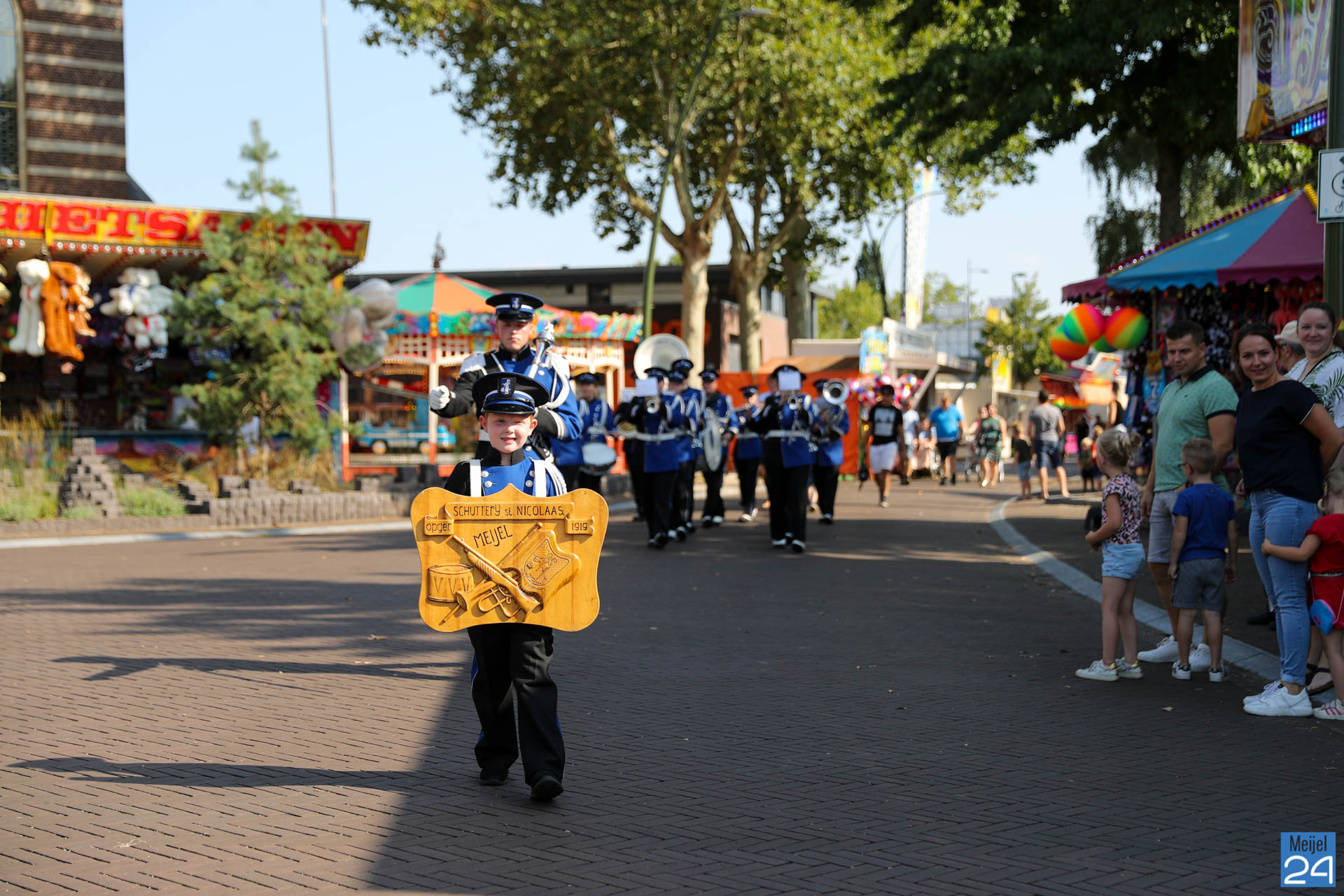 Vooraf liep Schutterij Sint Nicolaas over het kermisterrein. Daar zorgde zij voor een vrolijke noot.