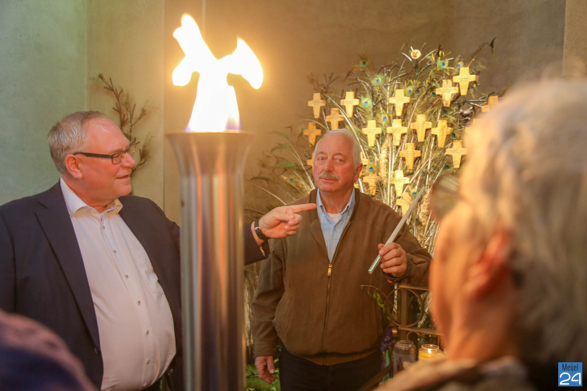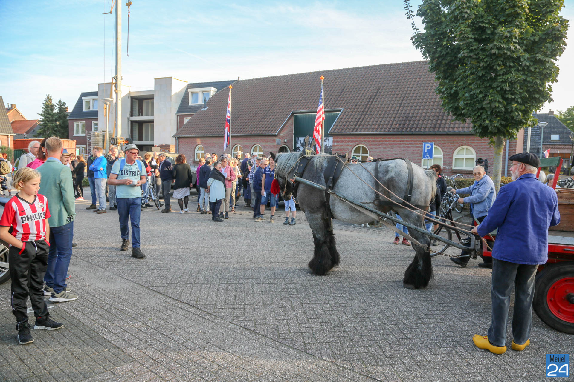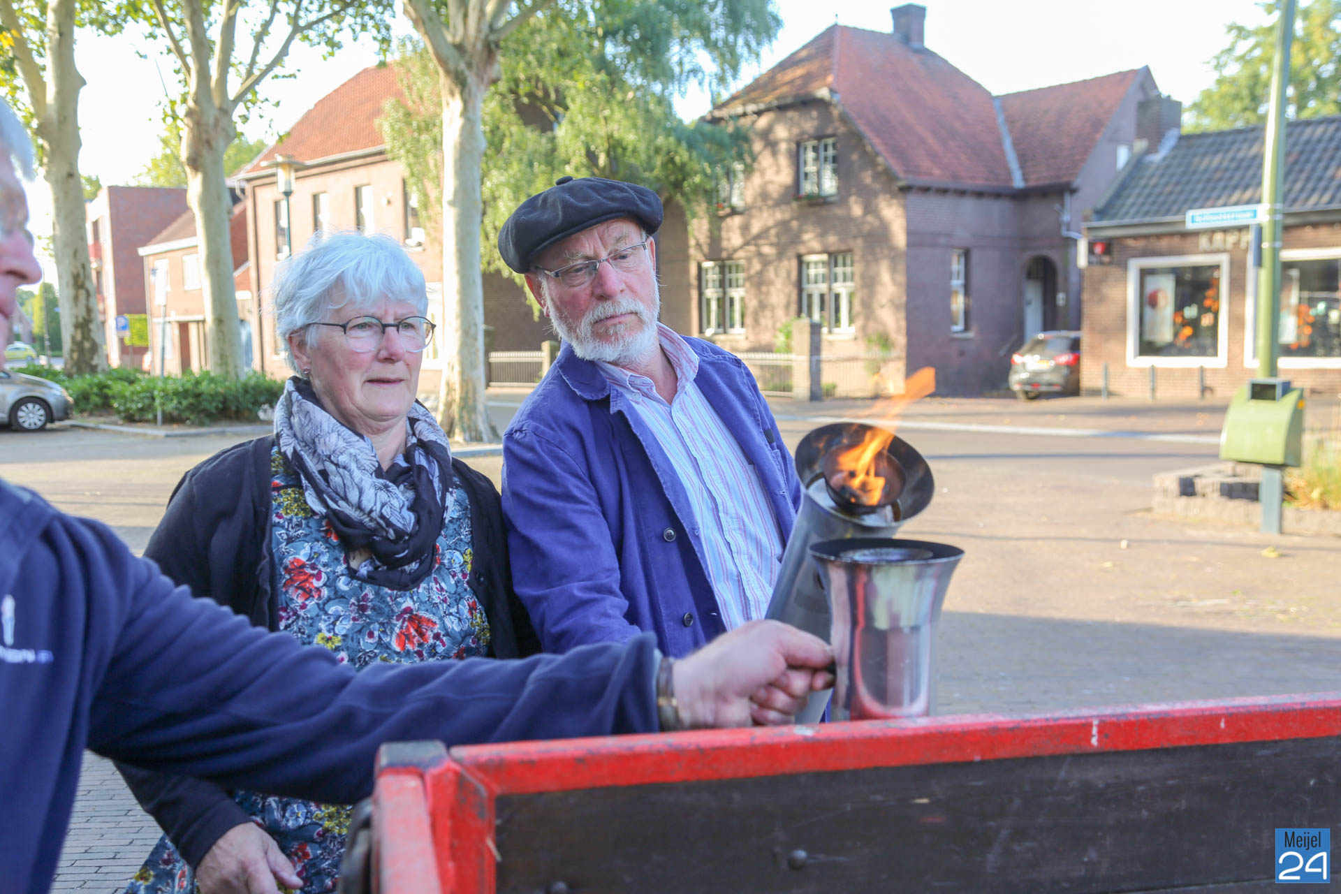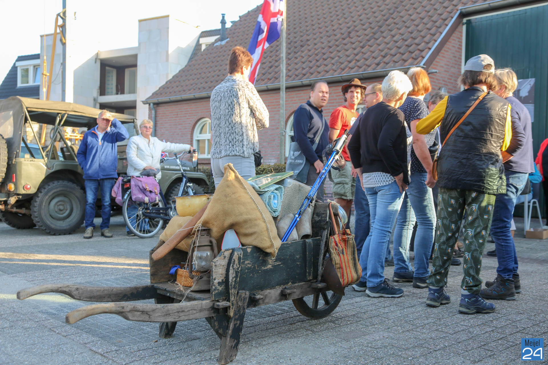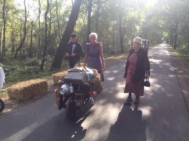 Daarna kiezen de deelnemers: óf te voet, of per fiets verder naar het gemeenschapshuis van Heusden of met ‘voertuigen van toen’ daar naartoe. Jan de Louw evacueert met paard en kar. Door hem is het bevrijdingsvuur zondagmorgen opgehaald in de kerk van Meijel.