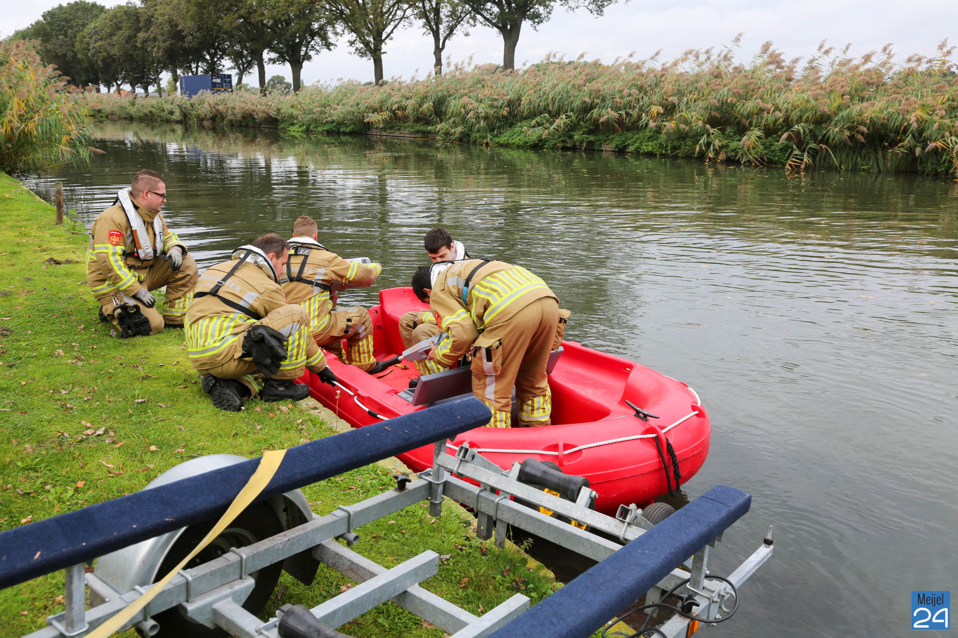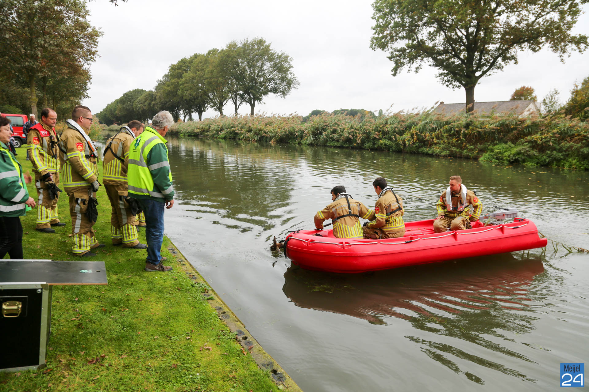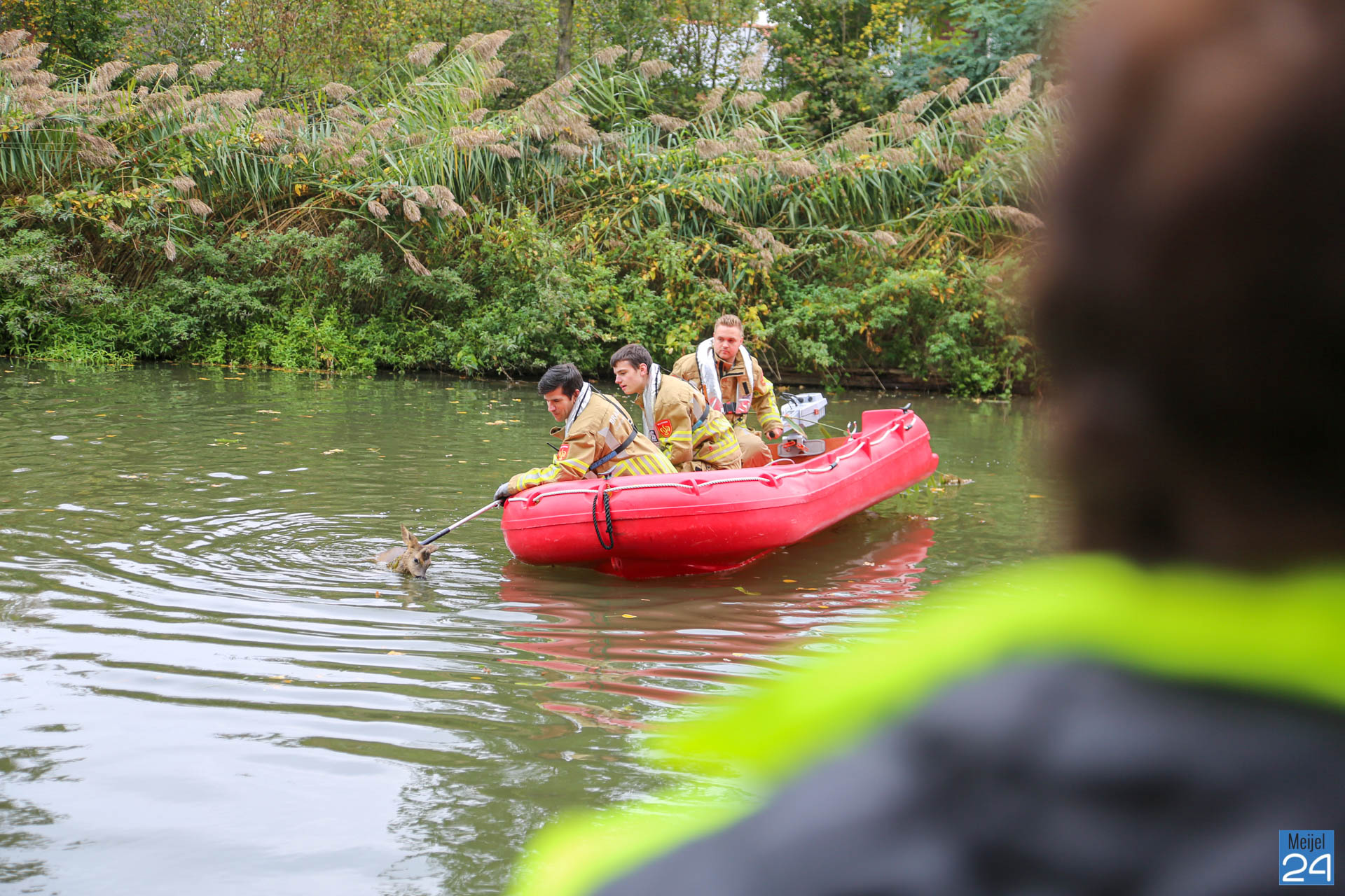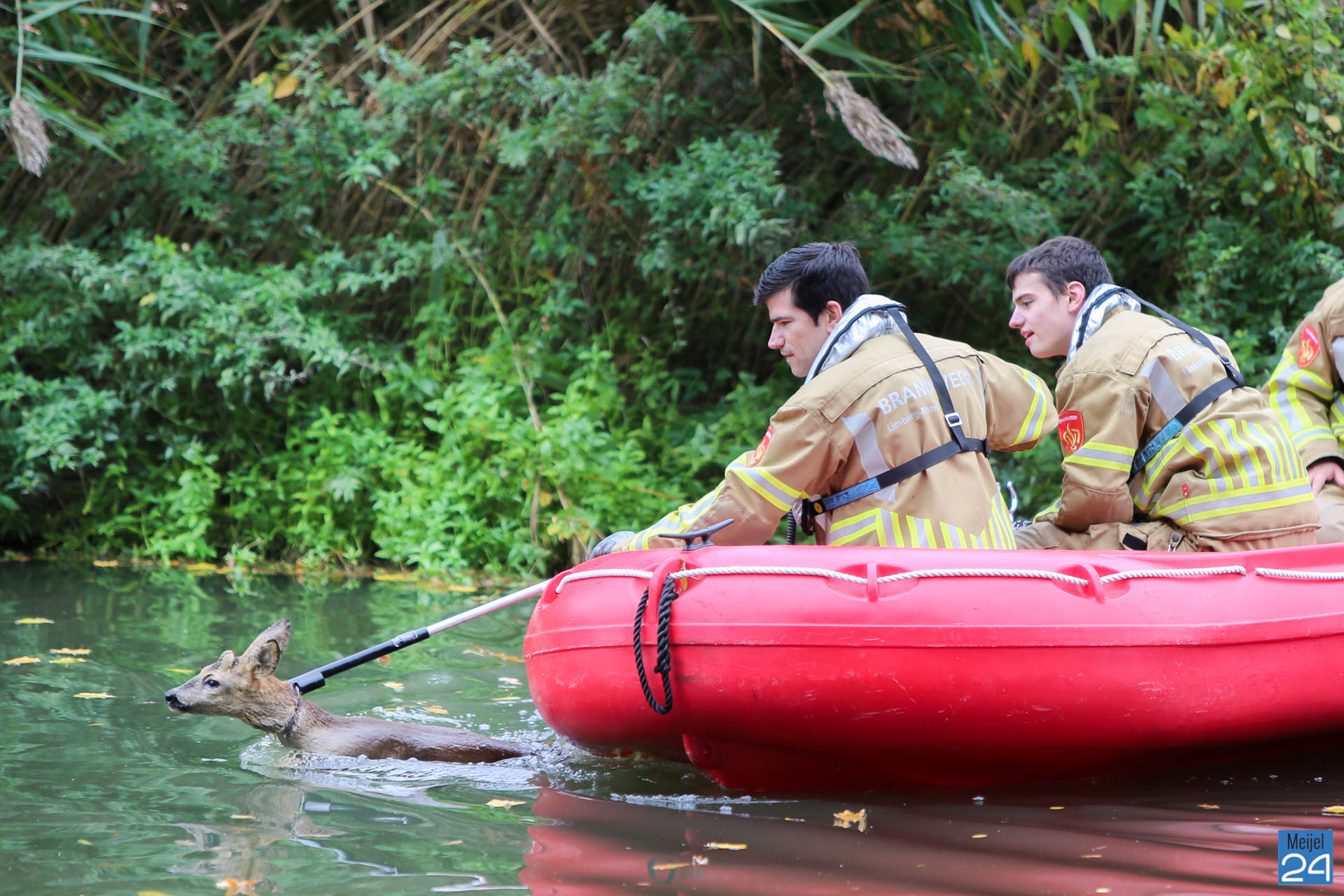 Deze kwam snel ter plaatse maar kon niet bij het dier komen. Vervolgens werd de brandweer van Nederweert gebeld. Zij kwamen met een bootje om de ree uit het water te halen. De ree werd snel uit het water gehaald waarna het dier werd overgedragen aan het personeel van de dierenambulance. Zij namen het verzwakte dier mee.