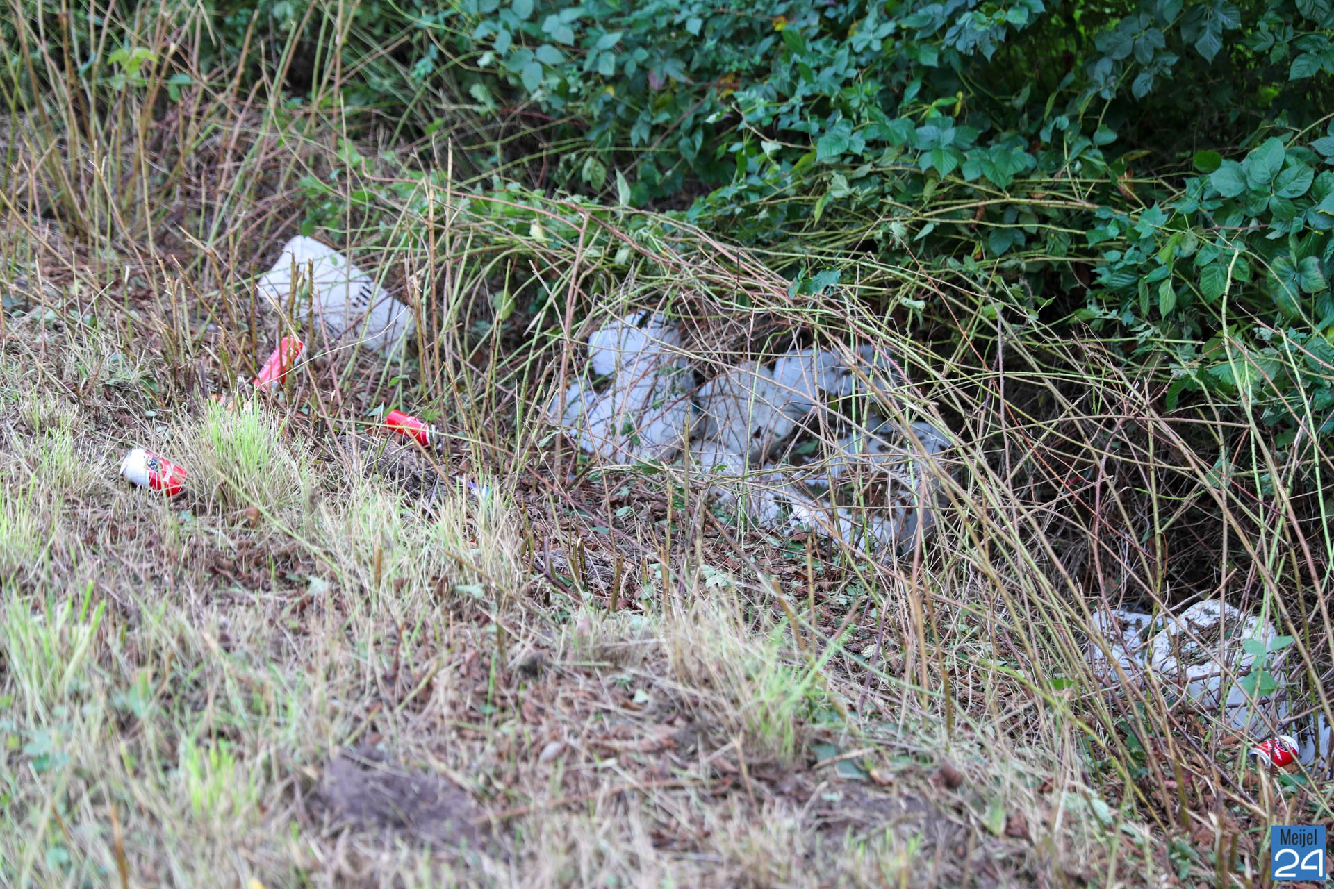 In de sloot ter hoogte van hectometerpaal 16.0 lagen ongeveer 20 lege jerrycans. Politie, brandweer en de gemeente zijn opgeroepen omdat het in eerste instantie leek te gaan om een dumping van drugsafval.