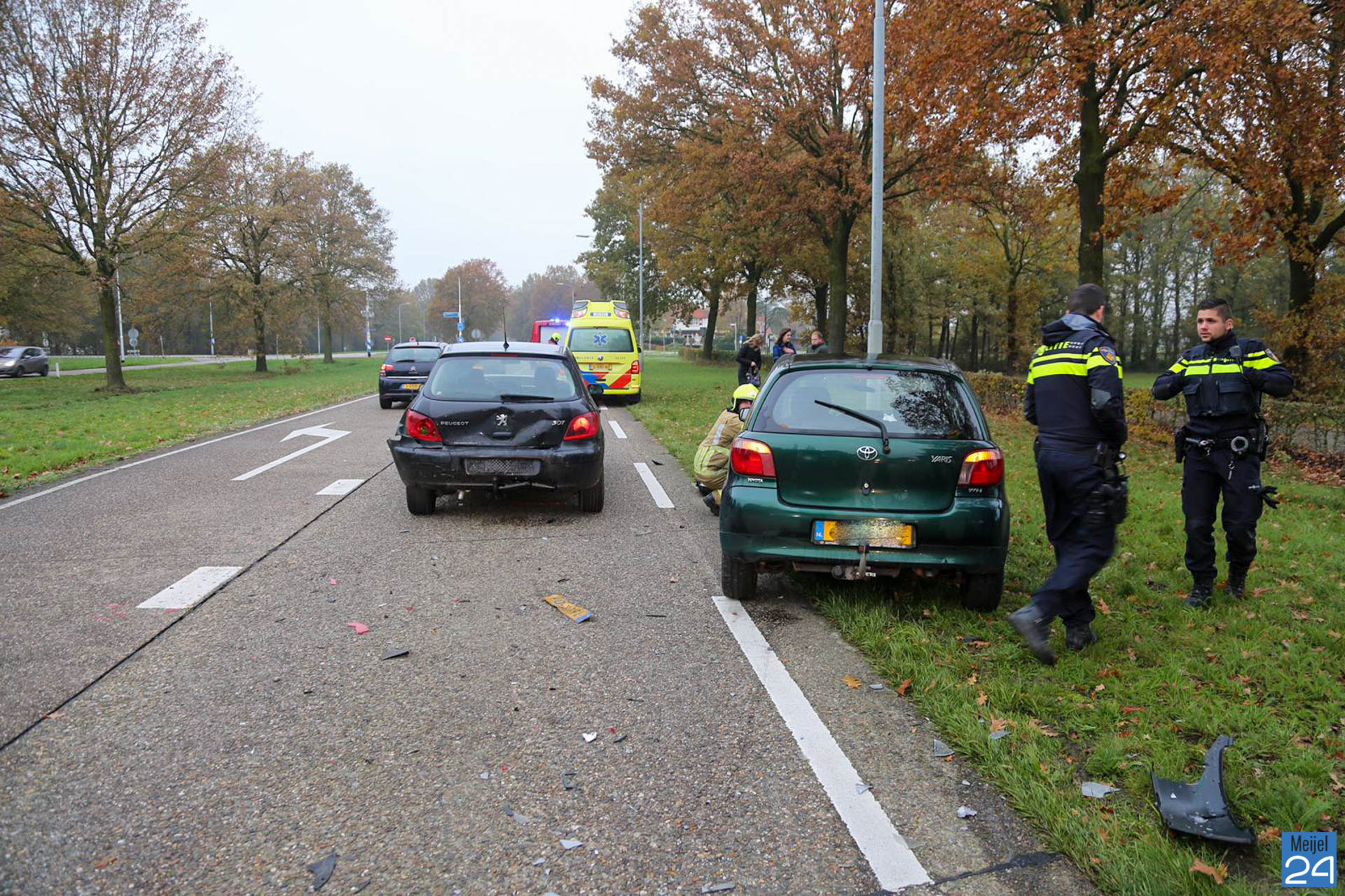 Op de N279 nét voor de kruising met de Buizerdweg en de Meijelsweweg, raakten drie voertuigen met elkaar in botsing. In totaal waren drie personenauto’s bij het ongeval betrokken. De vier inzittenden zijn nagekeken door het ambulancepersoneel maar niemand raakte gewond.