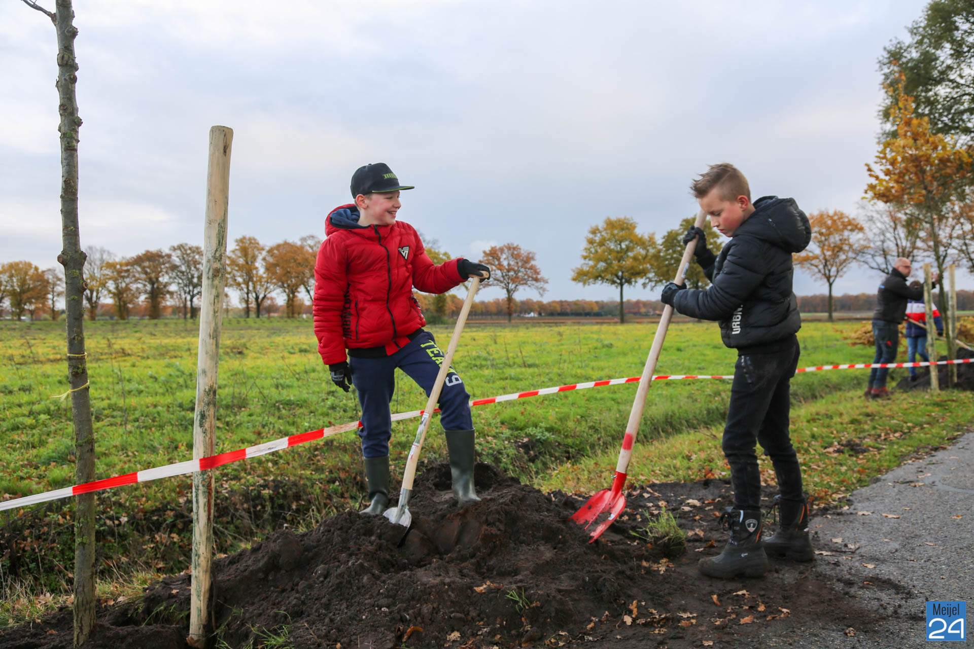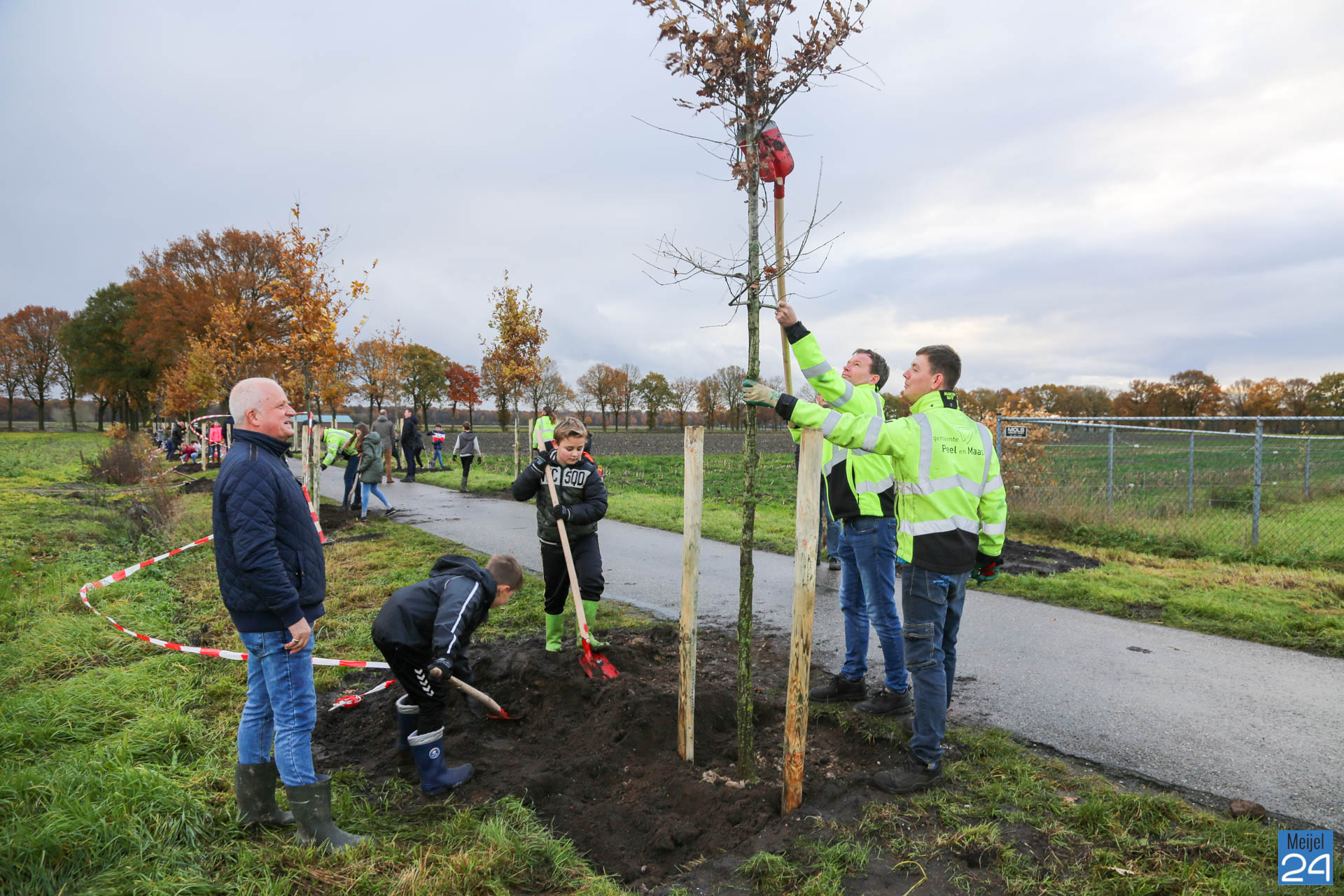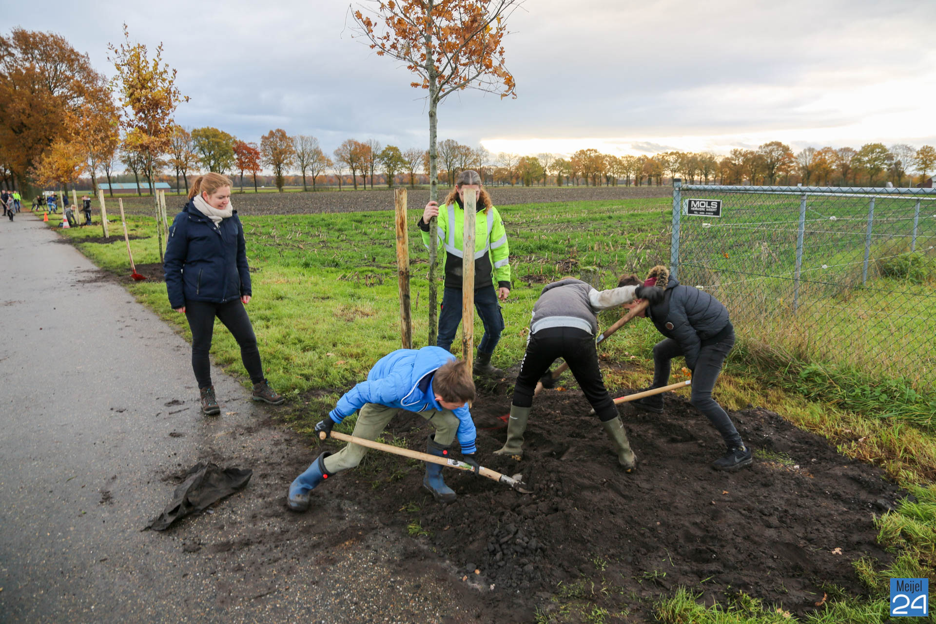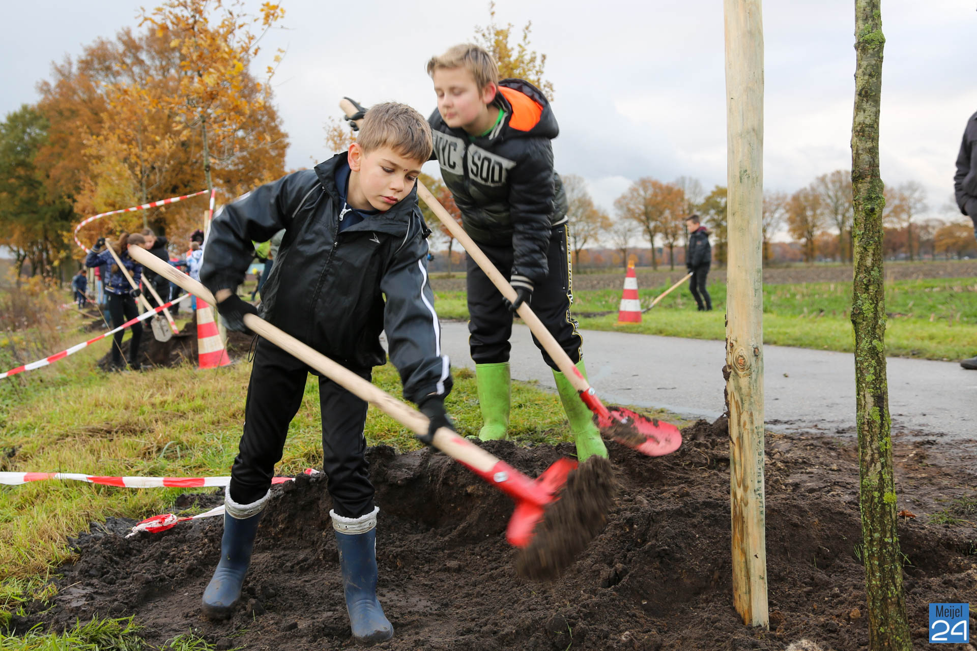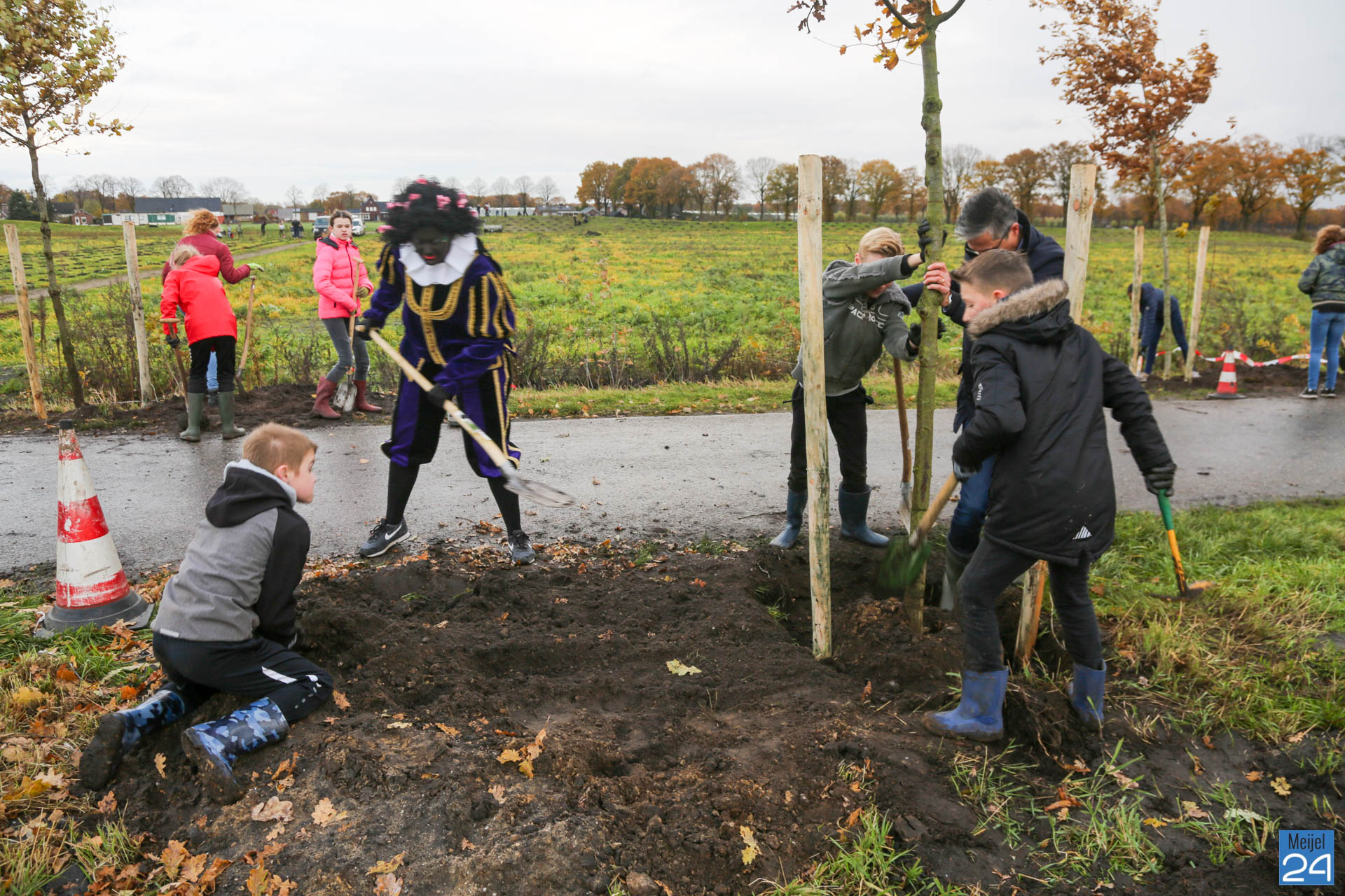 Woensdagochtend vond op het terrein van De Hoek in Meijel een ‘boomplantdag’ plaats. Ongeveer 75 leerlingen van Basisschool Den Doelhof in Meijel gingen vol enthousiasme aan de slag om ongeveer 44 bomen en ruim 1600 planten in het bosplantsoen te planten. De dag ging om 9.30 uur van start met een openingswoordje van Wethouder Wanten. Twee zwarte pieten zorgden ervoor dat alle aanwezigen werden voorzien van een lekker drankje en een stukje vlaai.