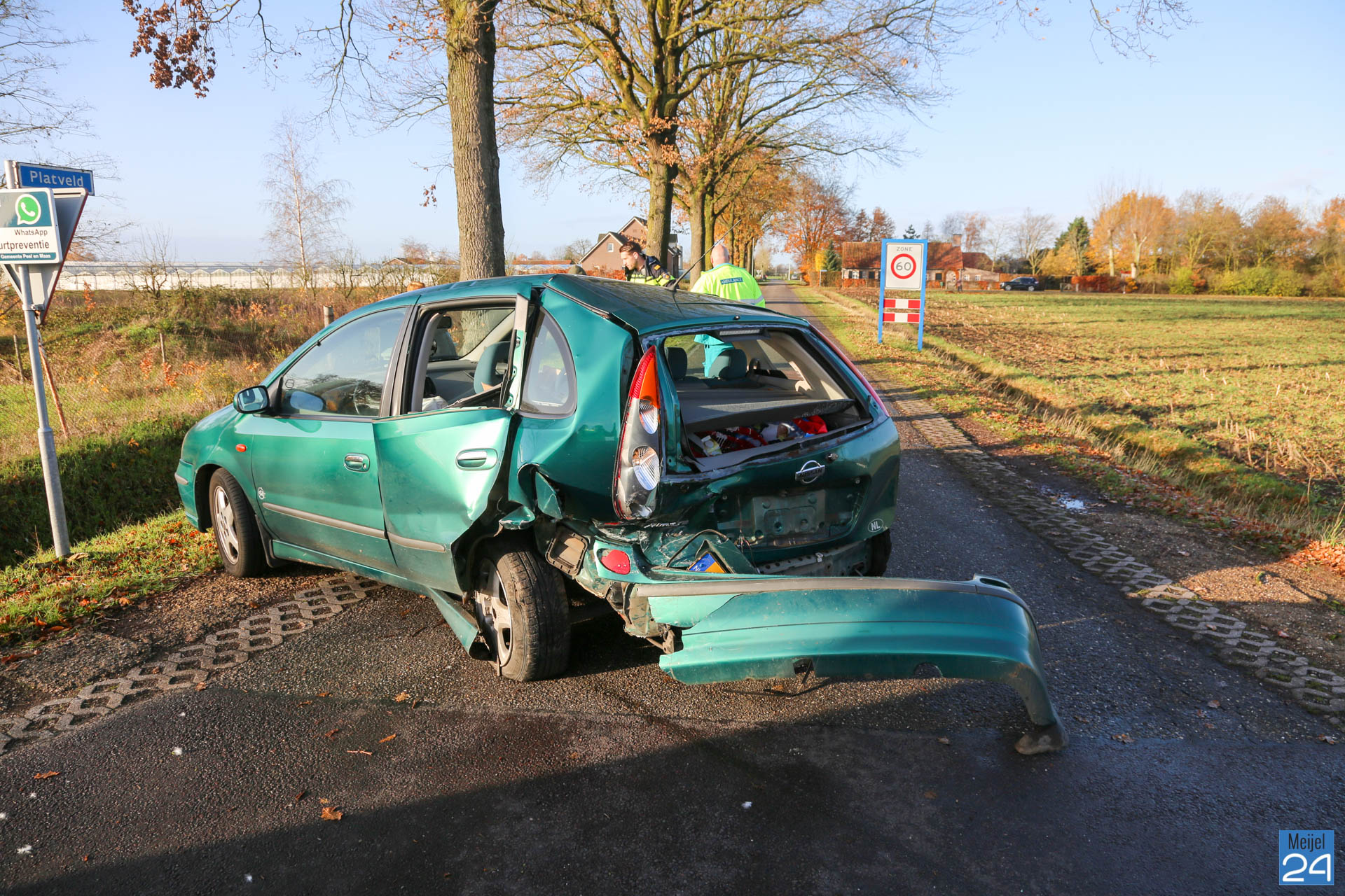 Het ongeval gebeurde op de Roggelsedijk tussen de rotonde met de N275 en Meijel, ter hoogte van Platveld in Meijel. Daar stond een automobiliste stil om af te draaien. De bestuurder van een achteropkomende auto, komende vanaf Meijel, zag dit te laat en botste er hard achterop.