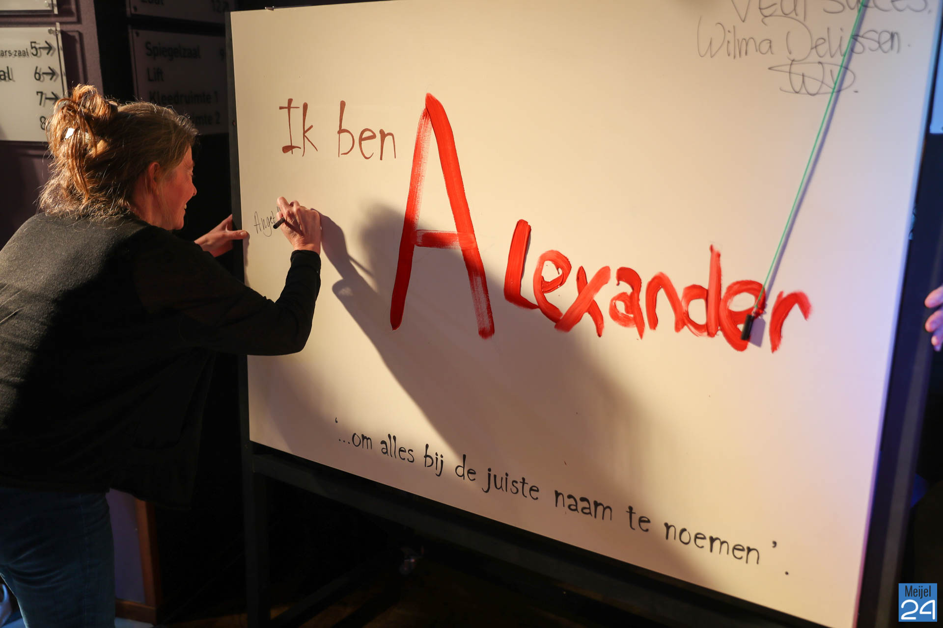 Zaterdagavond was de Kick-off van “Ik ben Alexander” en start EXPO e& Ticketverkoop bij D’n Binger in Meijel. Niemand minder dan burgemeester Delissen-van Tongerlo opende officieel de expositie door het schrijven van haar naam op het gasten-doek. Veel mensen die meedoen, zich inzetten, voor het rockfonisch drama over het leven van Chris waren aanwezig. Een verhaal dat wordt gemaakt aan de hand van het dagboek wat hij op zijn reis heeft bijgehouden.