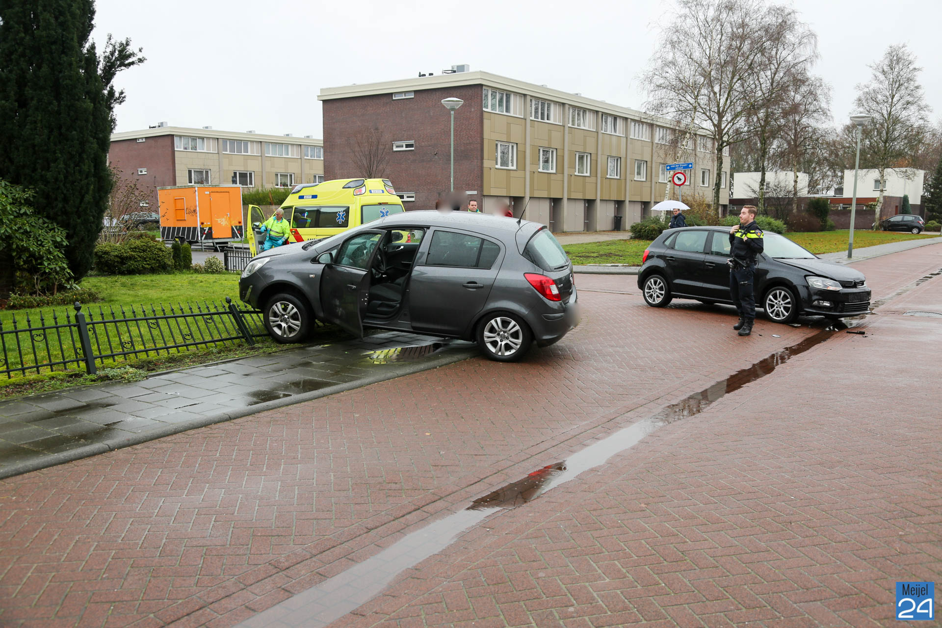 Woensdagmorgen zijn twee voertuigen met elkaar in botsing gekomen op de kruising Prins Bernhardstraat met de Van der Steenstraat in Meijel.