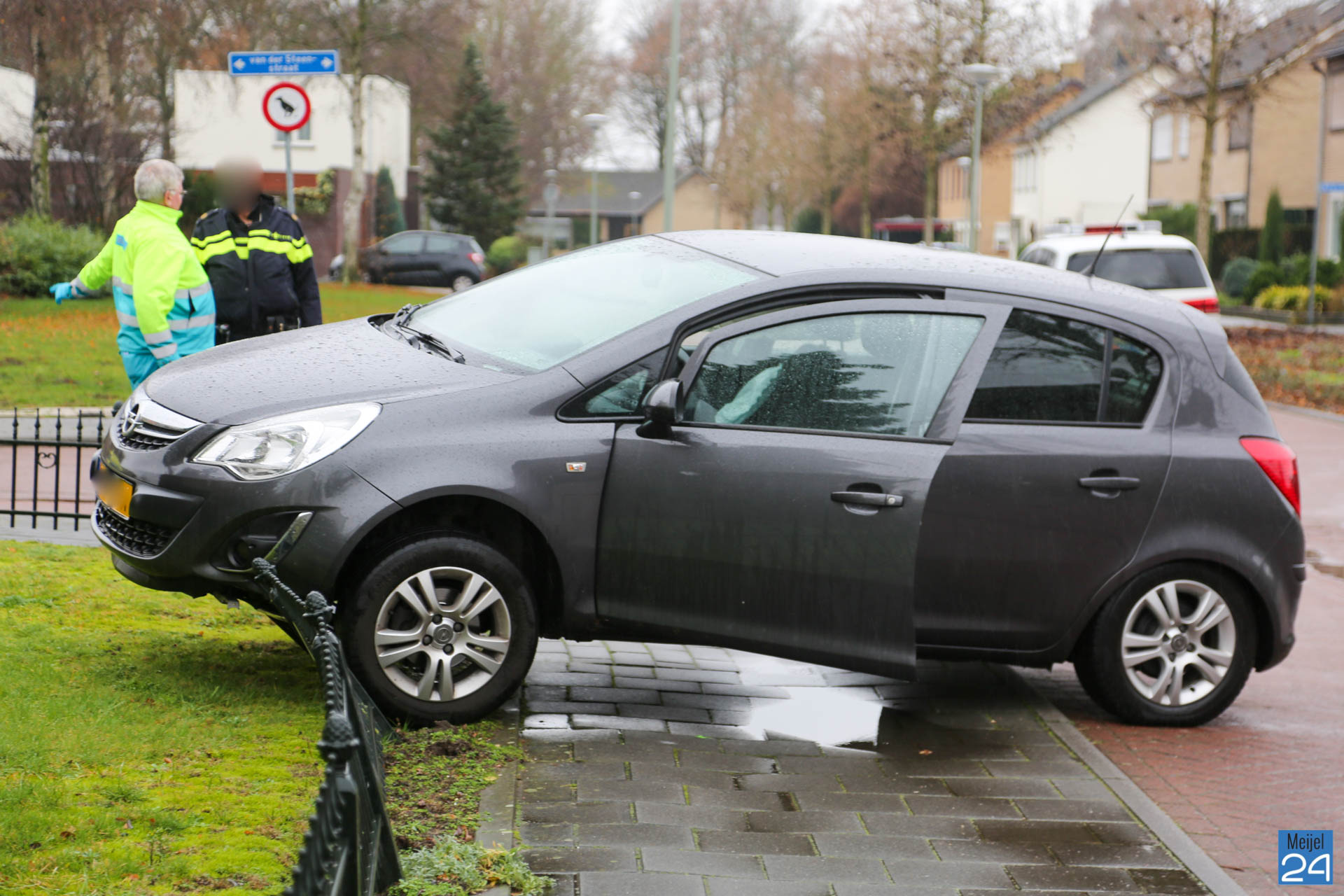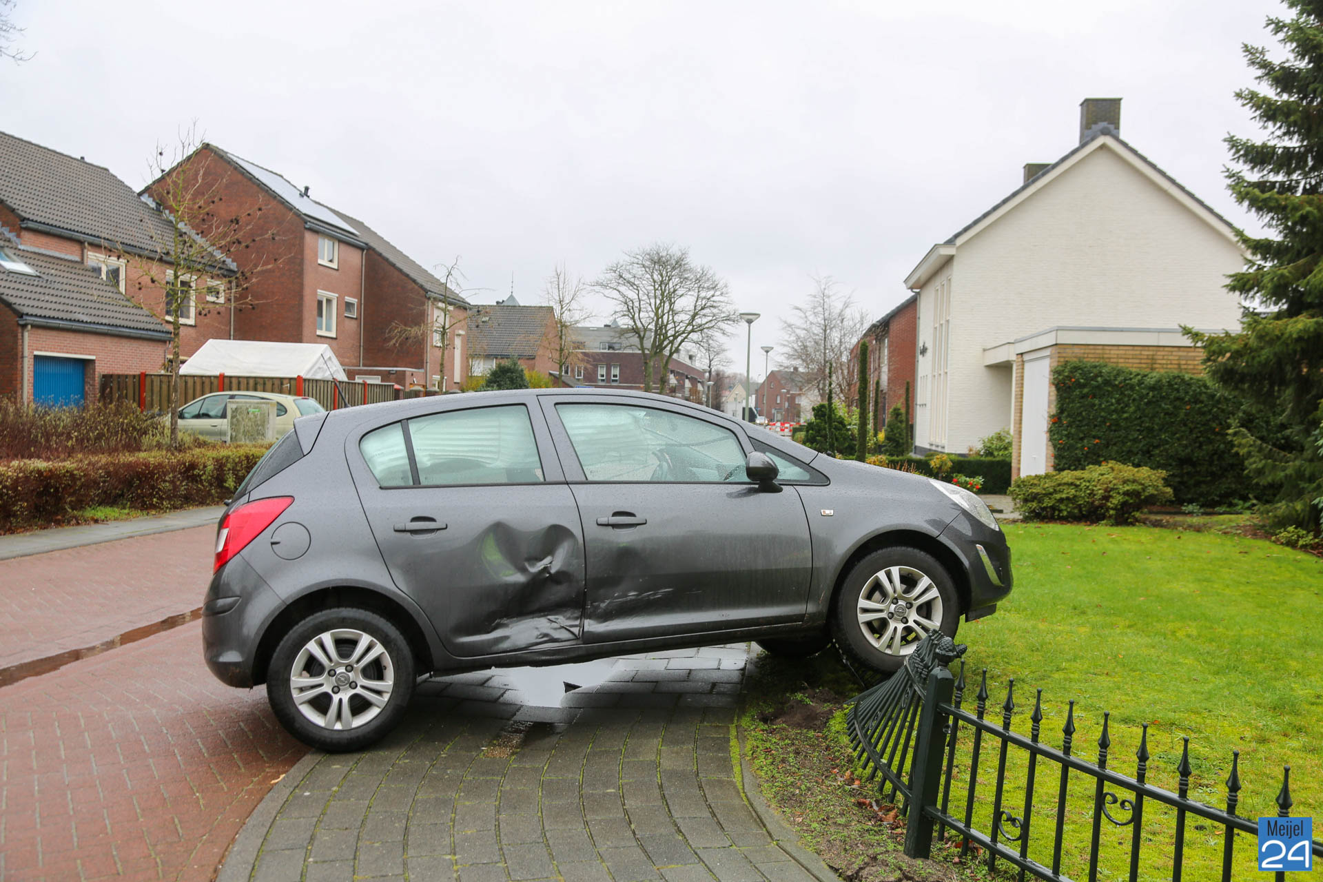 Personenauto belandt op hekwerk Prins Bernhardstraat Meijel