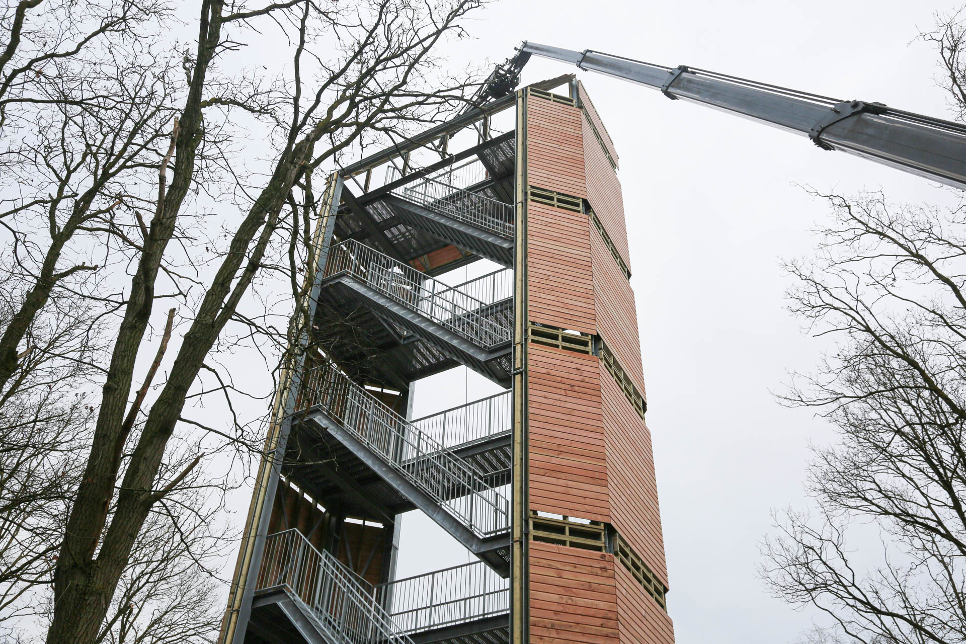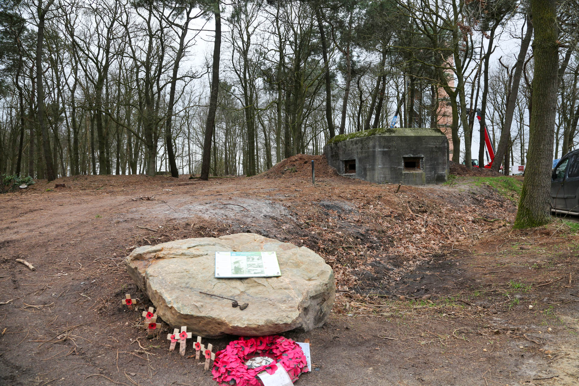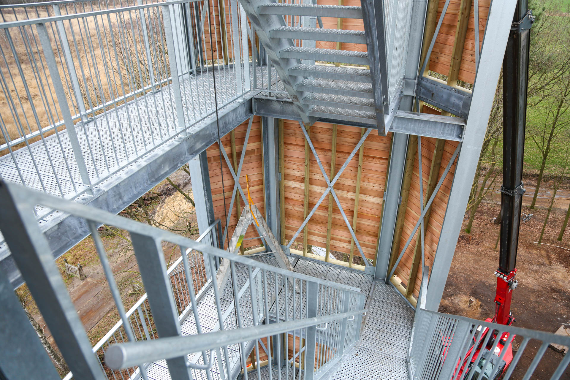 Afgelopen maandag zijn de werkzaamheden bij Belfort De Vossenberg in Meijel weer hervat. Ketelaars Laswerken heeft het bordes geplaatst en bouwbedrijf Stammen is momenteel de houten zijpanelen aan het plaatsen. Ook nu stonden enthousiaste vrijwilligers klaar om een helpende hand toe te steken. Misschien is midden volgende week, als het weer het toe laat en de wind geen spelbreker is, het Belfort te beklimmen. Wie weet!