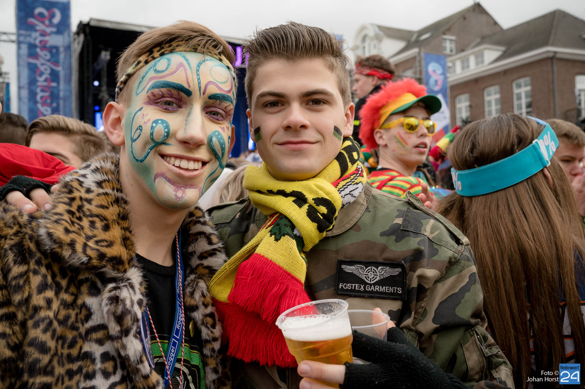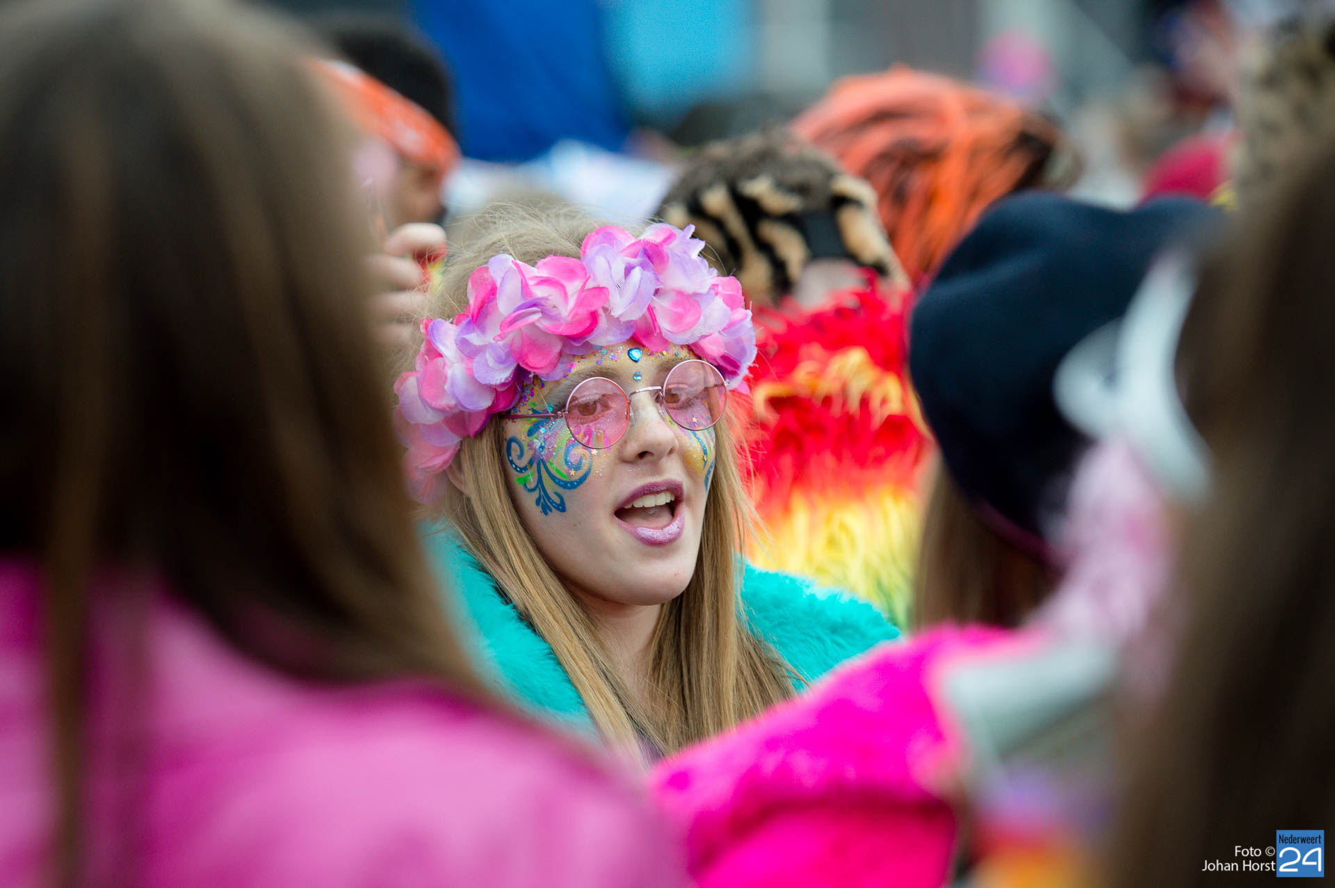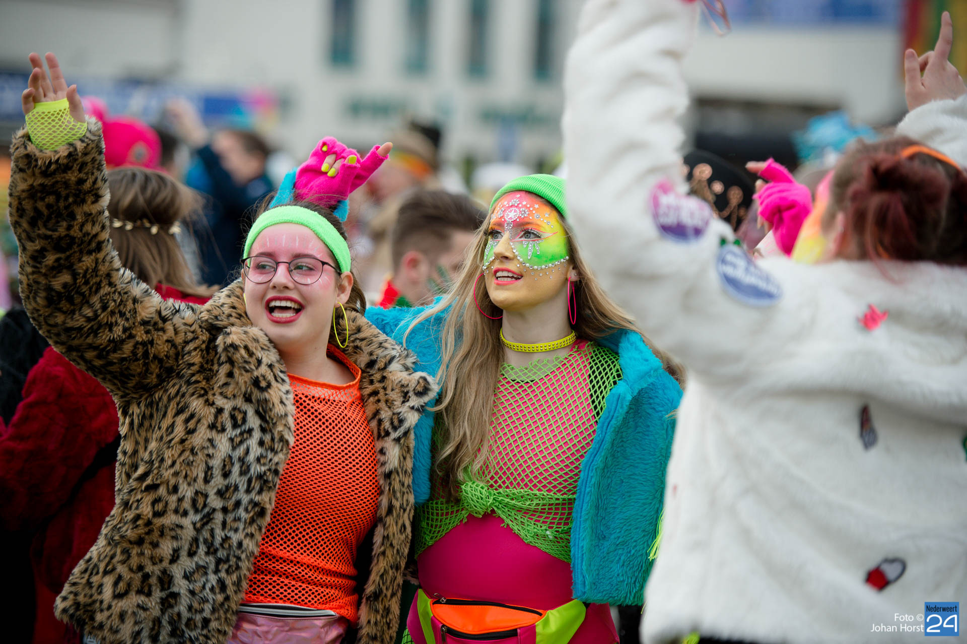 Het was al vroeg druk op het stationsplein in Roermond. De jeugd verdrong zich rond het podium om een glimp van de Limburgse vastelaovendsartiesten op te vangen. Dit werd afgewisseld met optredens van de vorsten en de nodige dansgroepen. Er is veel aandacht besteed aan de kostuums én het schminkwerk zag er prachtig uit. Morgen vindt de jaarlijkse Sjtasiefestasie plaats.