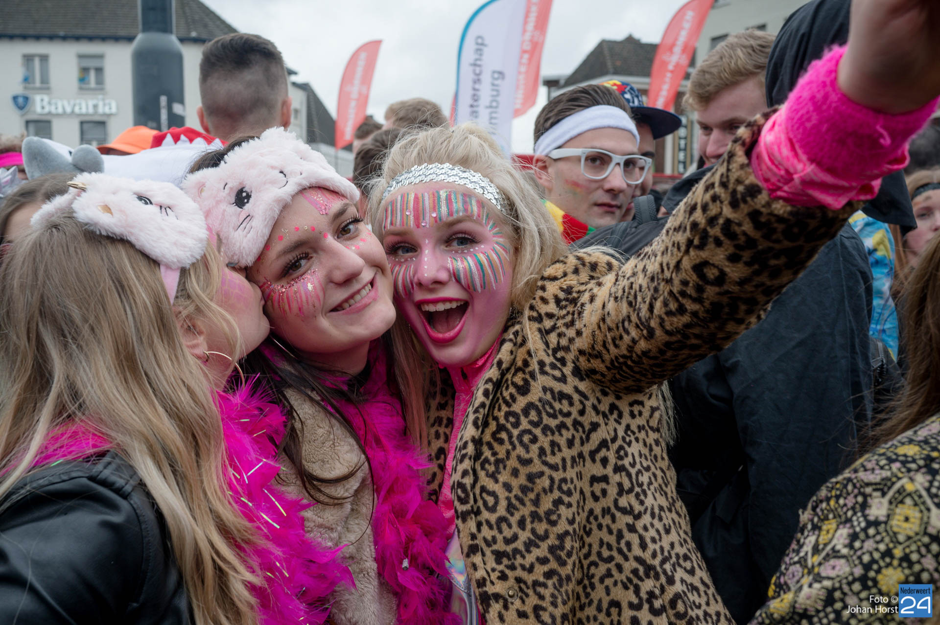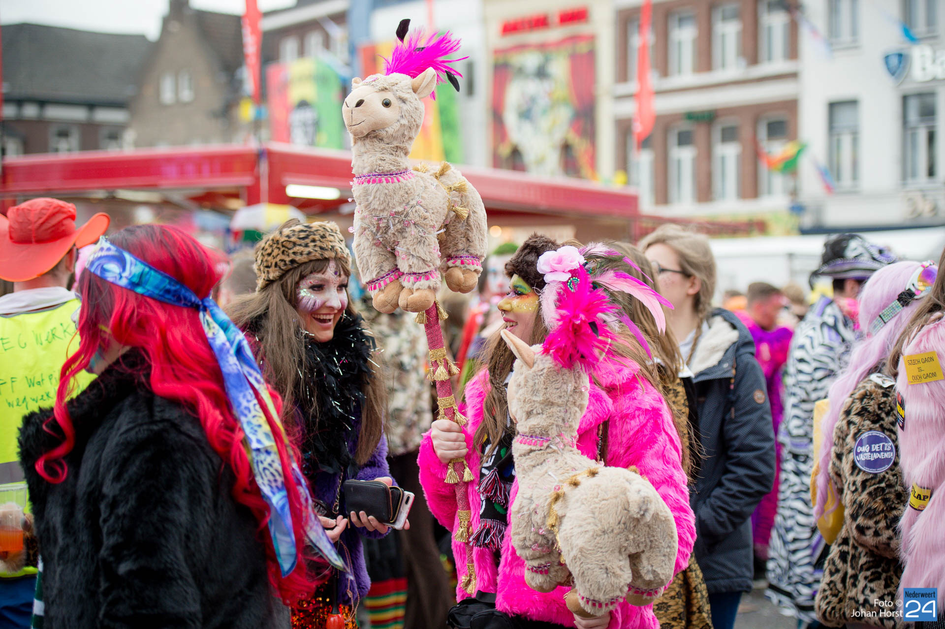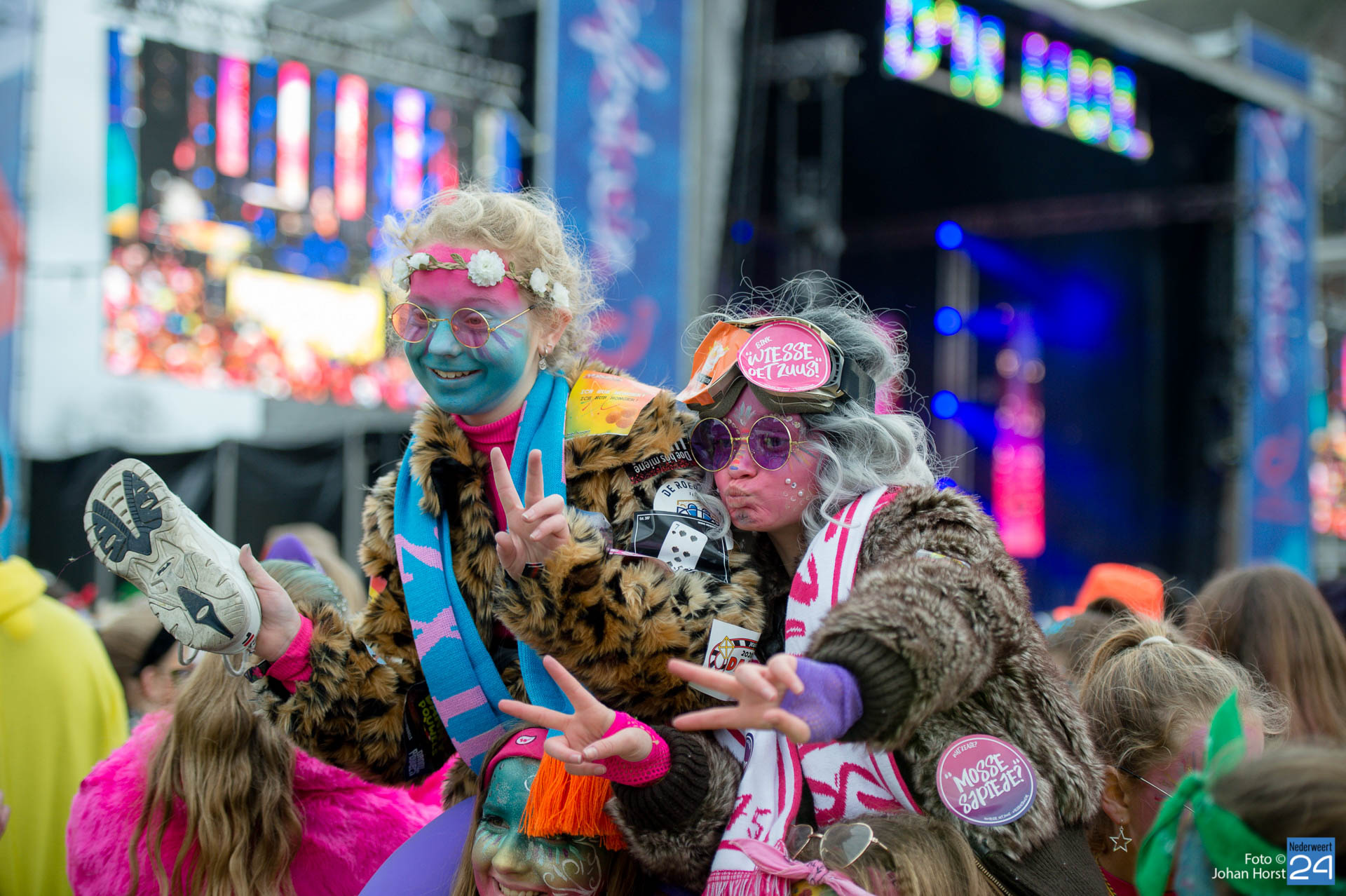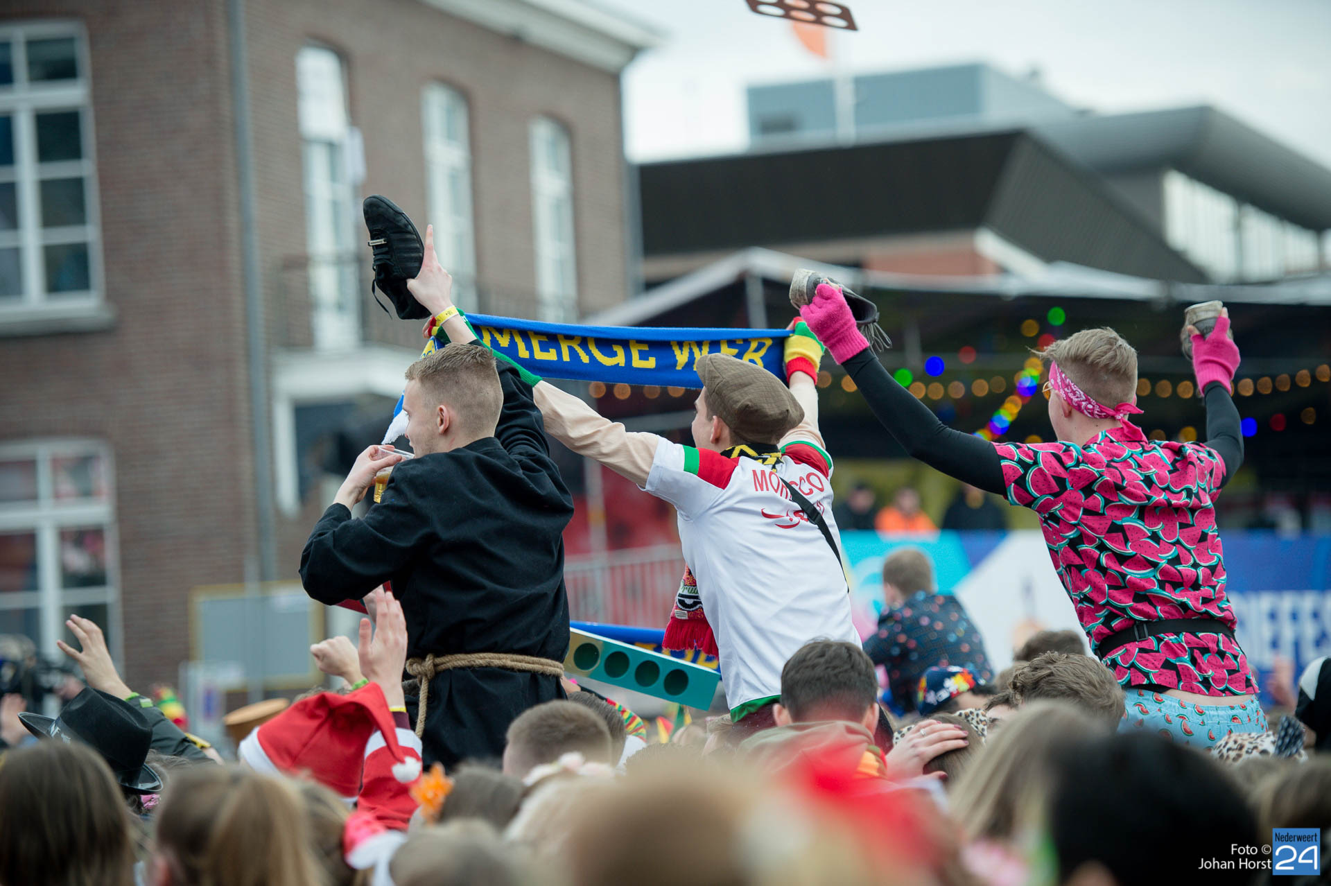 Het was al vroeg druk op het stationsplein in Roermond. De jeugd verdrong zich rond het podium om een glimp van de Limburgse vastelaovendsartiesten op te vangen. Dit werd afgewisseld met optredens van de vorsten en de nodige dansgroepen. Er is veel aandacht besteed aan de kostuums én het schminkwerk zag er prachtig uit. Morgen vindt de jaarlijkse Sjtasiefestasie plaats.