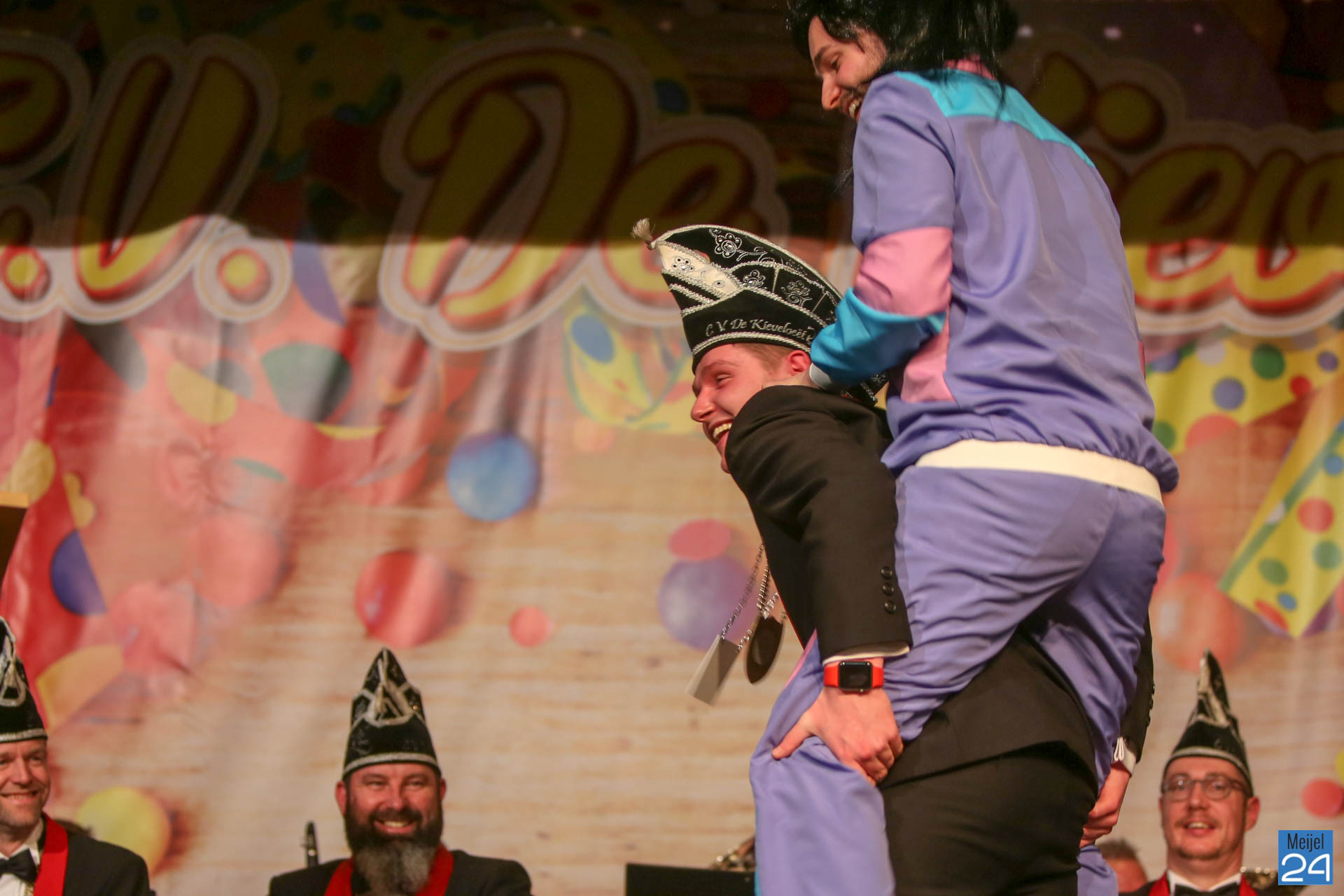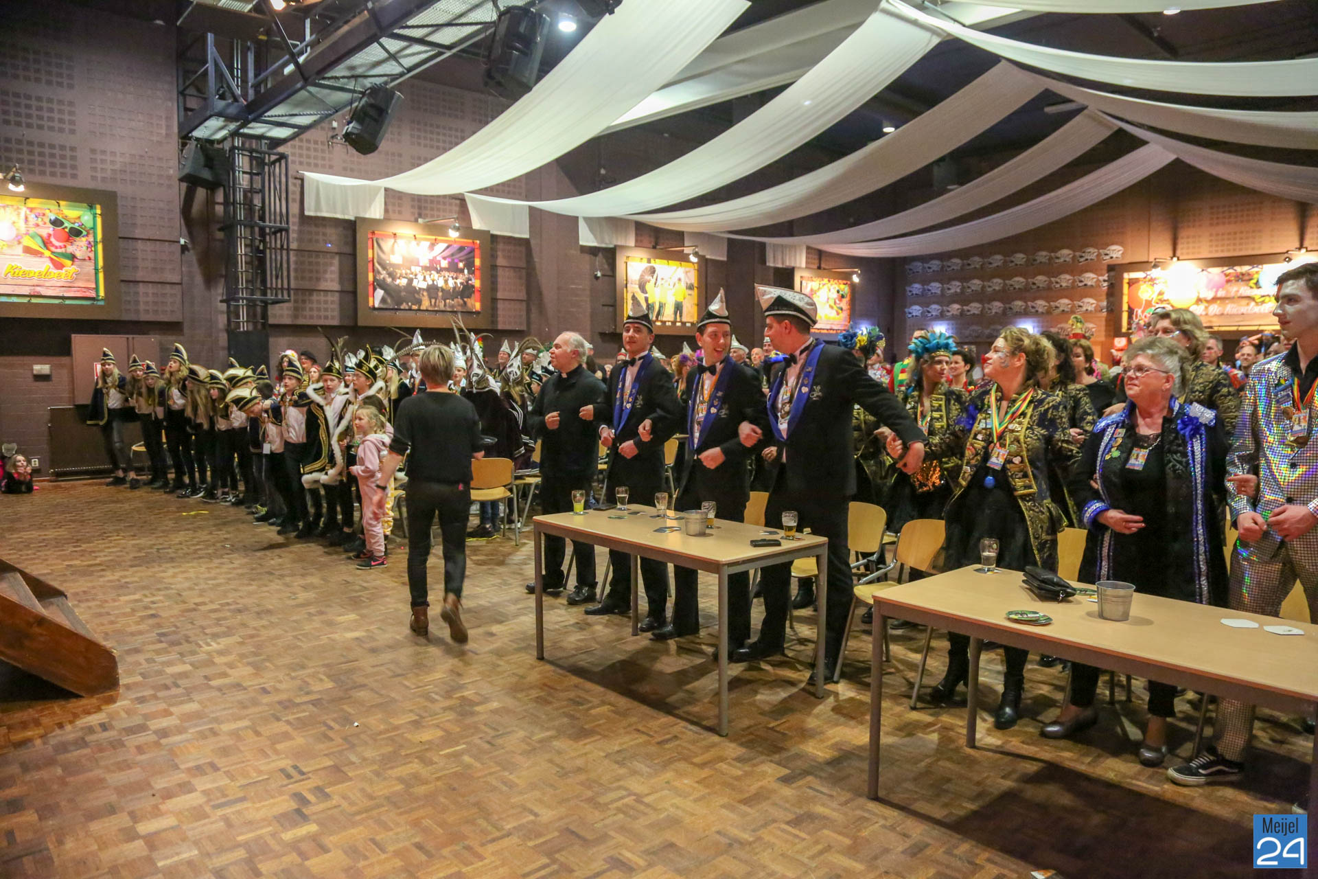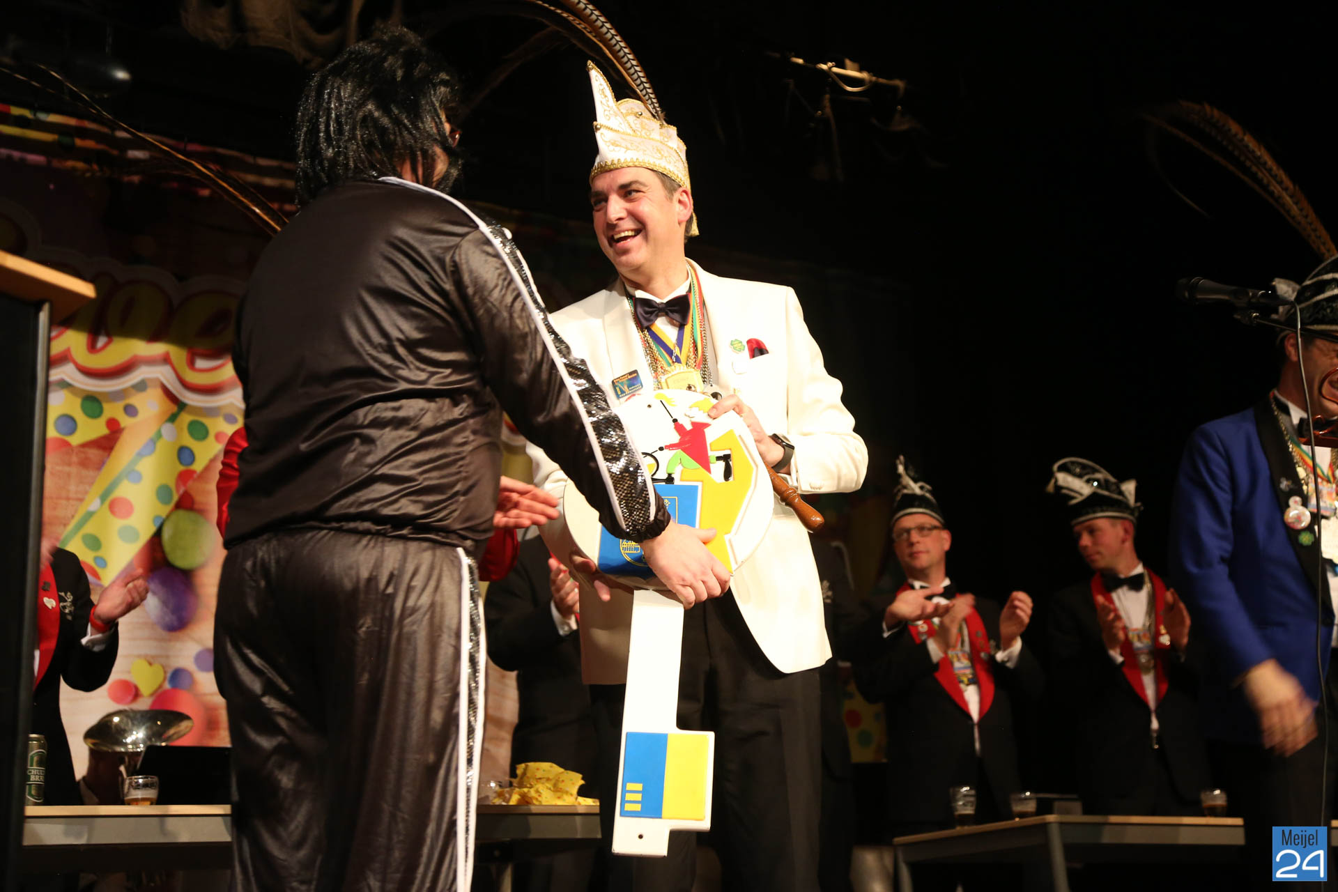 Meijelse gemeenteraadsleden Frits Berben, Teun Heldens en Sandy Janssen waren hierbij aanwezig. Ook kernwethouder, oftewel ‘Opper Opper Kieveloeëternoaber’, Paul Sanders was van de partij. Verschillende actuele onderwerpen kwamen aan bod. Ook maakte Prins Pascal I zijn plannen bekend. Hij wil onder andere een Oud Limburg Vastelaoves Festival (OLV) organiseren in Meijel. Ook wil hij aan de Heldensedijk een frikandellen-fabriek opstarten. De eerste frikandellen van ‘Happers van Stappers’ werden aan de raadsleden en wethouder uitgereikt. Ook het publiek in de zaal mocht proeven.