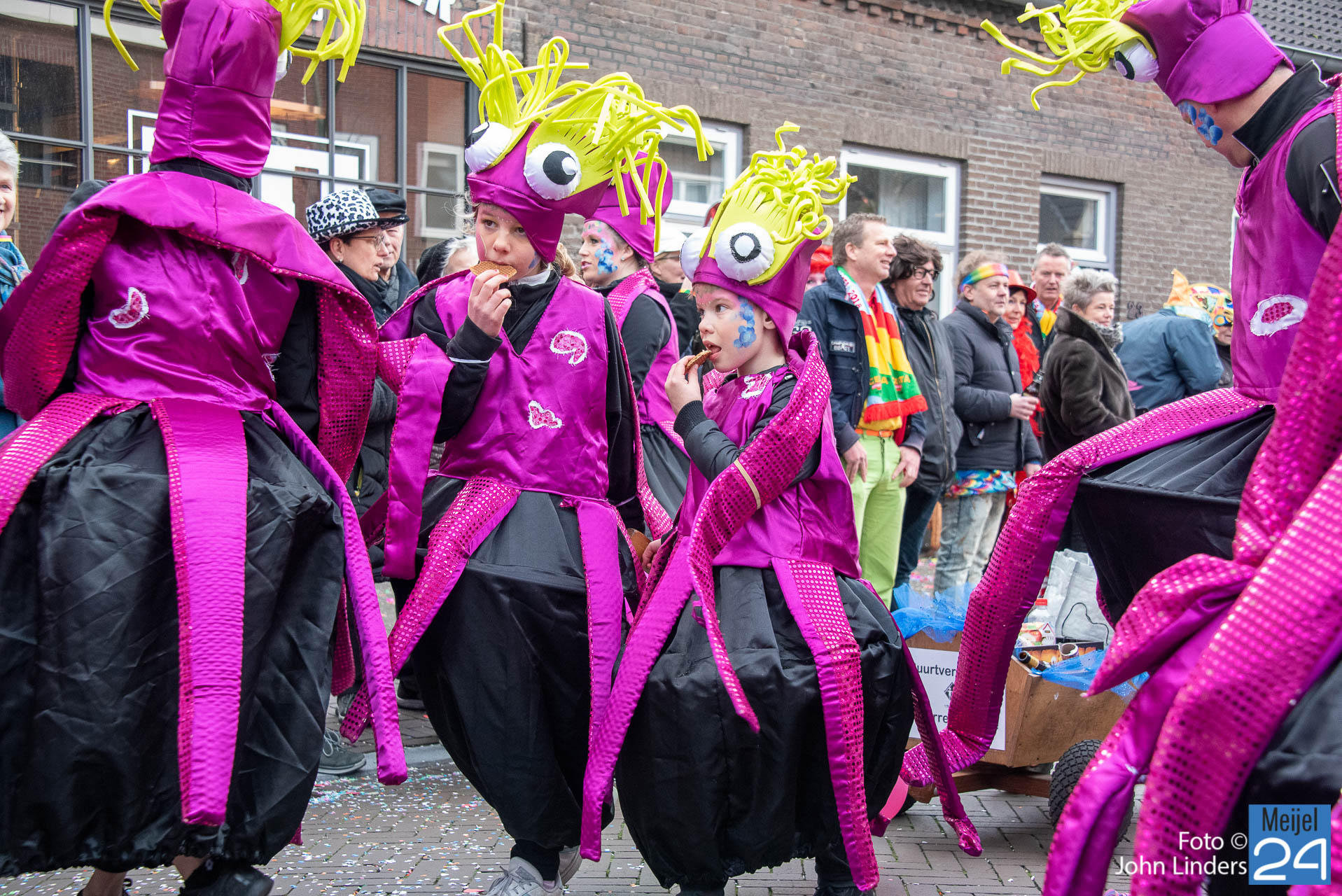 Dinsdagmiddag trok de bonte stoet van “De Kieveloeët” door de straten van Meijel. Ook dit jaar was er weer veel jeugd onder de deelnemers.