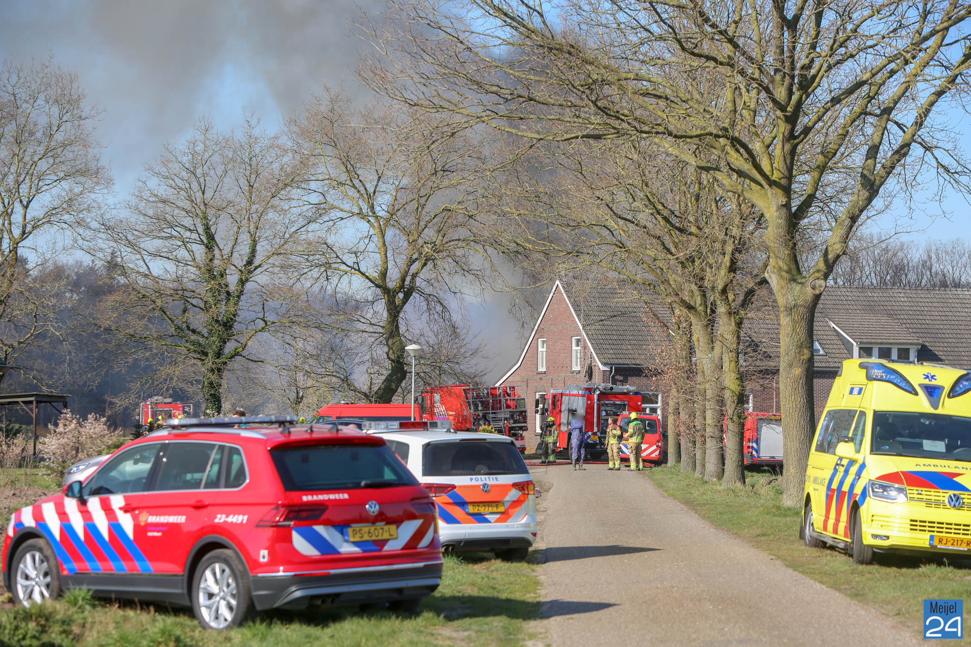 Er is geen asbest vrijgekomen bij de brand. De rook trekt laag over de grond richting Roggel. Daar zijn twee meetploegen aanwezig.