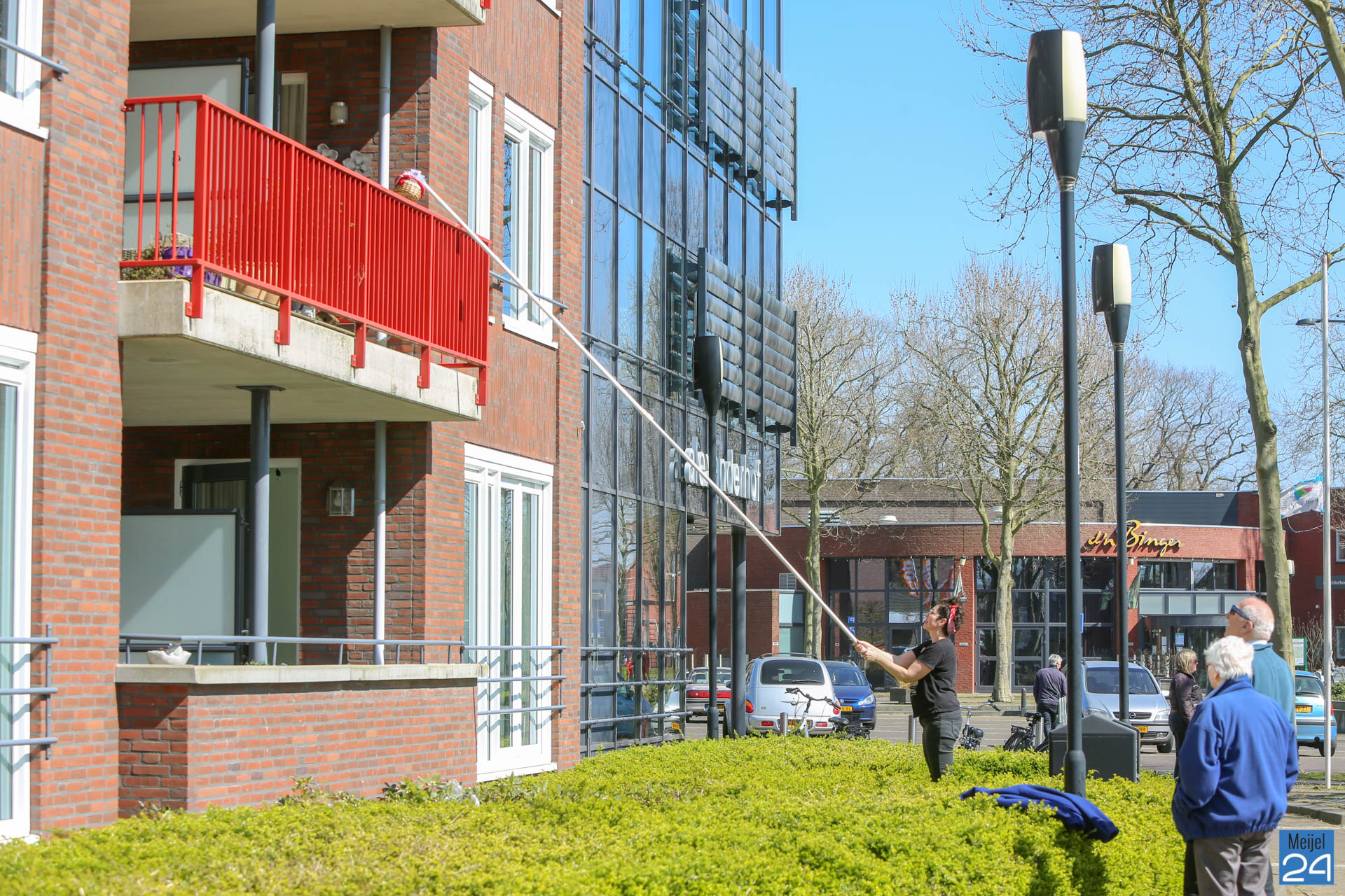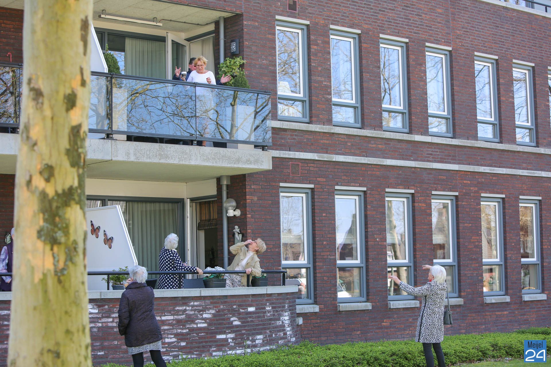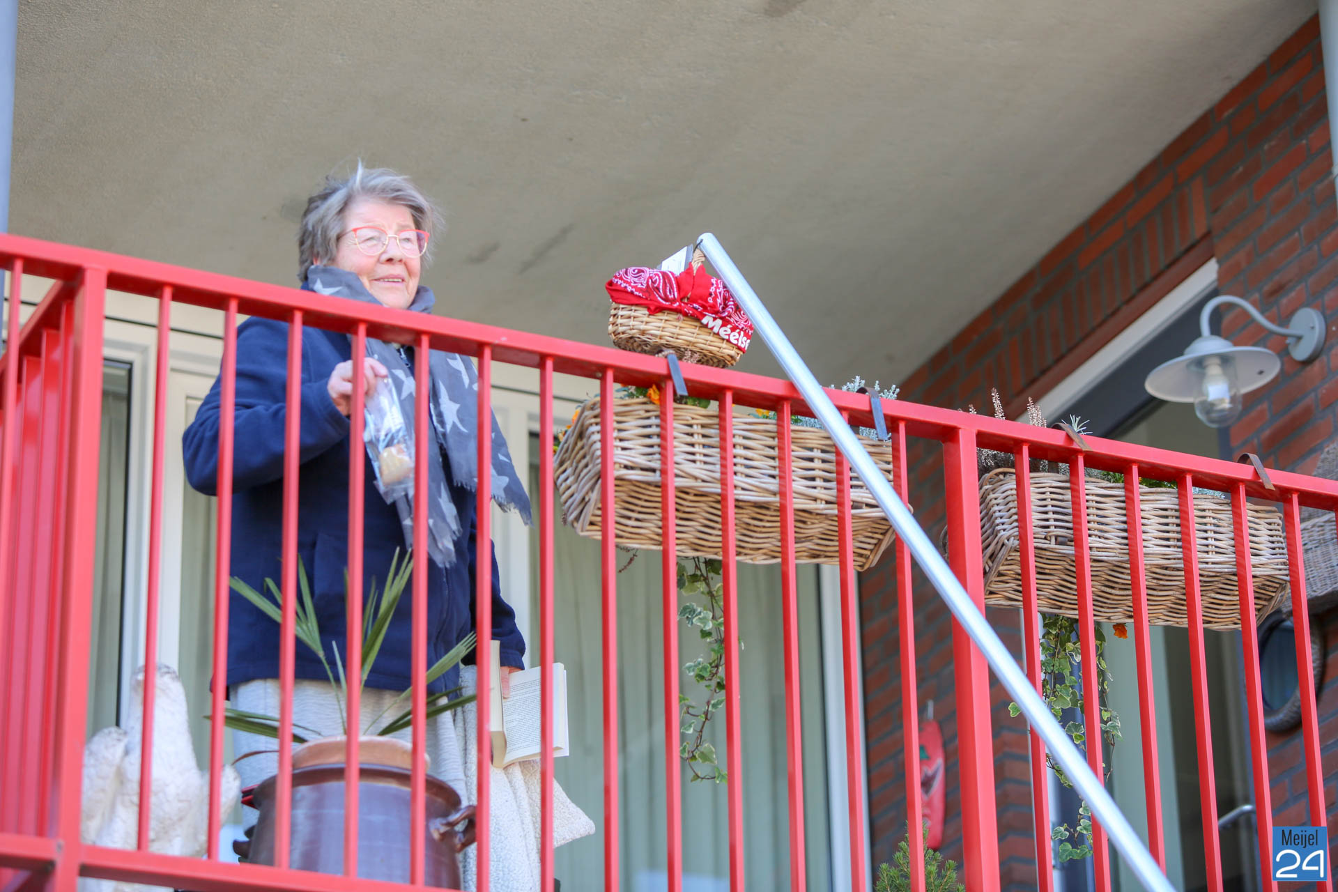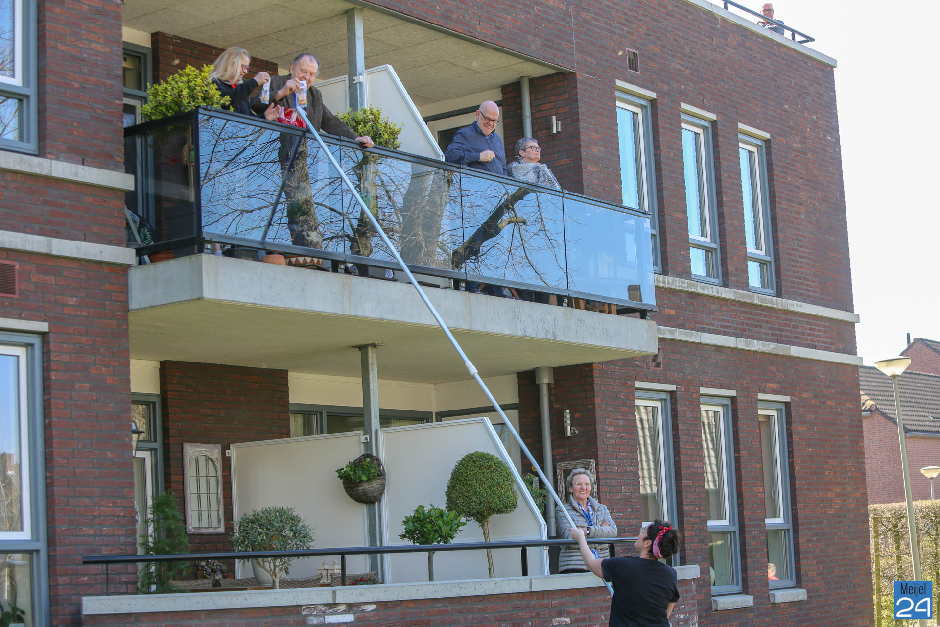 Riny Cortenbach gaf een unieke balkonserenade aan de bewoners van het Alexanderhof en het Raodhusj. Hij maakte tussen de twee gebouwen muziek. Onder een stralend zonnetje konden de bewoners genieten van de fijne muziek van Riny. Ondertussen zorgden de dames van Oppe Koffie voor een eigengebakken koekje. Met een lange stok met daaraan vast een mandje, werden de koekjes afgeleverd bij de mensen op het balkon.