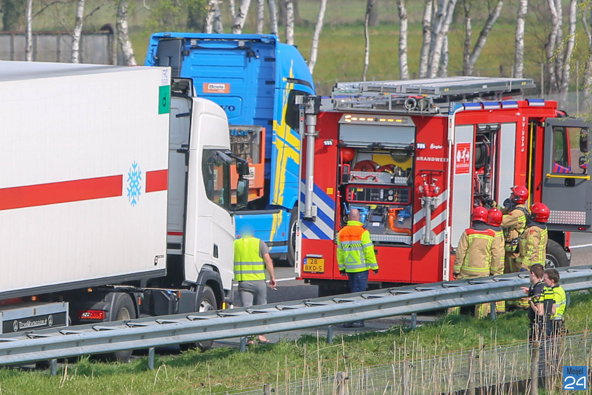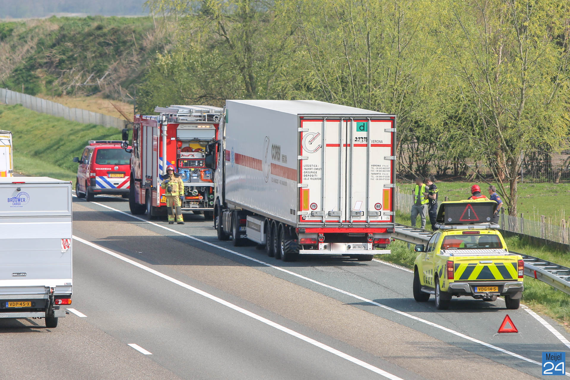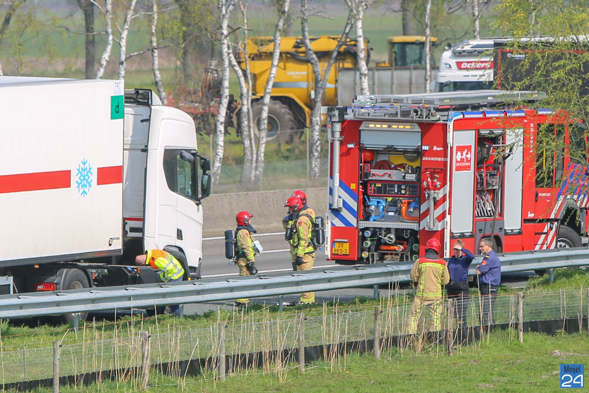 Dinsdagmiddag heeft een vrachtwagen vlam gevat op de A67 bij Grashoek.