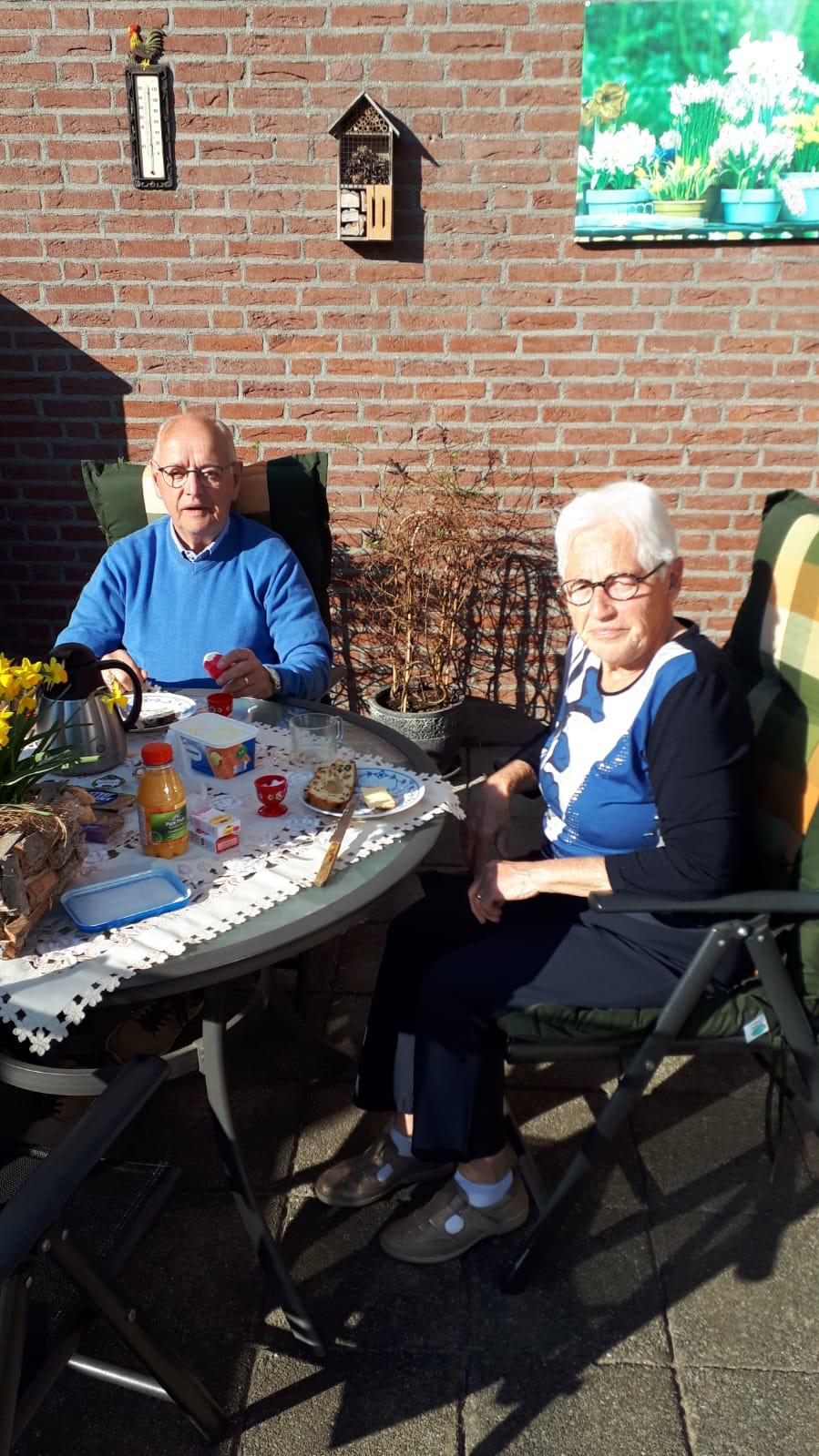”In een tijd waar we weinig of geen contact met elkaar kunnen hebben en vele activiteiten niet door kunnen gaan willen we toch “samen” zijn met Pasen,” verteld Twan de Bruin. Het ontbijt werd door het bestuur verzorgd en werd aan huis bezorgd.