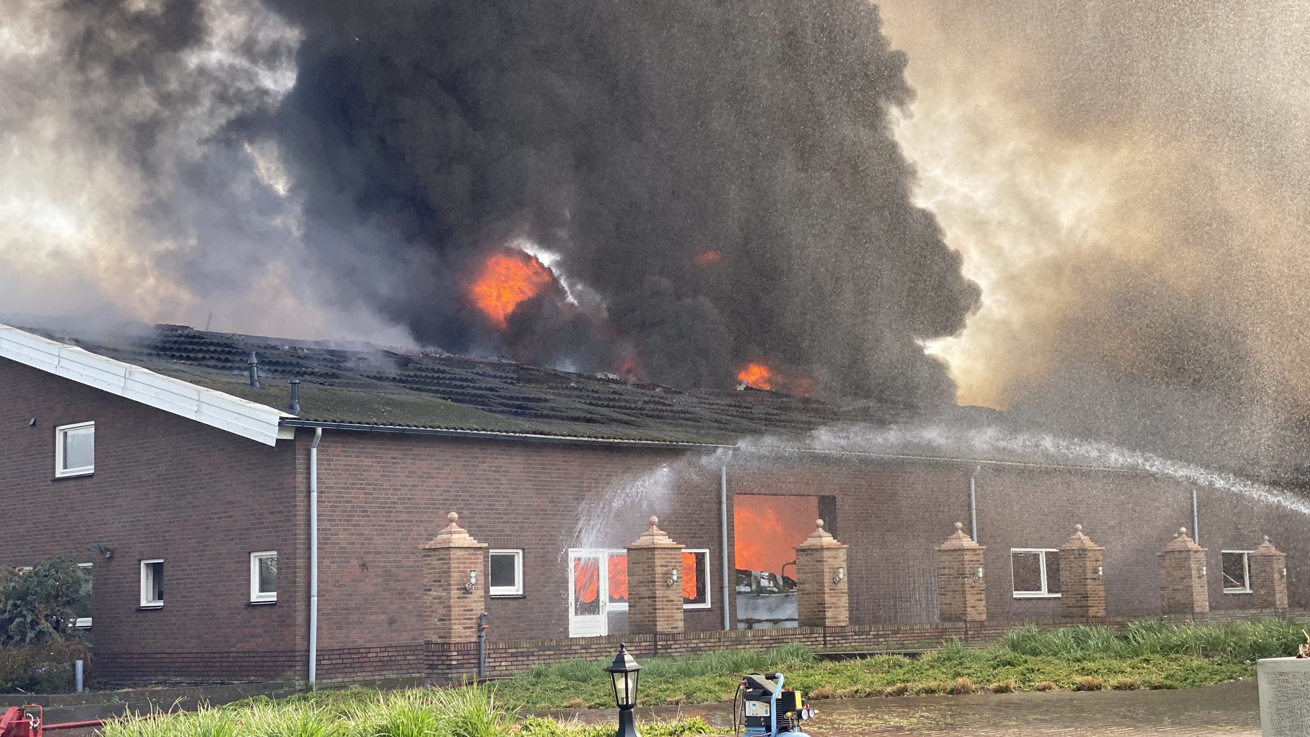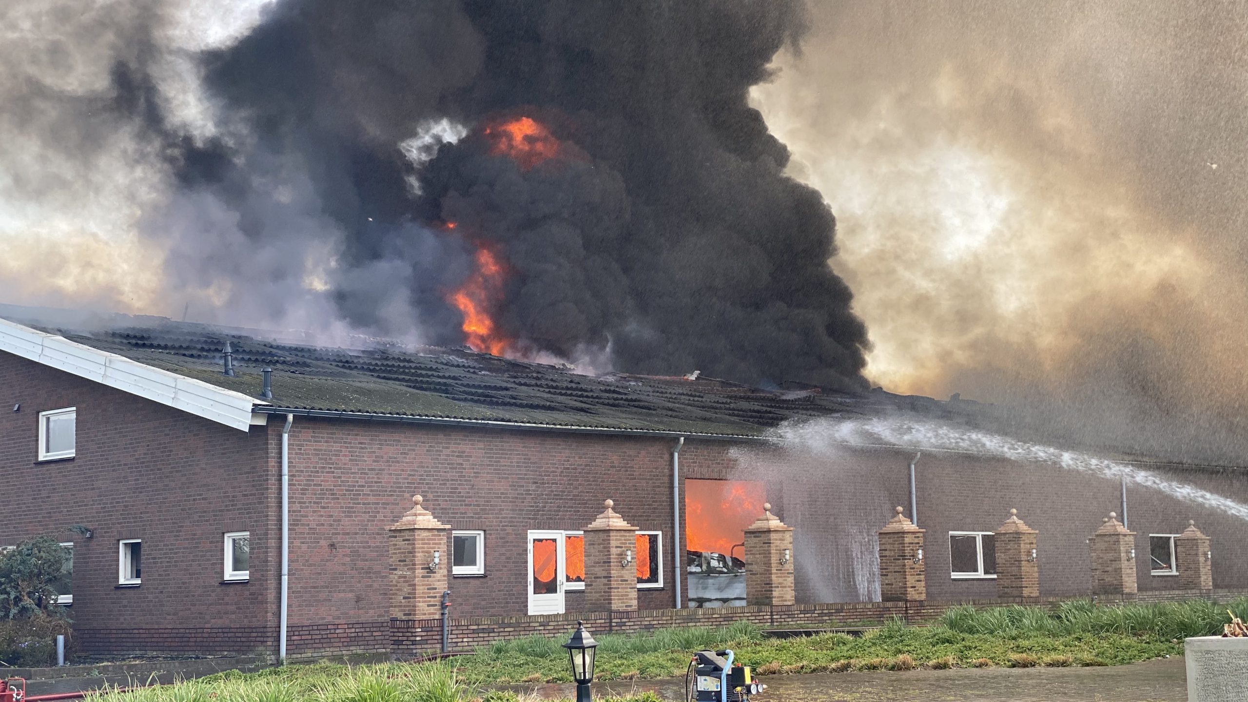 Donderdagmiddag heeft er een enorme brand gewoed in drie leegstaande kippenstallen aan de Hollander in Heythuysen.