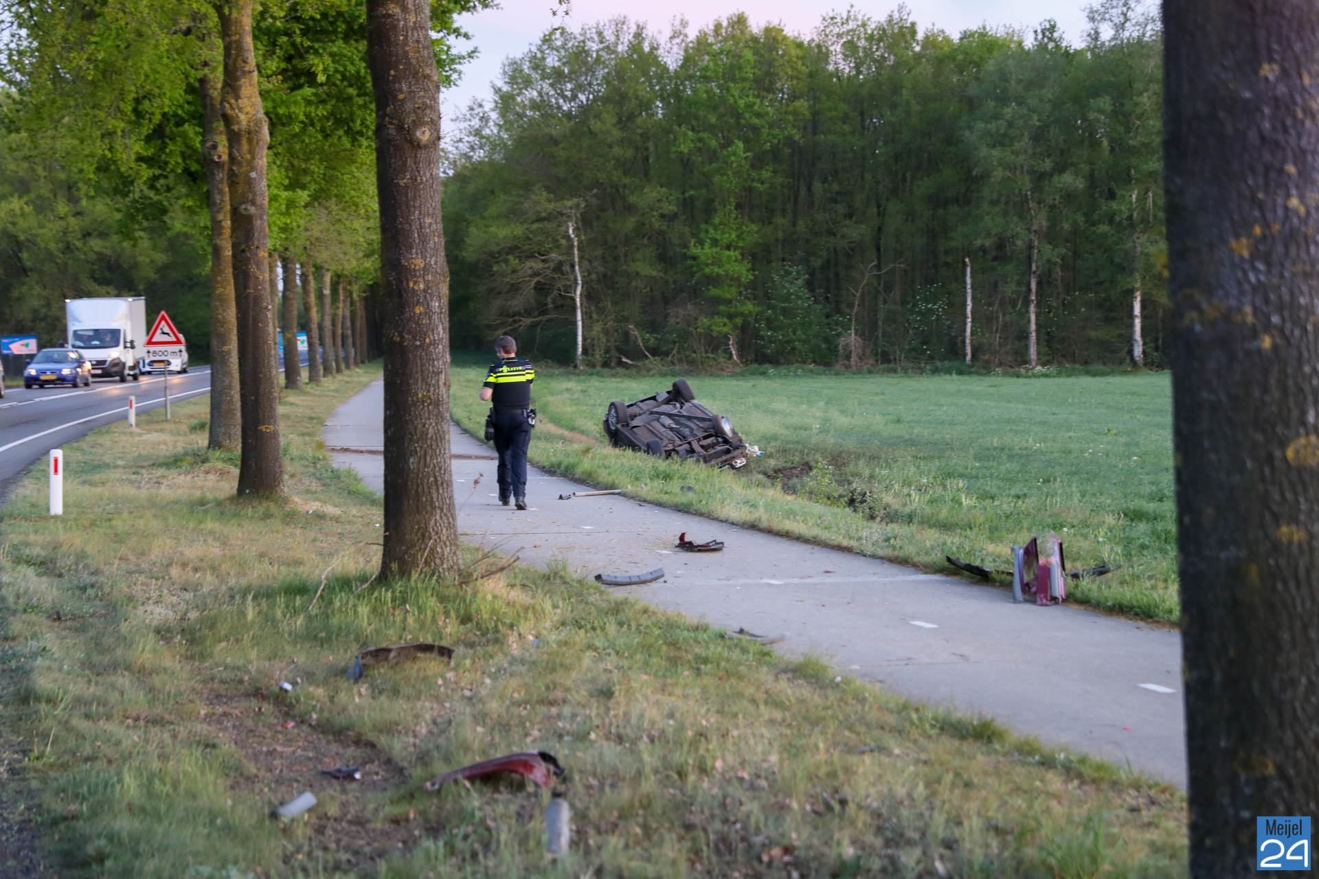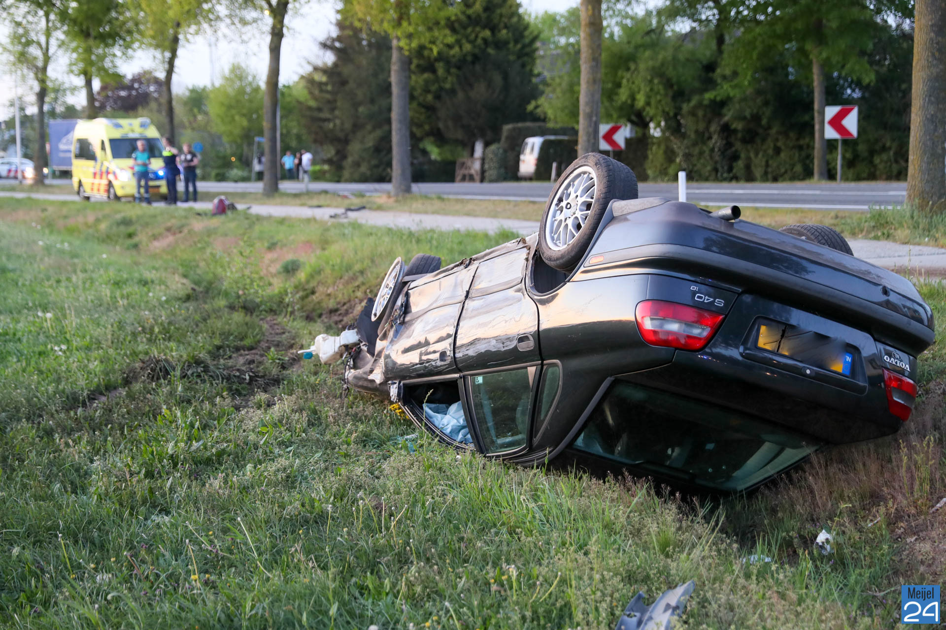 Donderdagavond is een auto in botsing gekomen met een vrachtwagentje, over de kop geslagen en daarna op de kop in de sloot naast de weg tot stilstand gekomen.