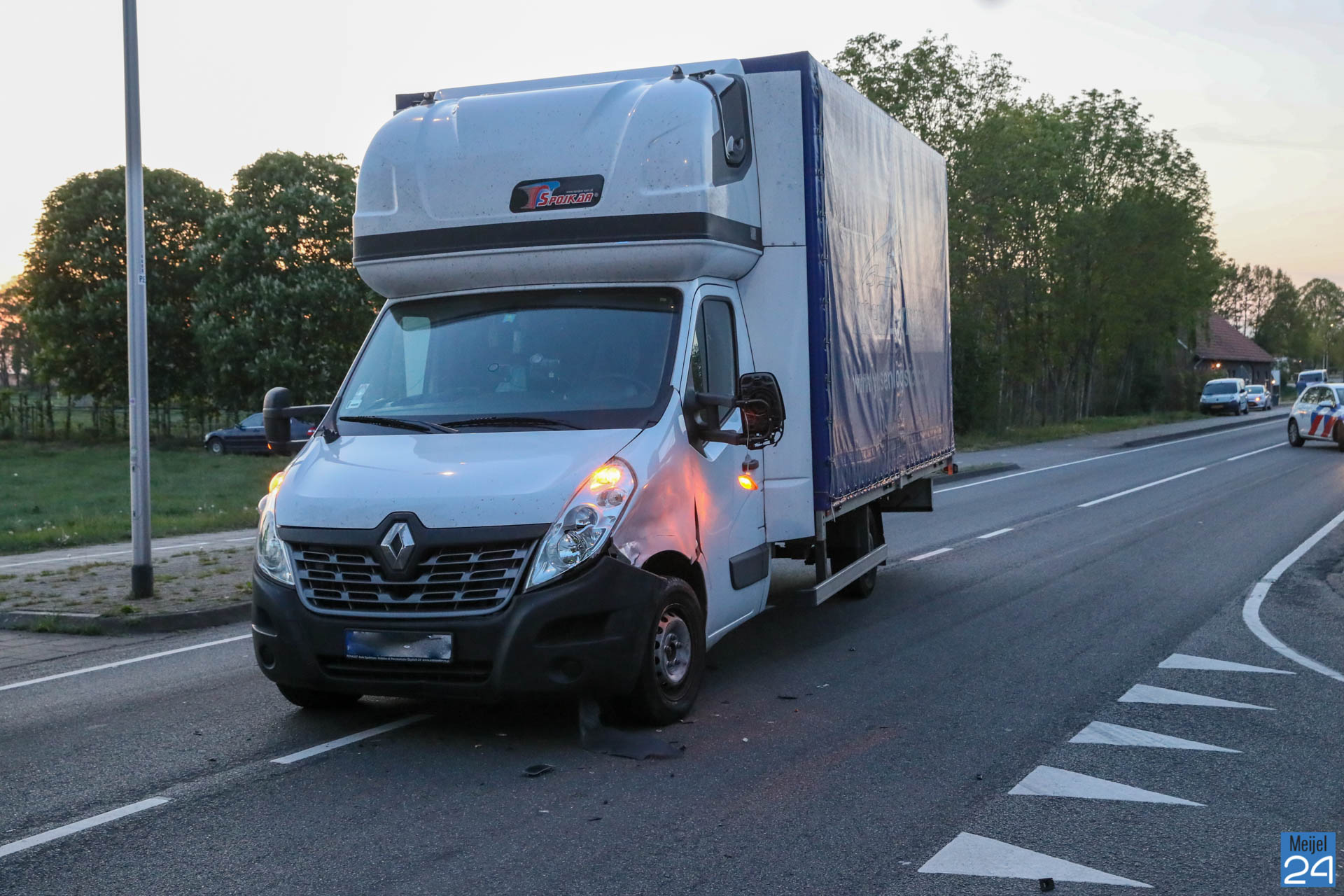De auto en de het vrachtwagentje reden vanuit Meijel richting Roggel. Door nog onbekende oorzaak hebben beide voertuigen elkaar geraakt. De auto raakte in de slip, reed een verkeersbord omver en sloeg uiteindelijk over de kop.